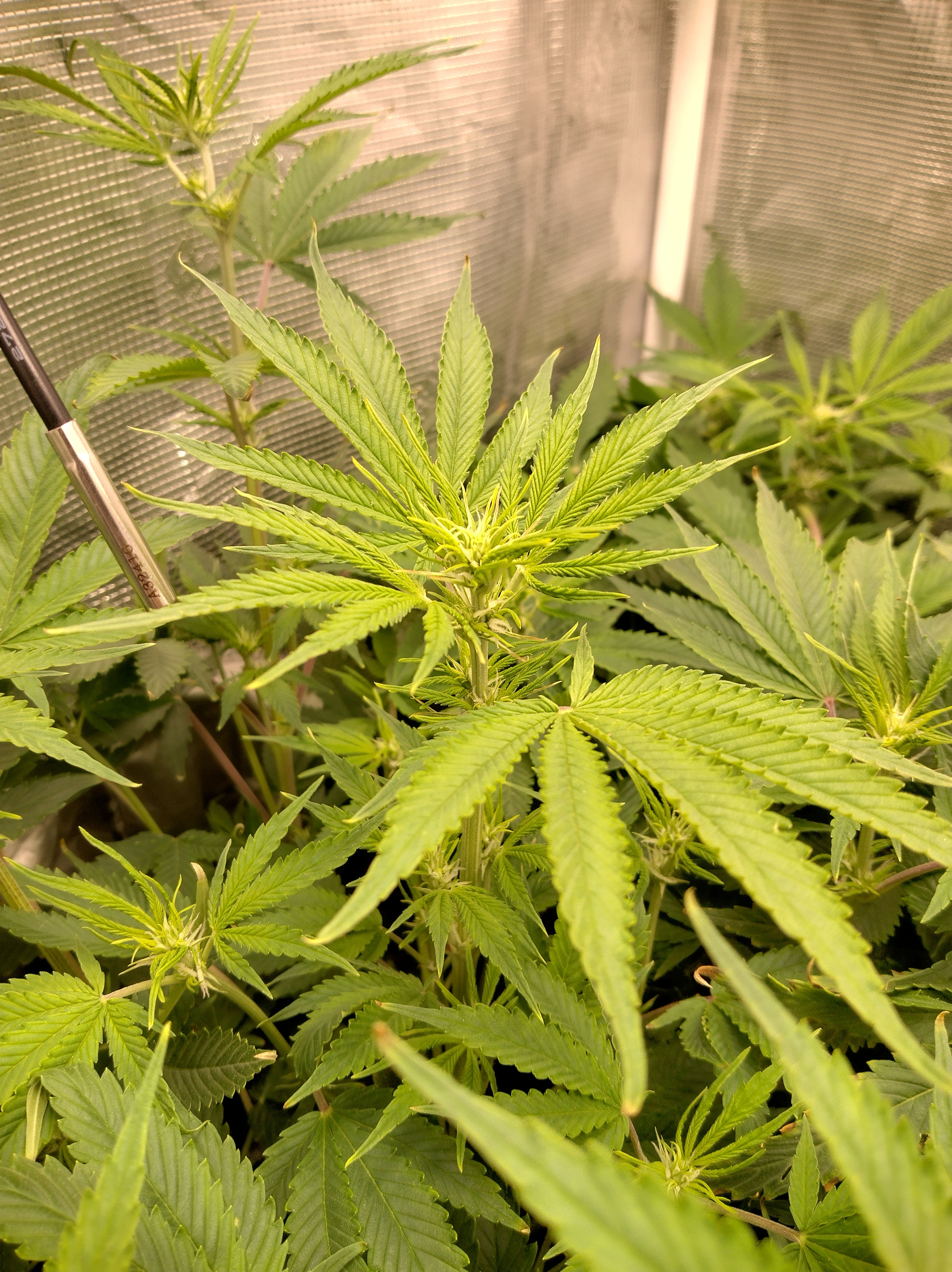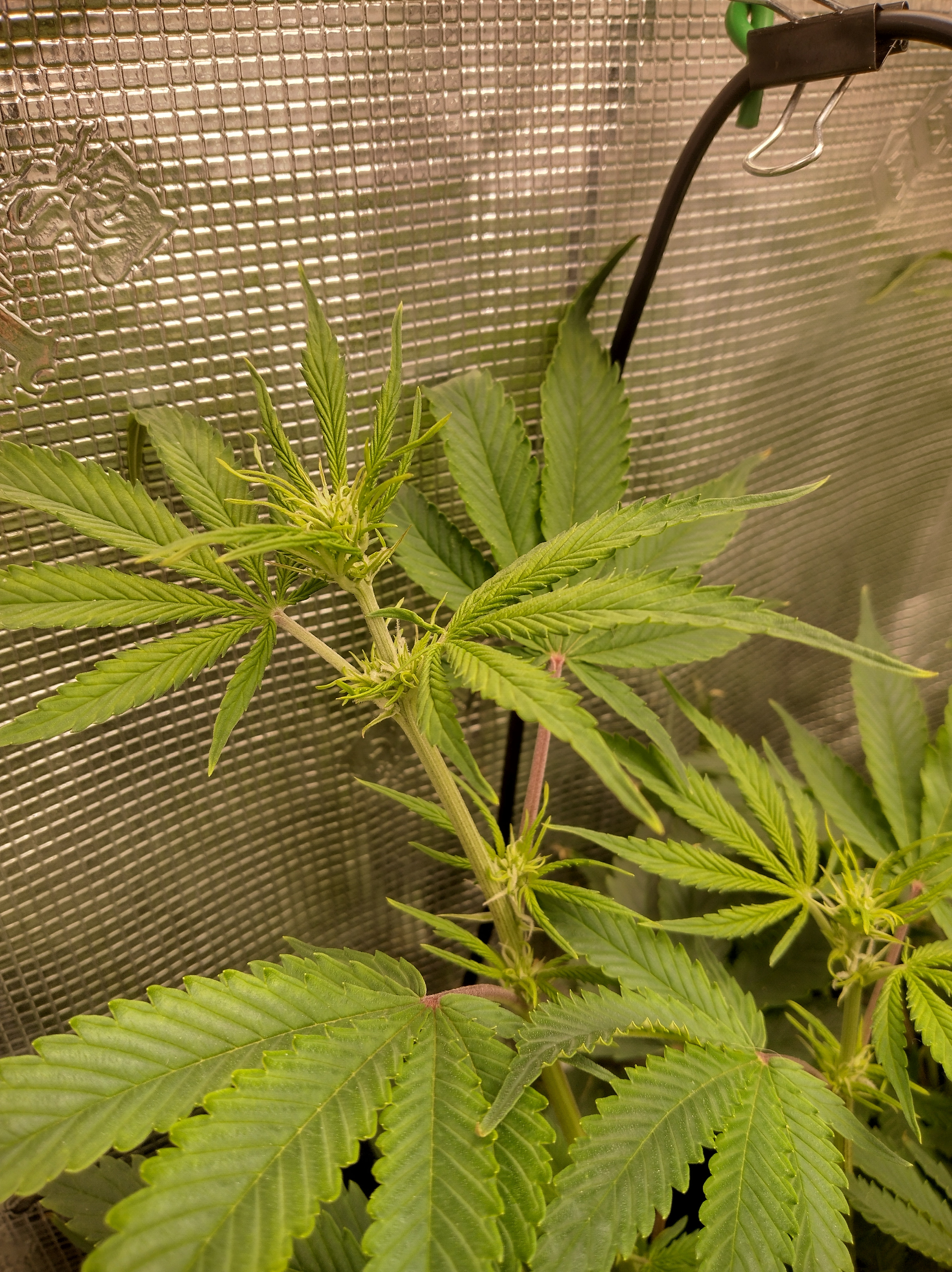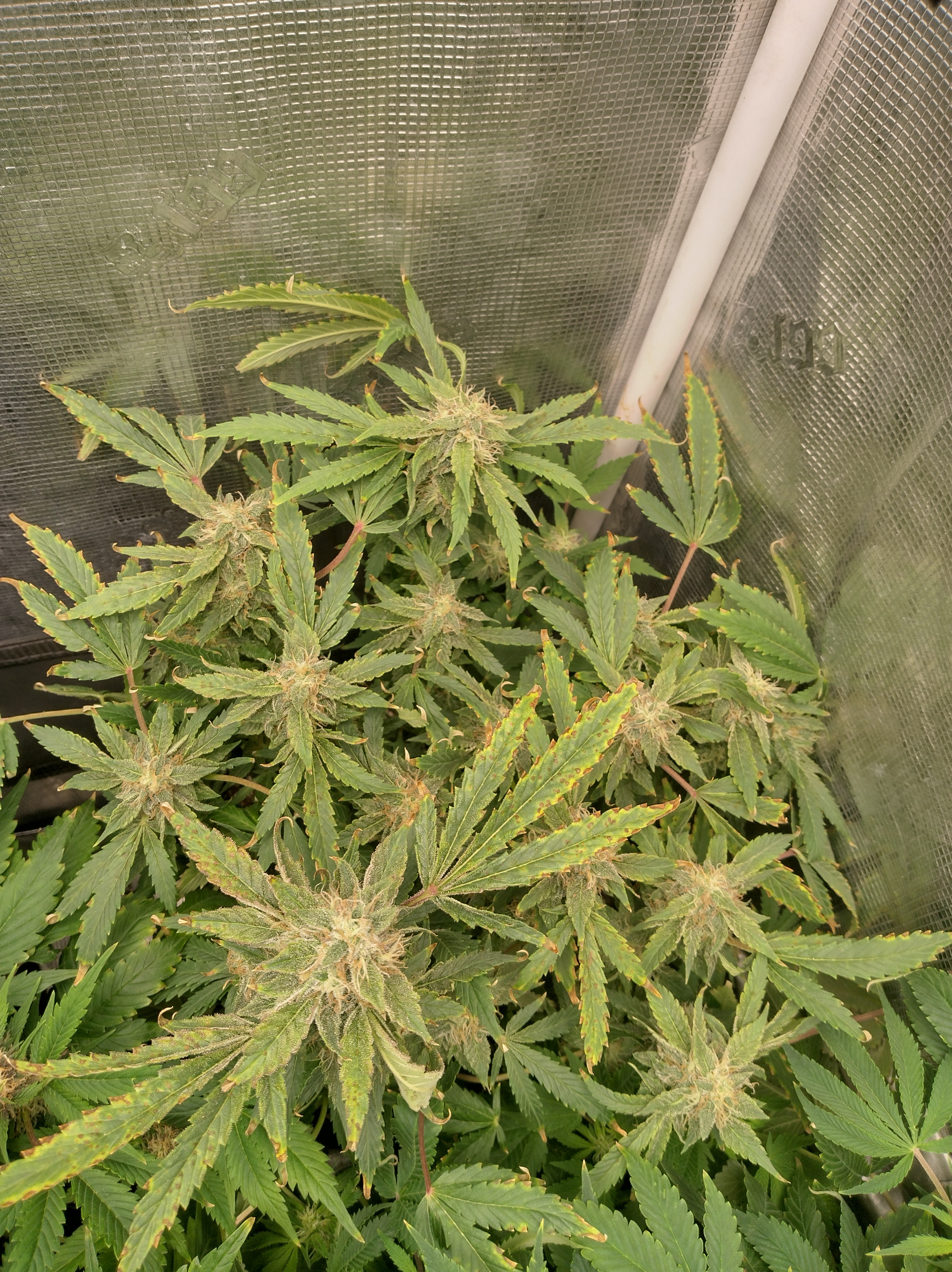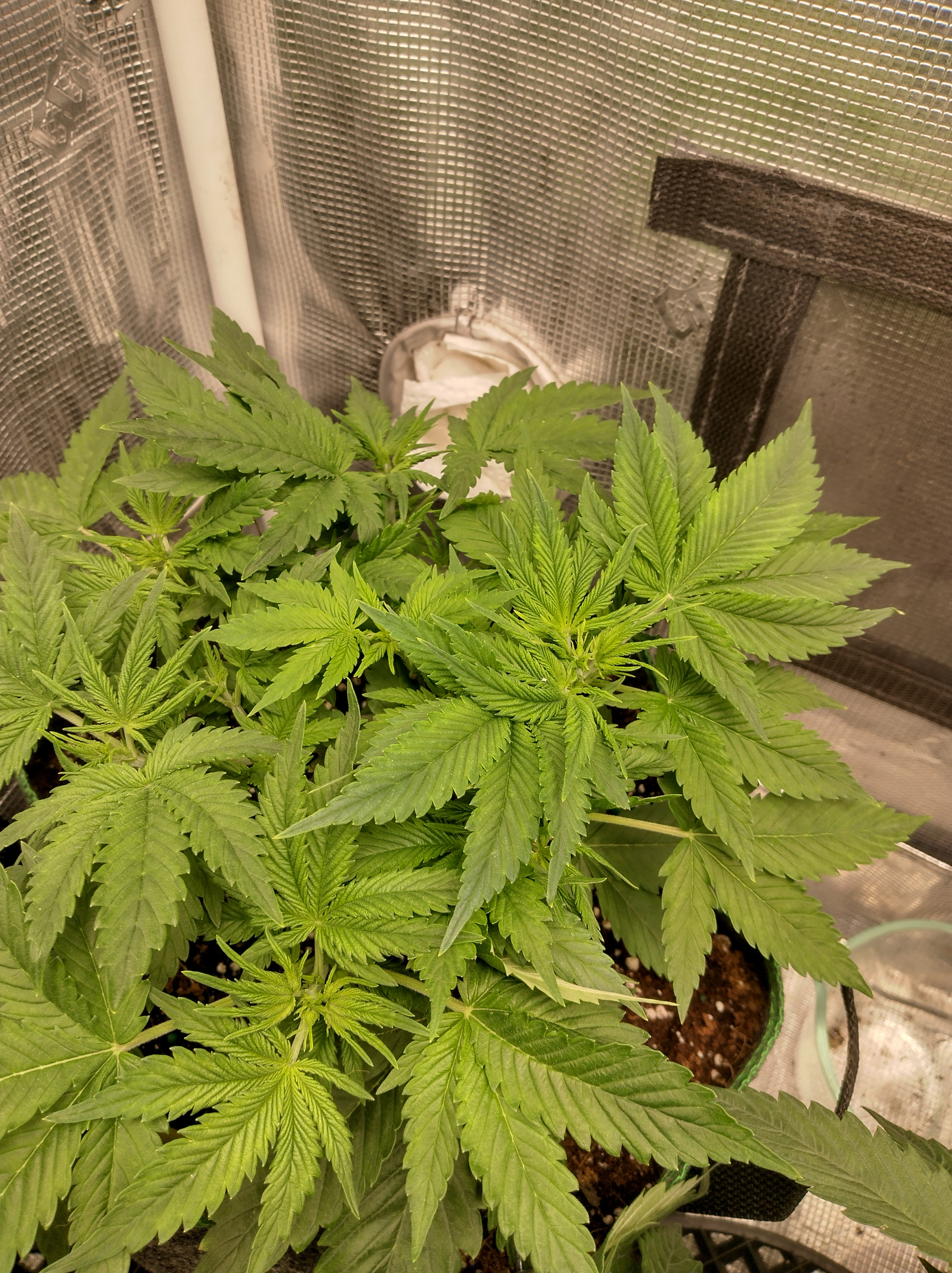 Got flowers on all 5 now. Pics in order are Going2fast Scarlet Sun S1 PIC 1 and 2 are about 1 week apart. Scarlet Runts PIC 3 and 4 are (OZ S1) Orange Barb and Zikittles S1Franklin Pic 6 is a crowded tent for sure. It smells like a Avon perfume counter in my bedroom from time to time.