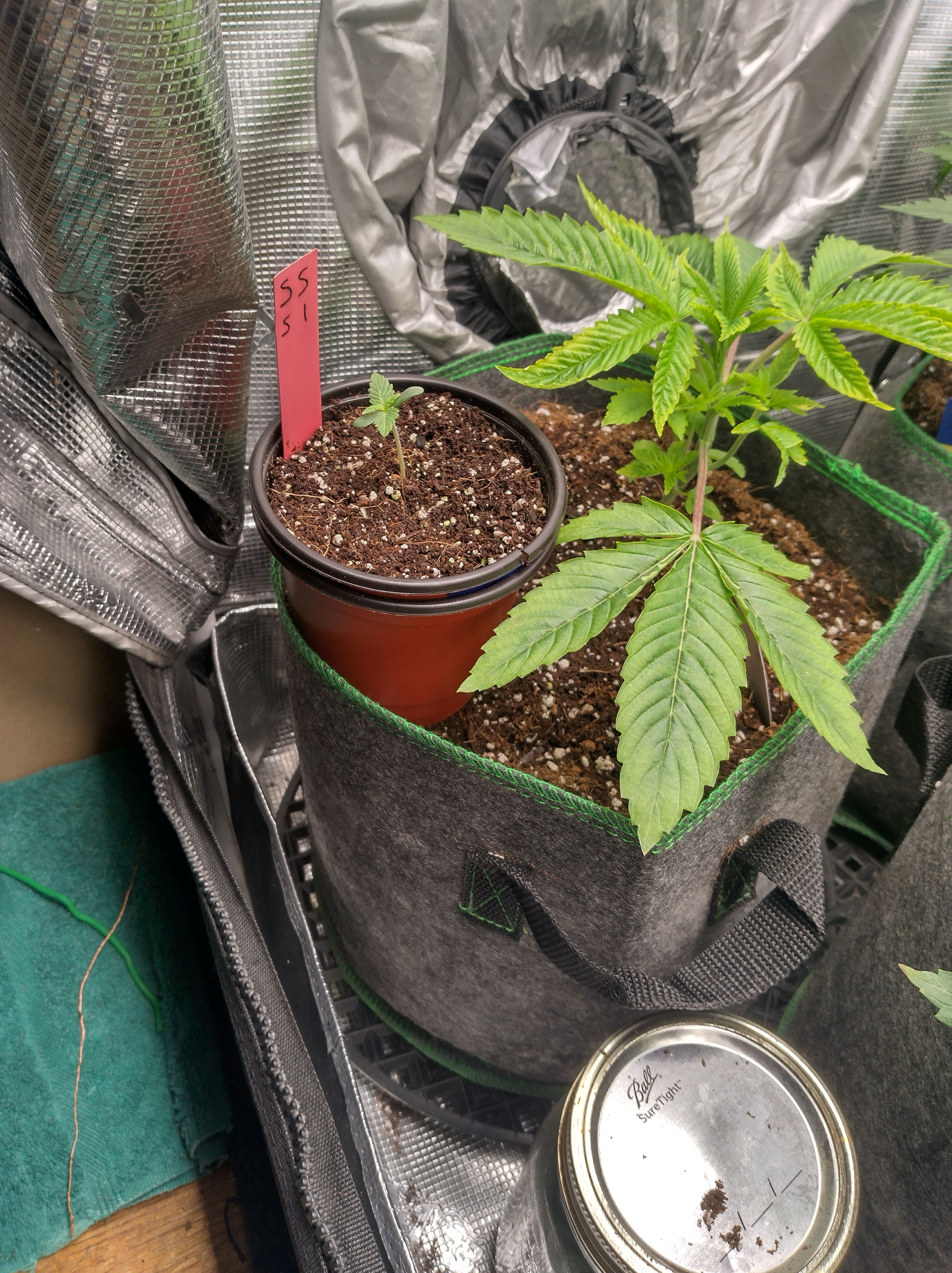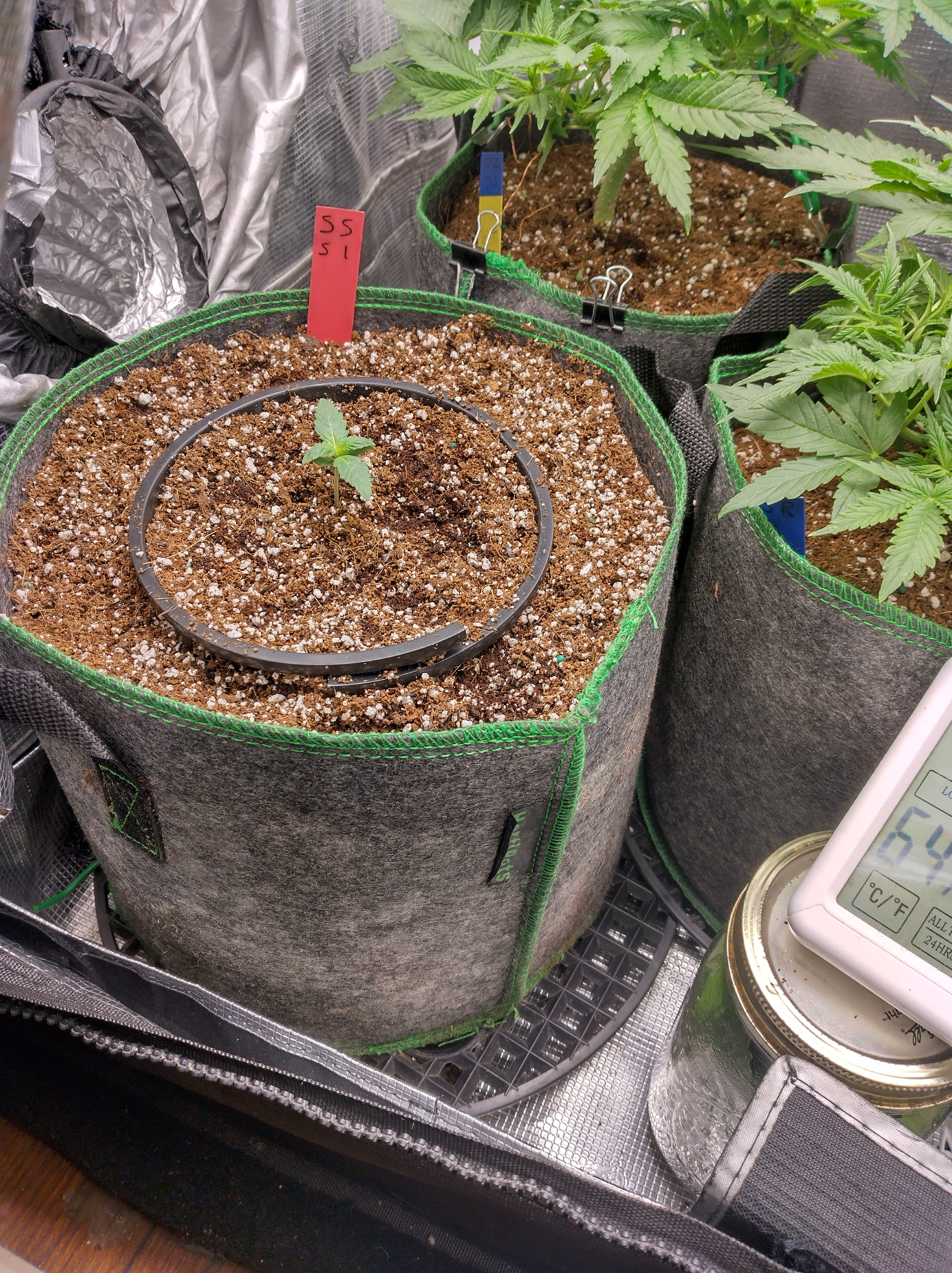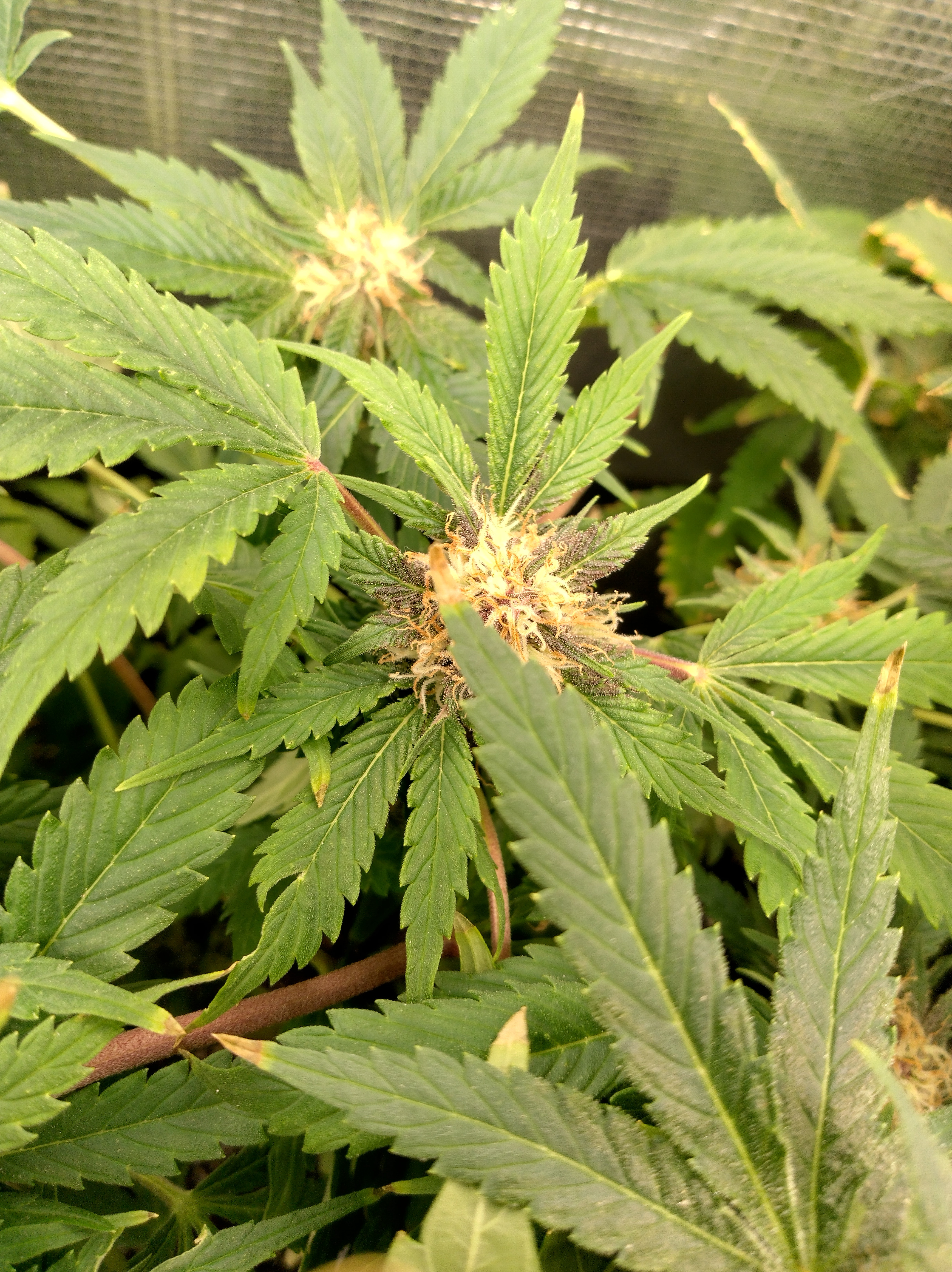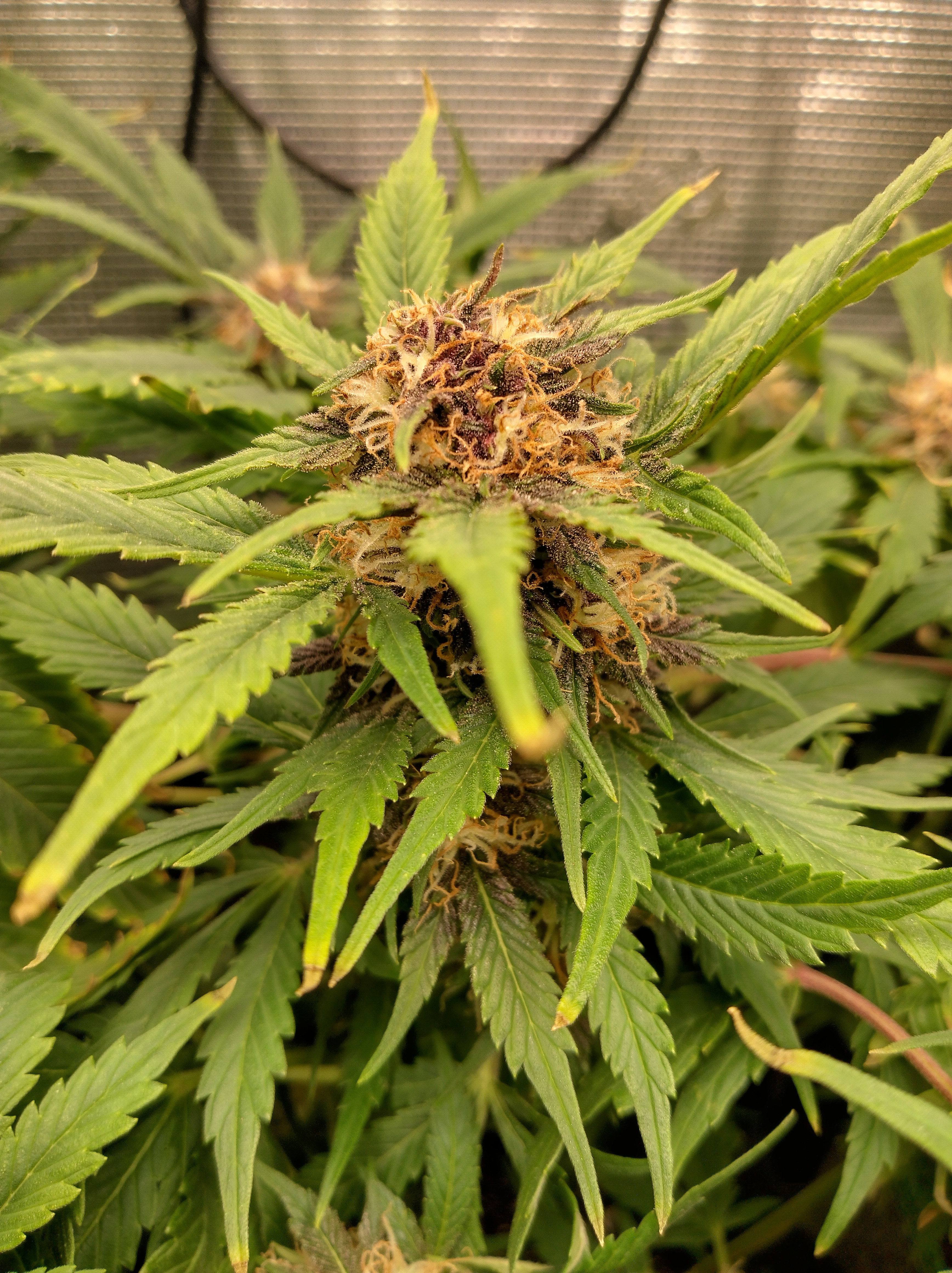 Got flowers on all 5 now. Pics in order are Going2fast Scarlet Sun S1 PIC 1 and 2 are about 1 week apart. Scarlet Runts PIC 3 and 4 are (OZ S1) Orange Barb and Zikittles S1Franklin Pic 6 is a crowded tent for sure. It smells like a Avon perfume counter in my bedroom from time to time.
