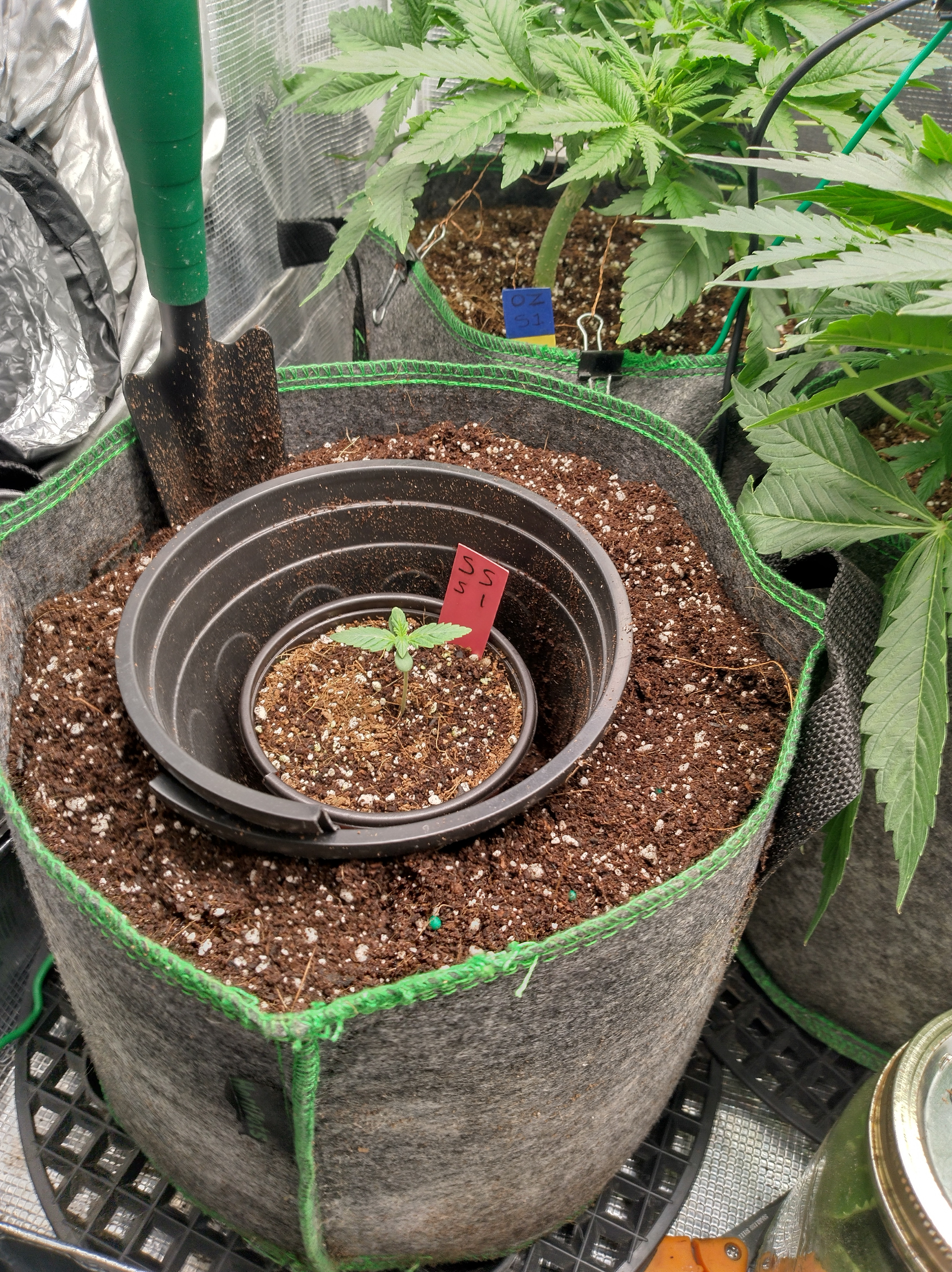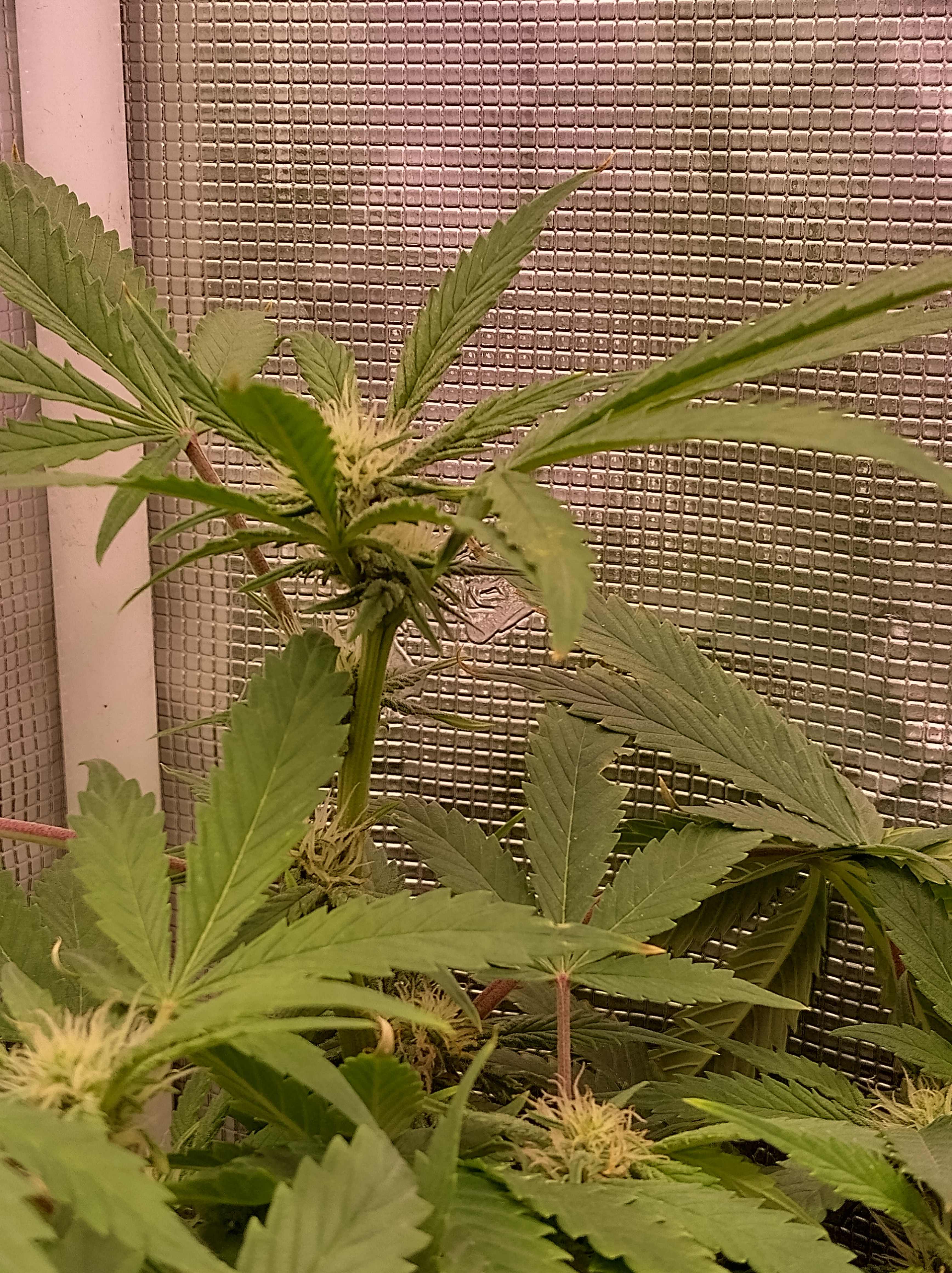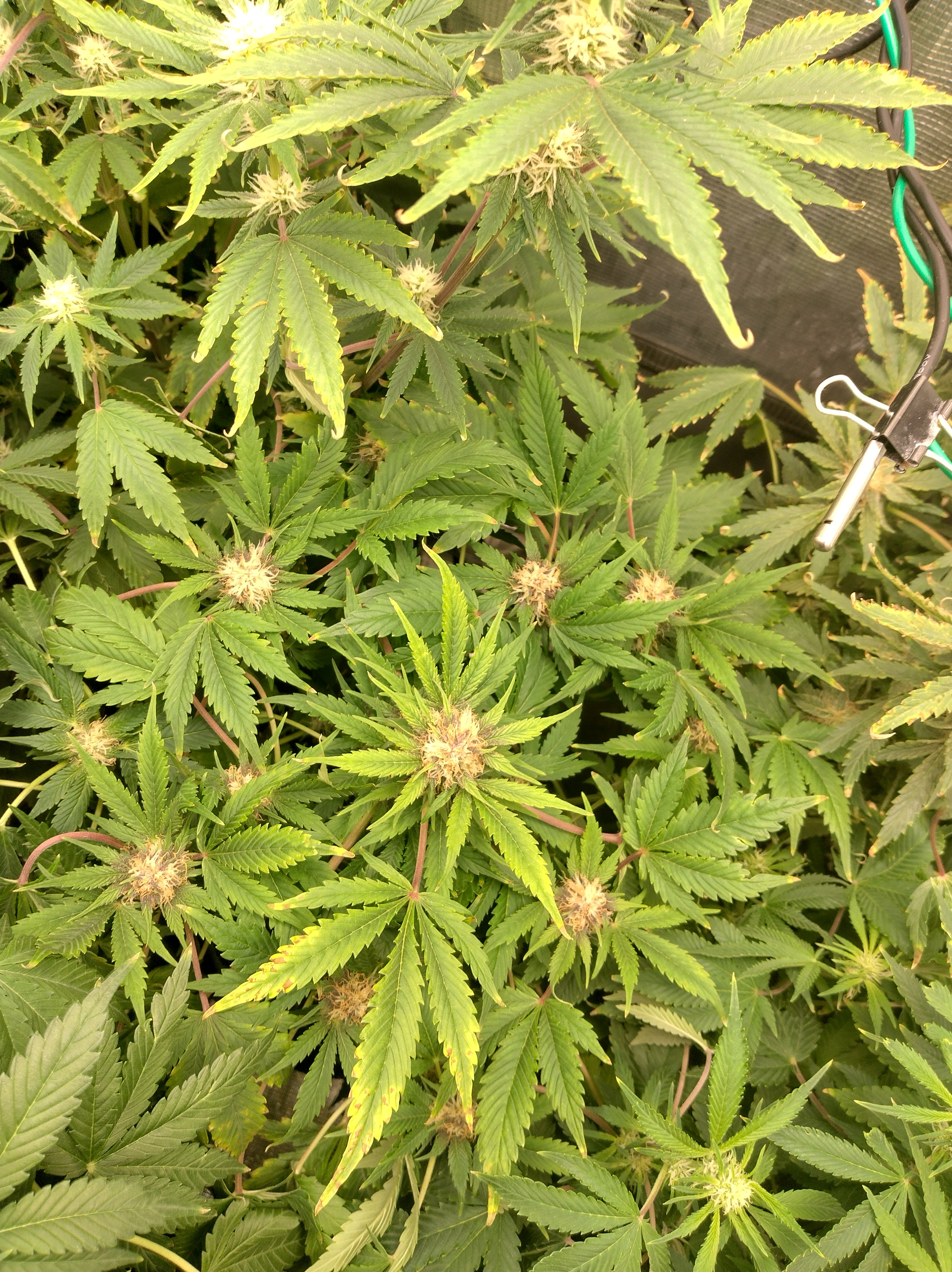 Scarlet Runts is starting to flower at 45 days. Released all the hold downs. The OZS1 PP are doing real well. The one with the half assed monster cropped has alot going on. Defoled it twice. Going to run out of room this run. Got 2 Scarlet Sunset that are coming on fast. Last pic back 2