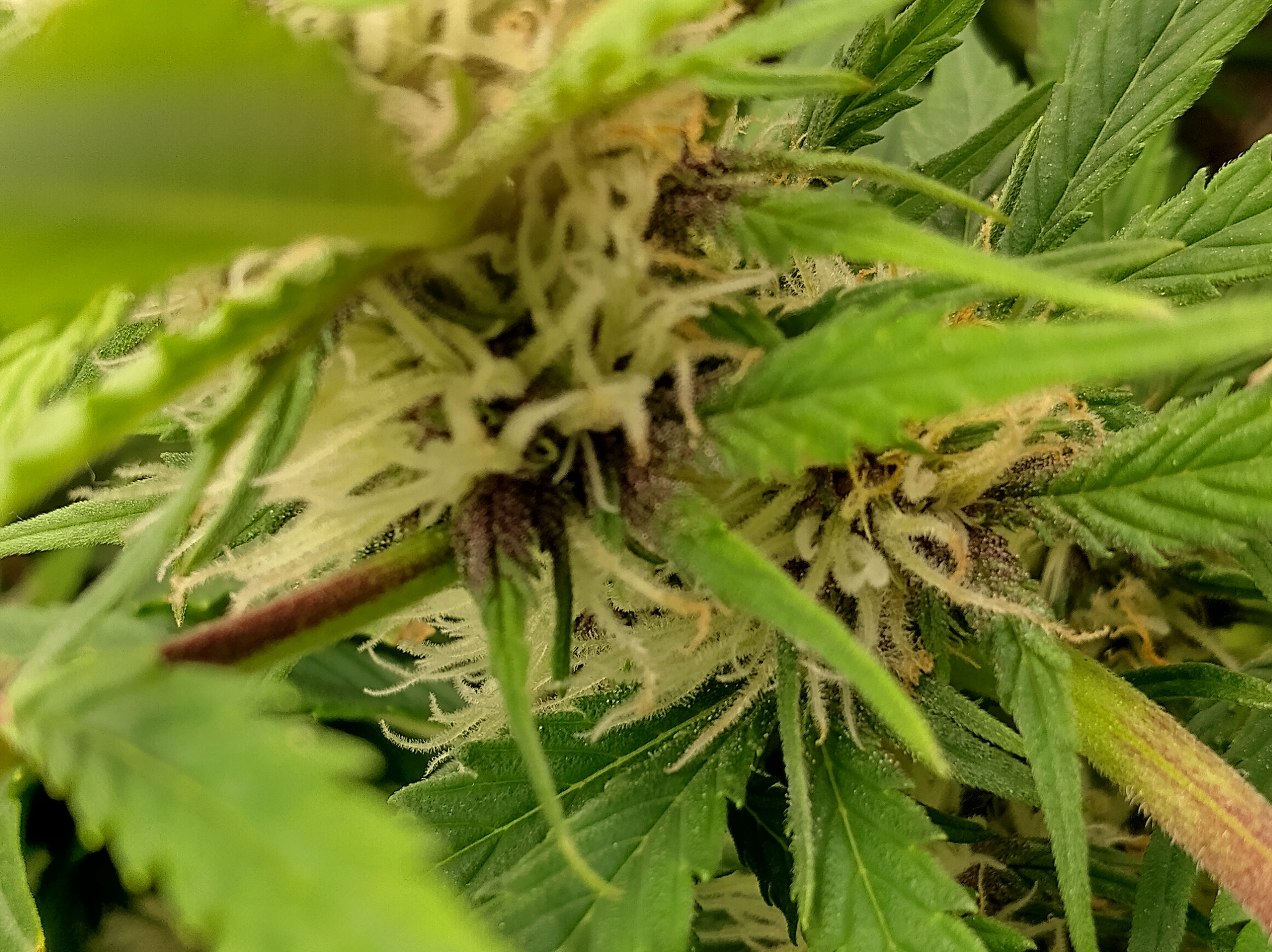 The Scarlet Sunset Started to flower and got purple running up the sugar leaves covered in trichs already Going2fast