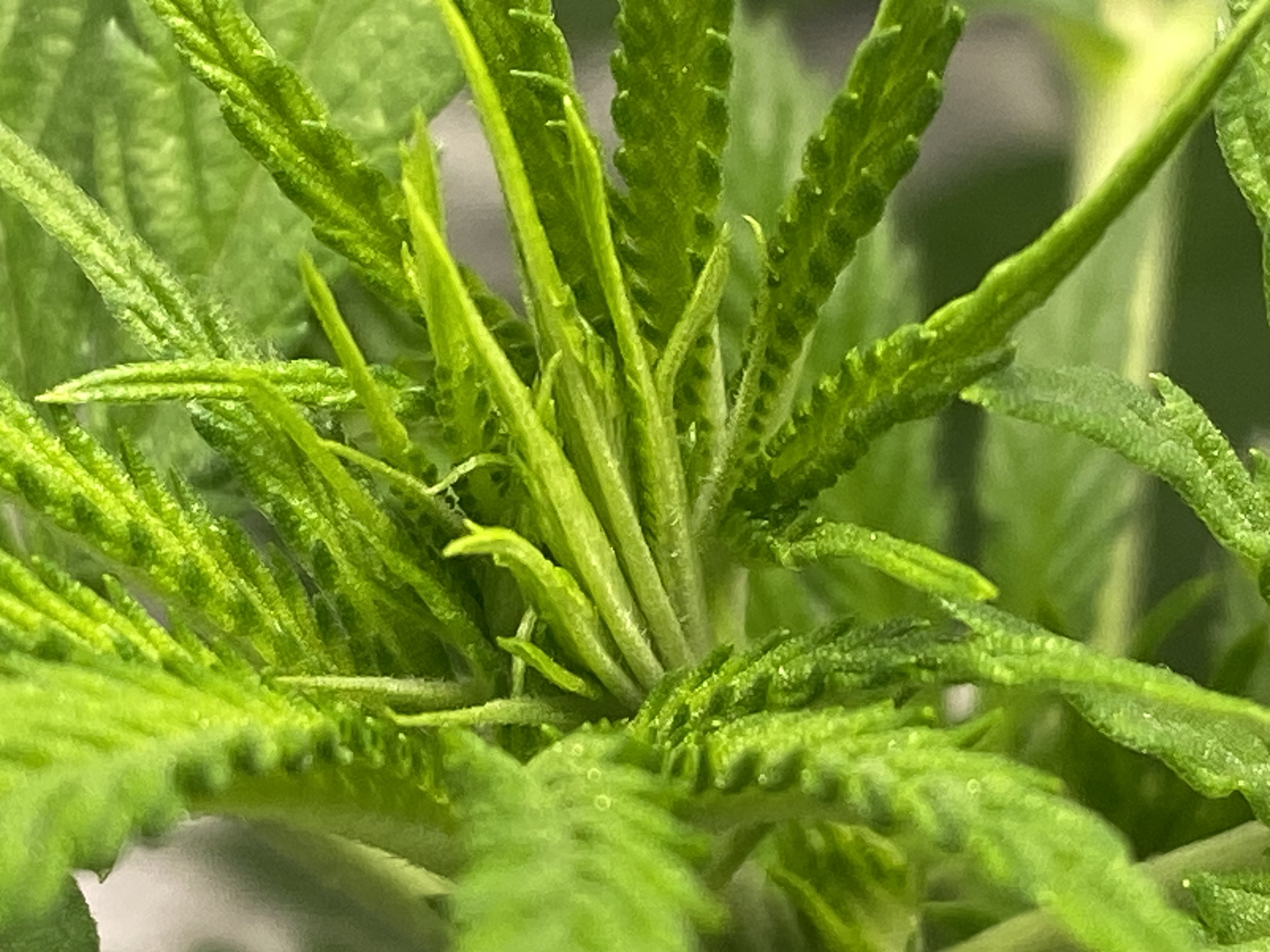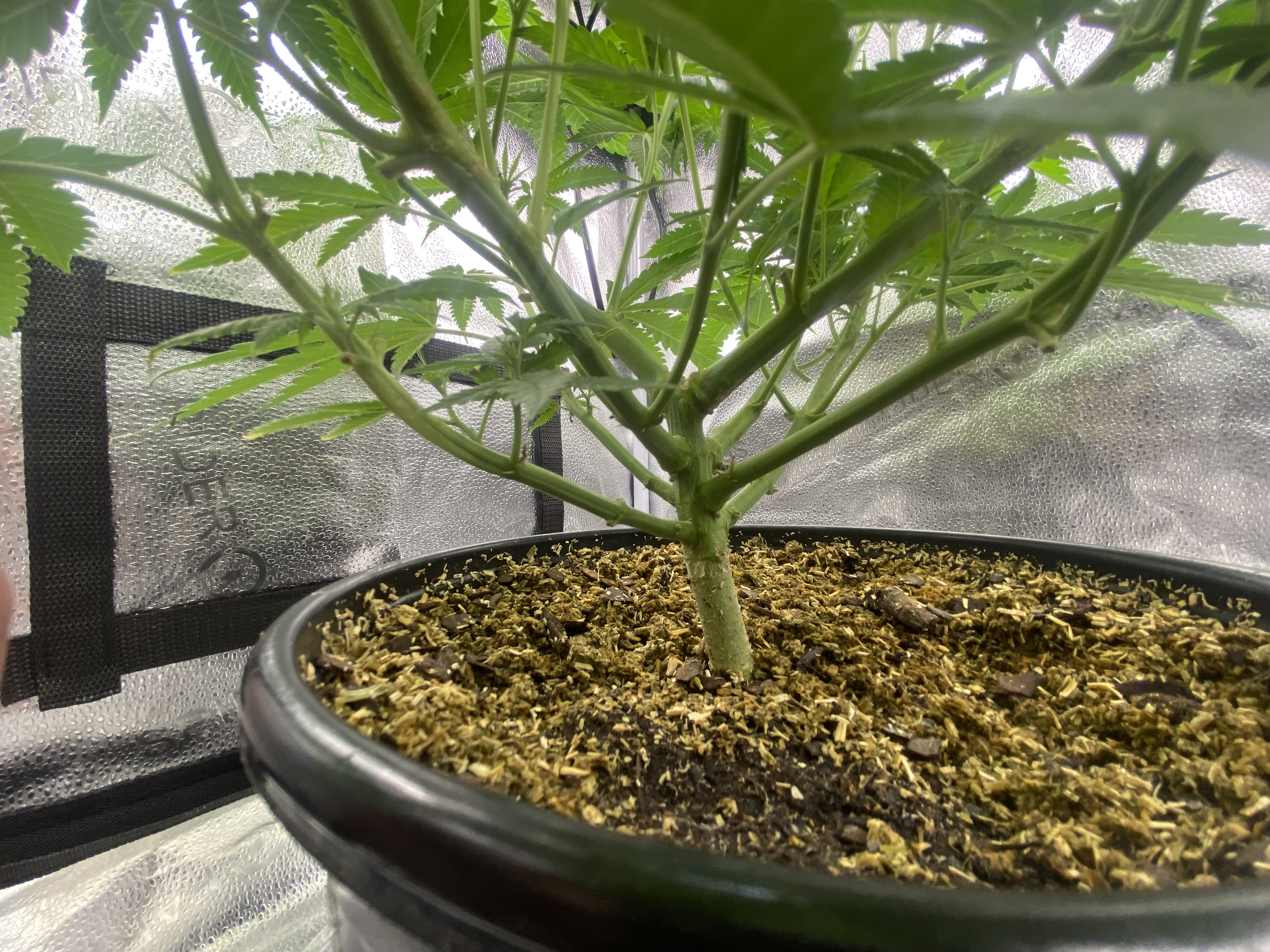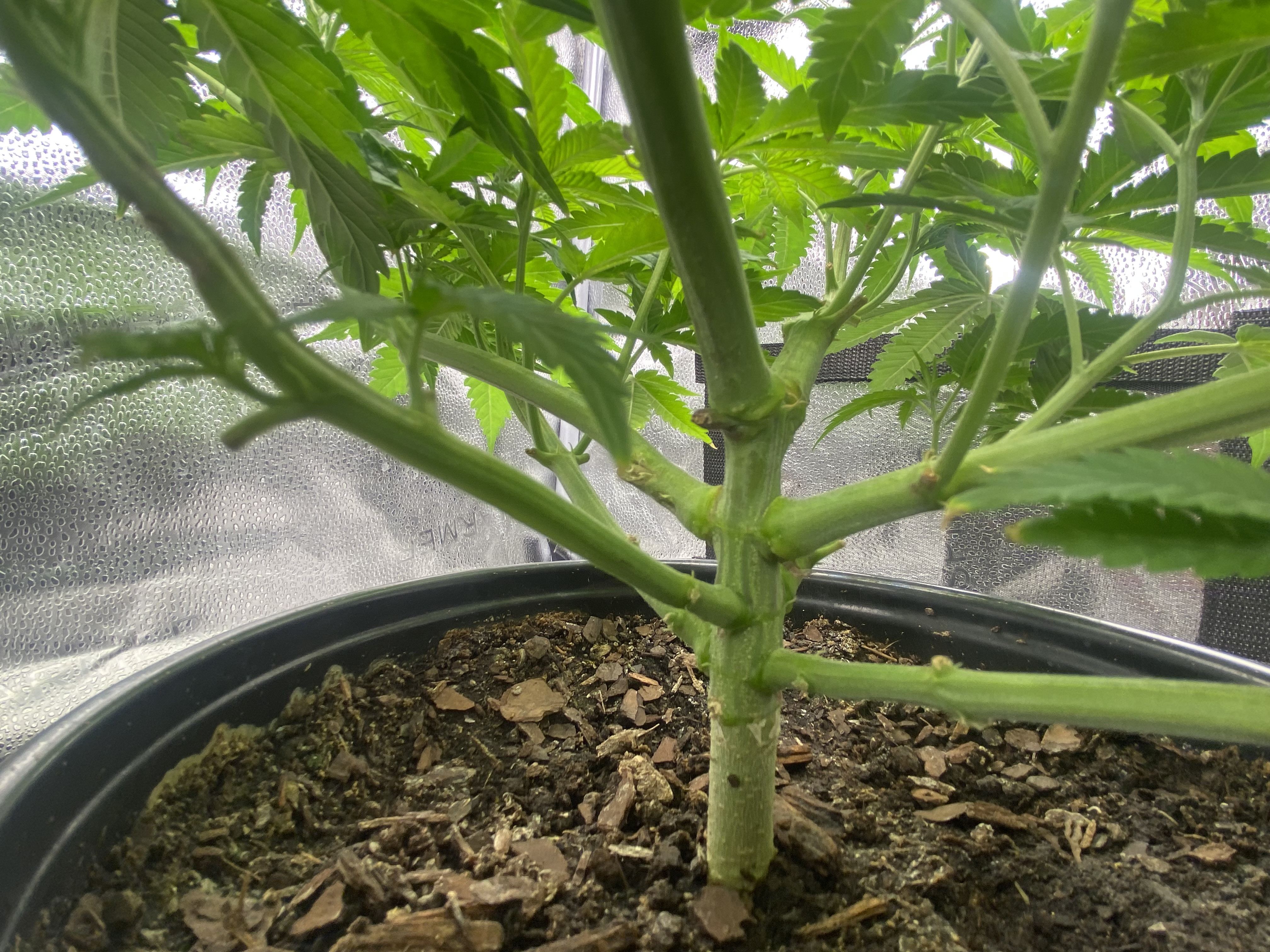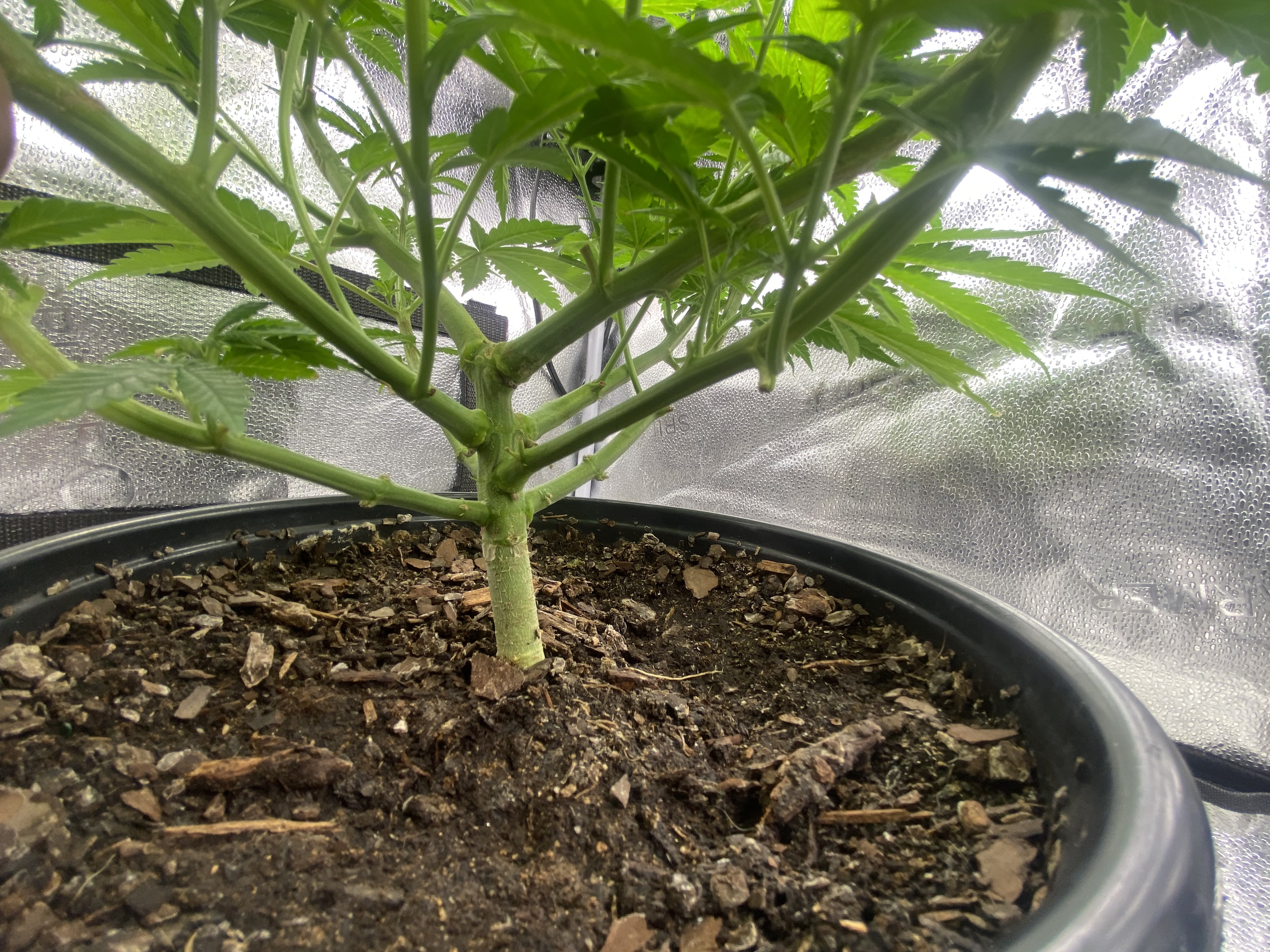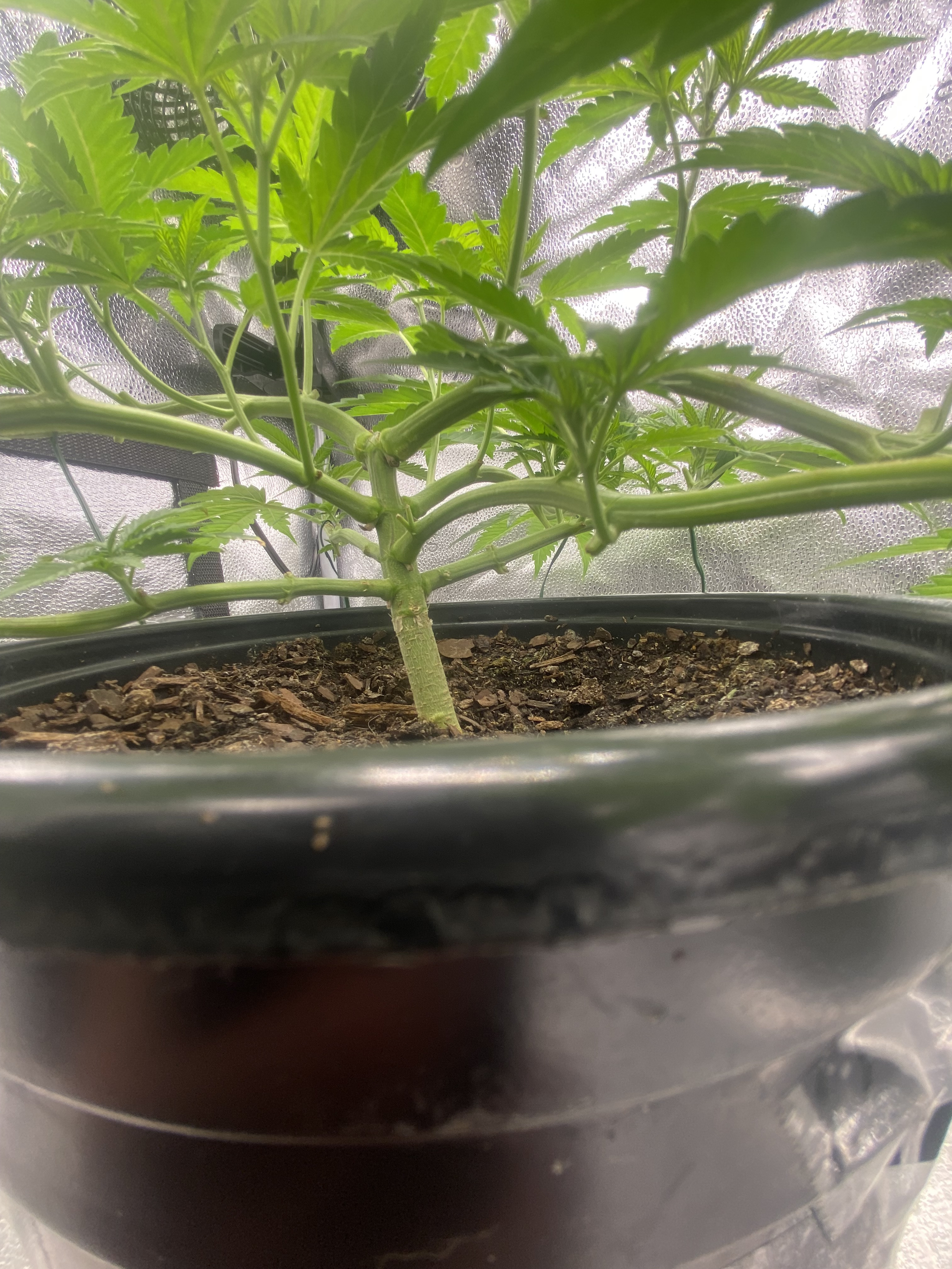 Update. Plant is doing good, tomatoe seedling germinated next to my clone, and my clone looks like its starting to show roots. Running 18/6 for the cuttings and tomatoe seedling, while doing 12/12 with my main plant. Its been