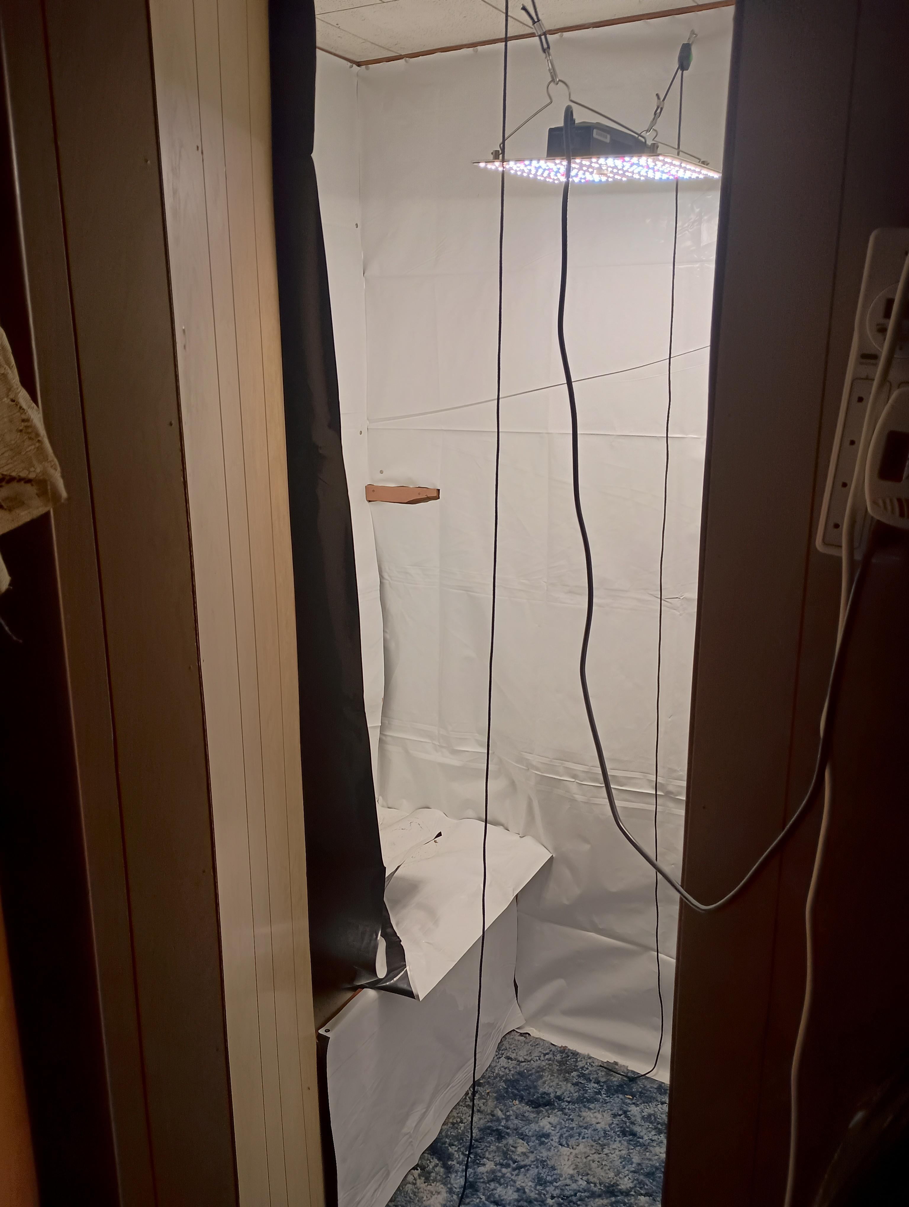 Been meaning to show how i updated my closet to use it better for a grow room plus wondering if I should be concerned with how the leaves are twisting they have been doing this for about 2 weeks now. Seems like they did it not long after the they began getting their first leafs but didnt think much at first but now it seems to be getting worse, was combing over Plant Doctor section still quite unsure whats going on with them.