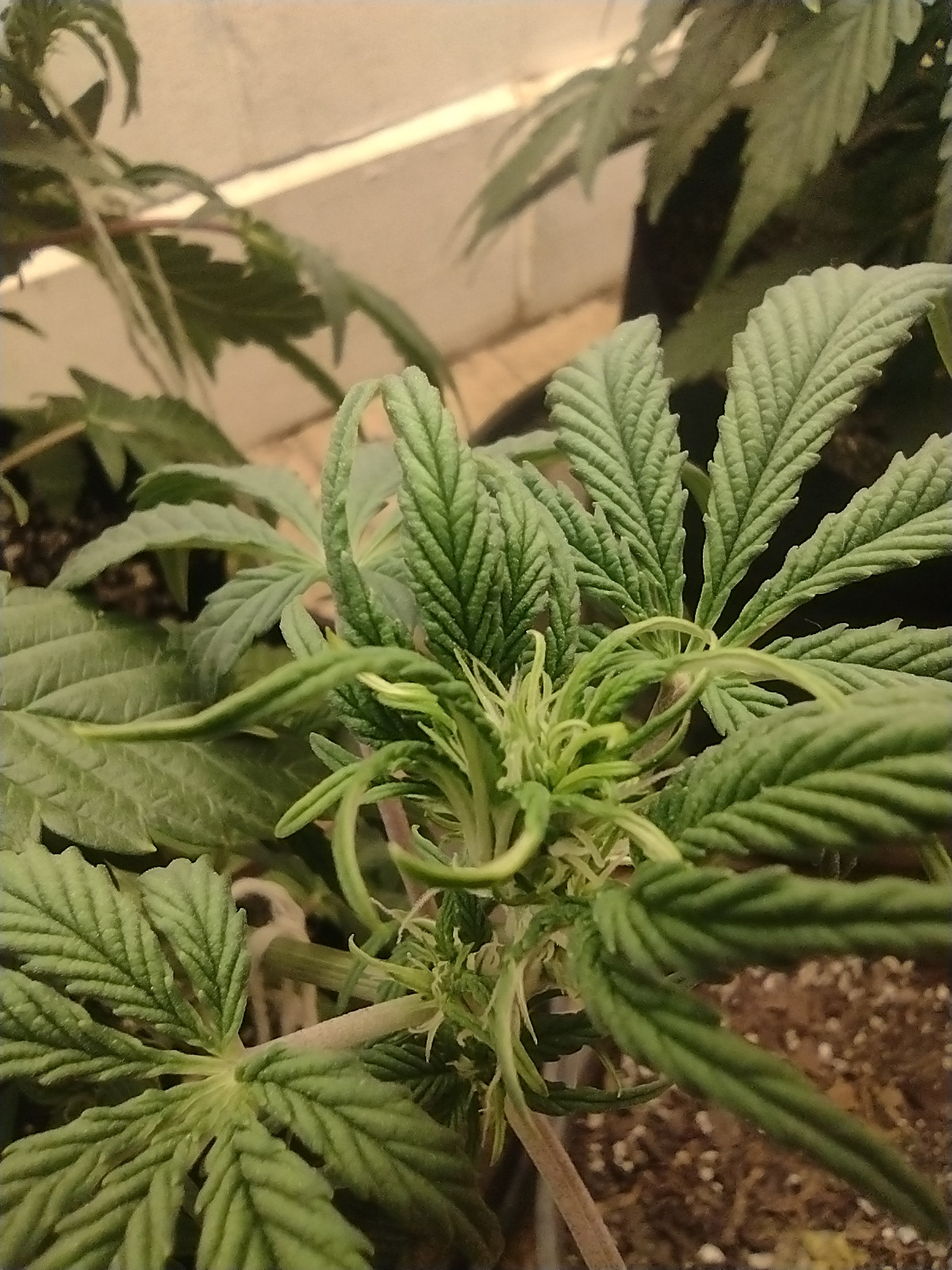 How much air exchange are you getting every hour. I see the curly new growth. 50K lux is about normal daylight, correct?? stagnate air? Cold feet ??, elevate them up off the concrete a foot. (milk Creates?)