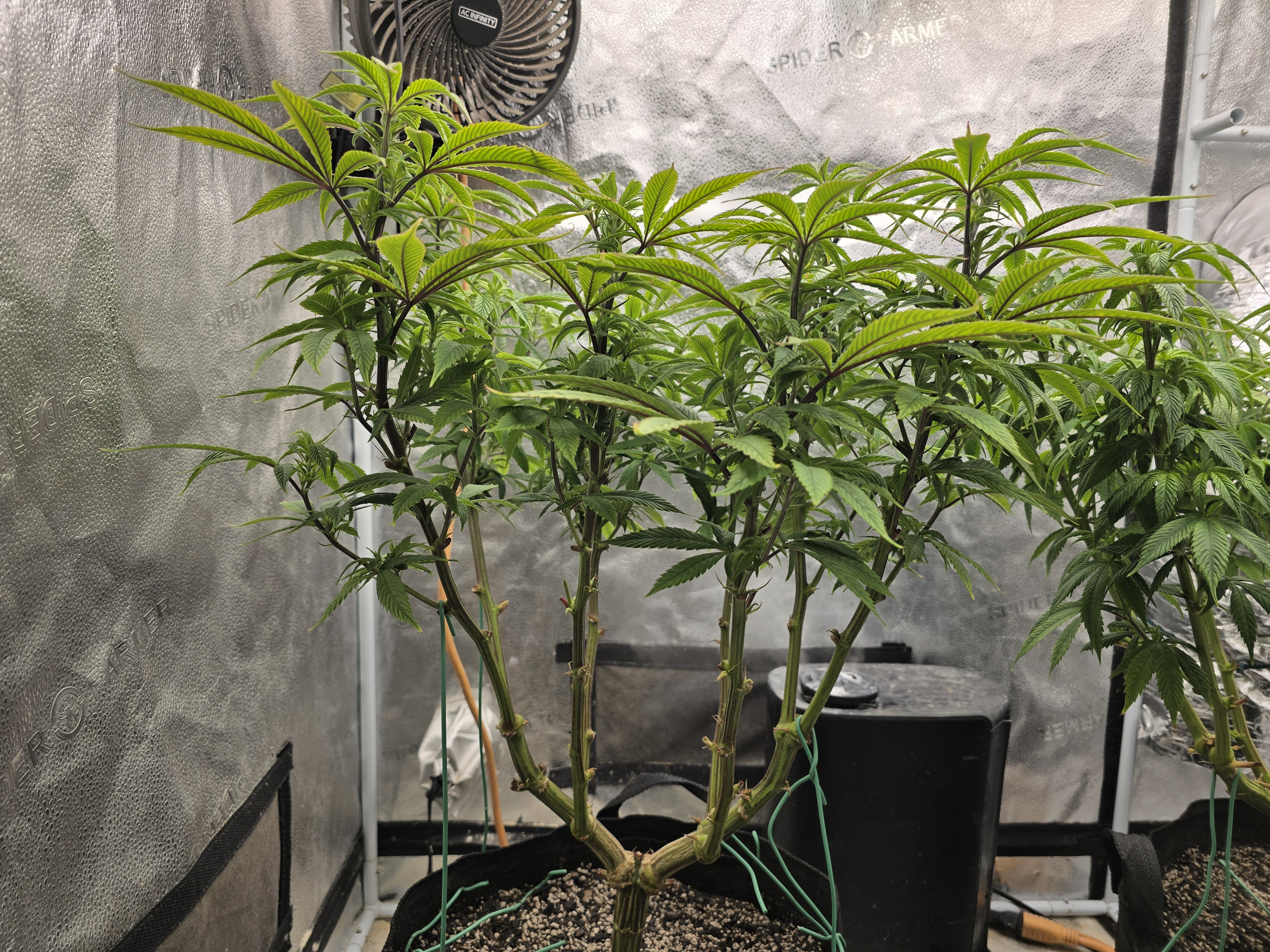 I'm one week into flower. I've kept the bottom half of the plants stripped. I cut out the majority of the fan leaves. And alot of the sucker's.