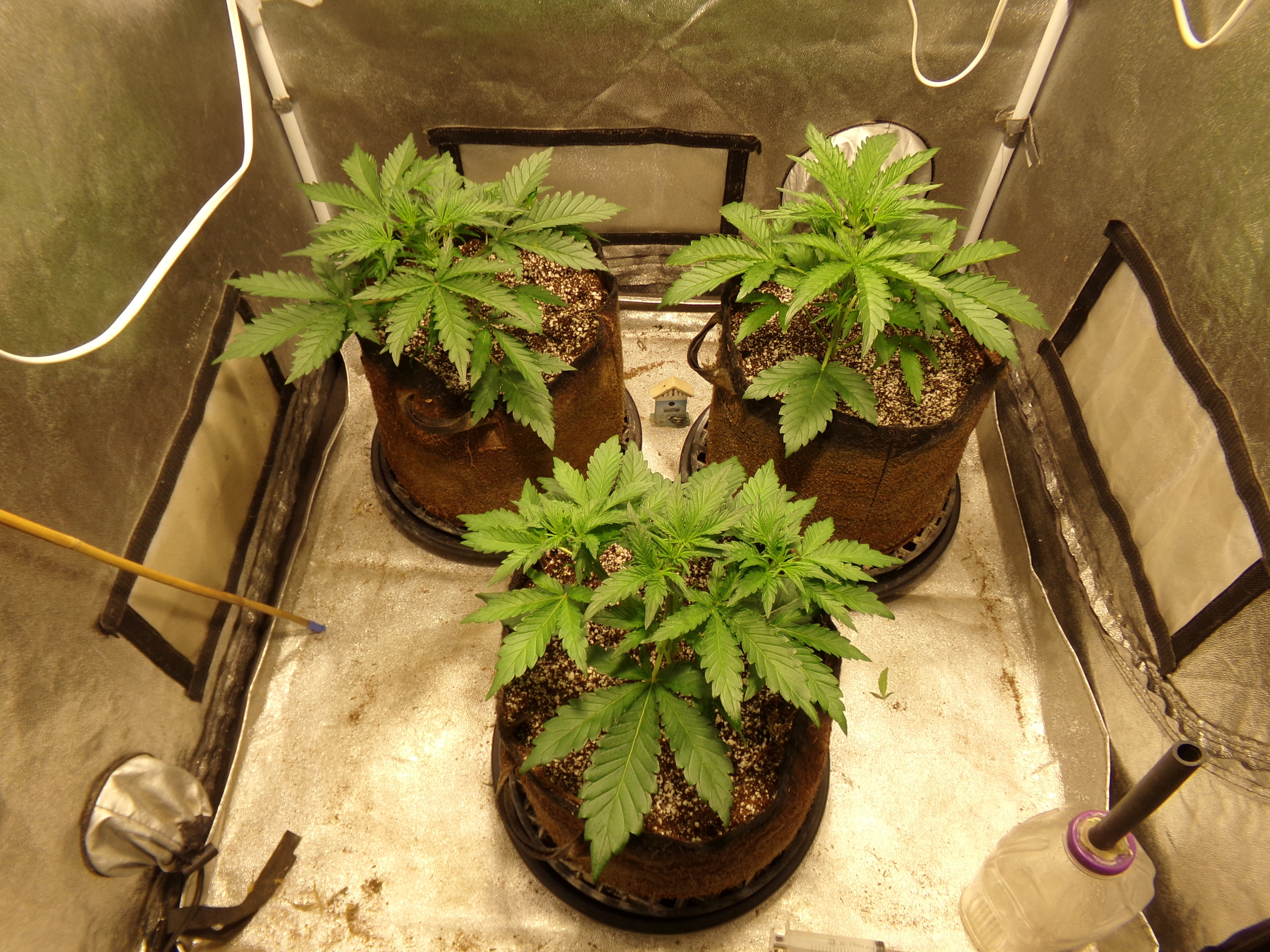 Slacker Girl and Mutant Girl switched spots so I can keep an eye on Mutant girl. MG has Siamese seconds. That is, the second from bottom flower stems are growing doubles that are stuck together. Whereas the other plants' seconds have not grown to the level of their mains, MG's seconds are past her main.