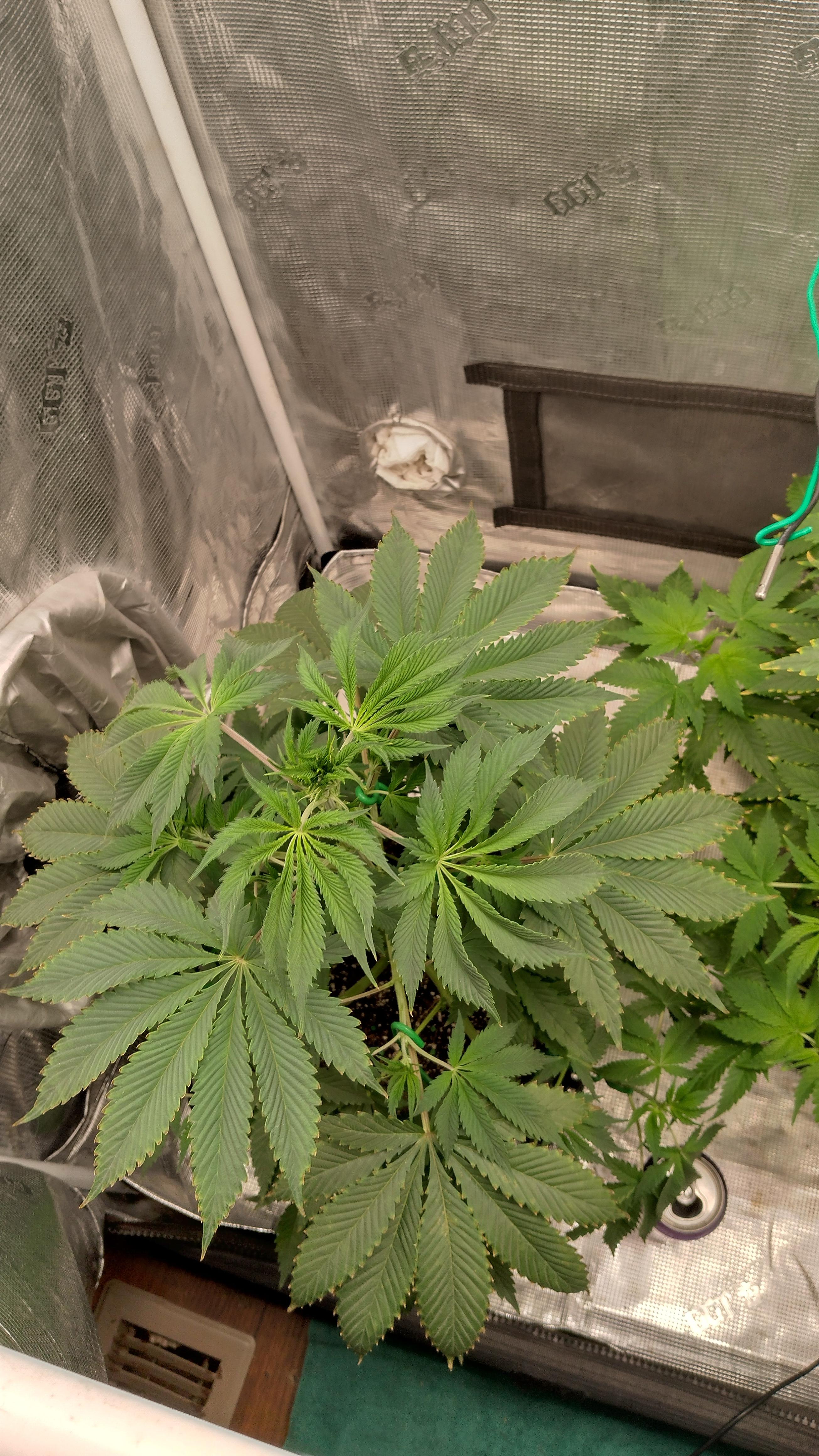 Cold and windy again. Low 40s at night. High 50s today. Finally stopped raining. Still bringing them inside at night. Looks like they can stay out after Monday. Water day today so a little droopy. Pretty dark leaves but no burnt tips. This batch of soil was pretty hot. Haven't fed them yet. 7 weeks above ground yesterday. Summer lemon on the left is nice and bushy. Early frost is a bit lanky with some huge leaves. Been trying to tuck them. Big boy pots on Tuesday.