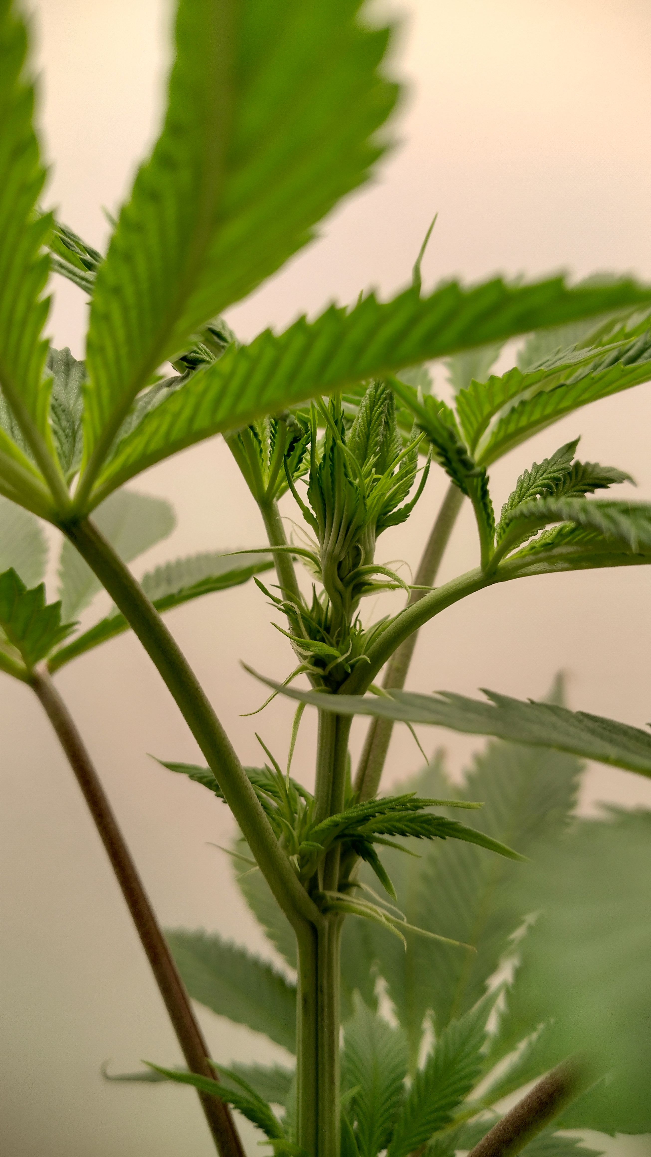 Found another odd formation on a different strain from the same breeder (twenty20). Looks like I need to put on 12/12. Buds forming at the nodes. Vegged since 4/11
