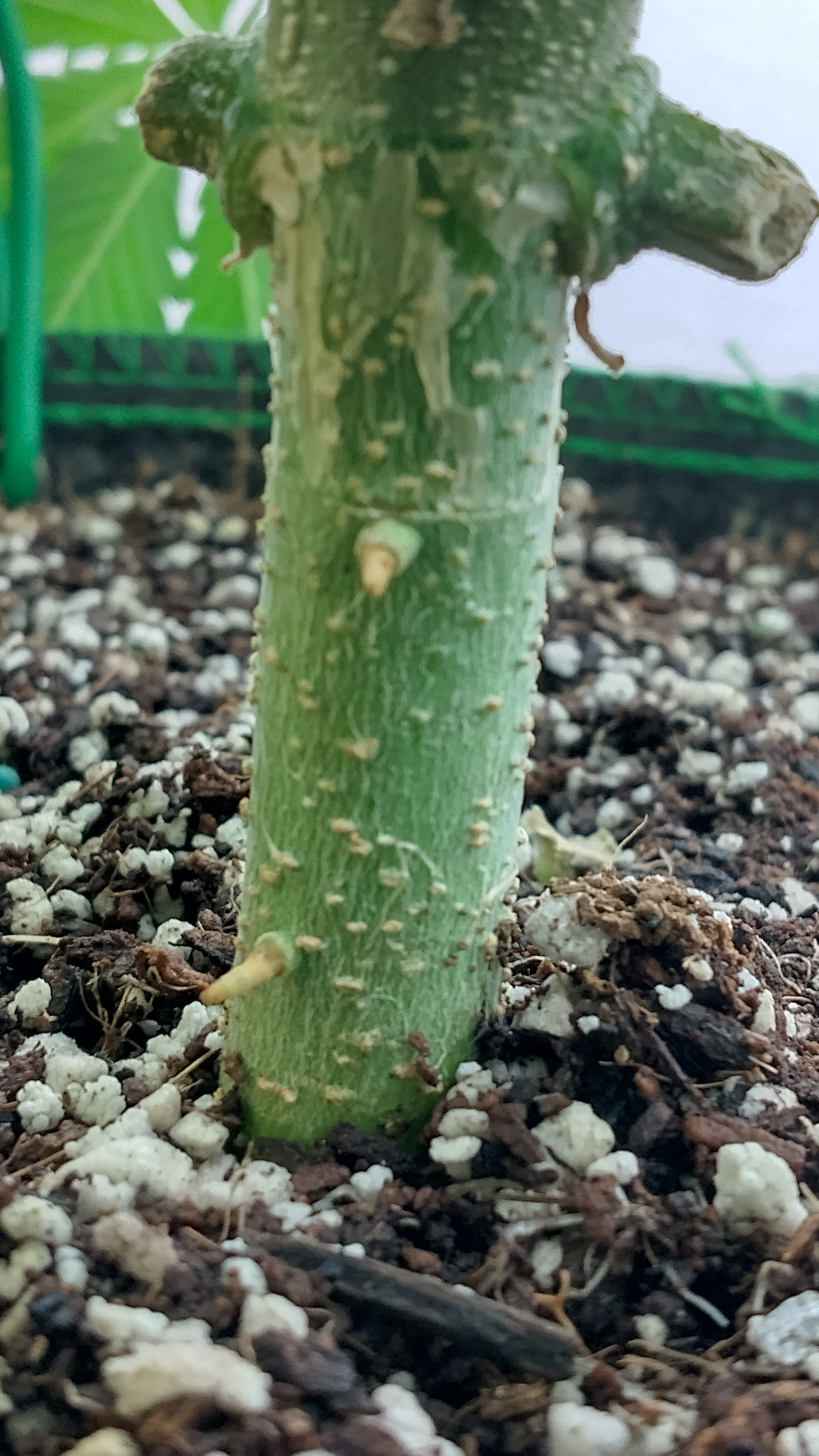13 nodes and I think it's starting to build a bud. Got a little stretchy for a tent. Got nodules (roots) trying to grow an inch above the soil, bury??