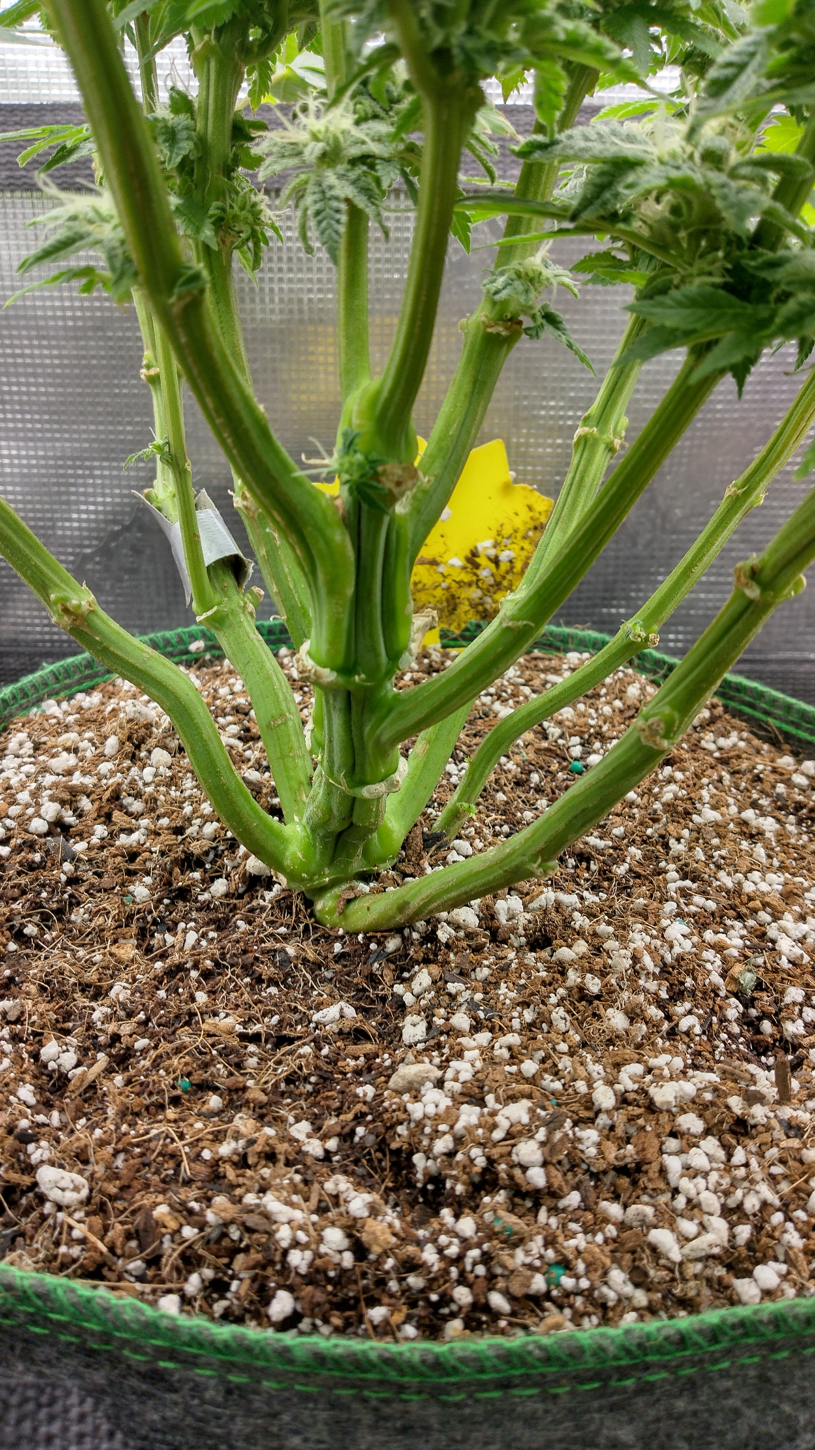 I keep trying my luck at the bend over method Ive seen a few of the others do here in the forum. Sometimes i get it right and sometimes i don't, OK mostly I don't. LOL Timing seems to be a factor i miss going from one cultivar to another. Most of the time I stunt their growth which is okay because i stealth grow anyway. The strawberry blonde I have going now seems to have 2 main stems. 86 days above ground.