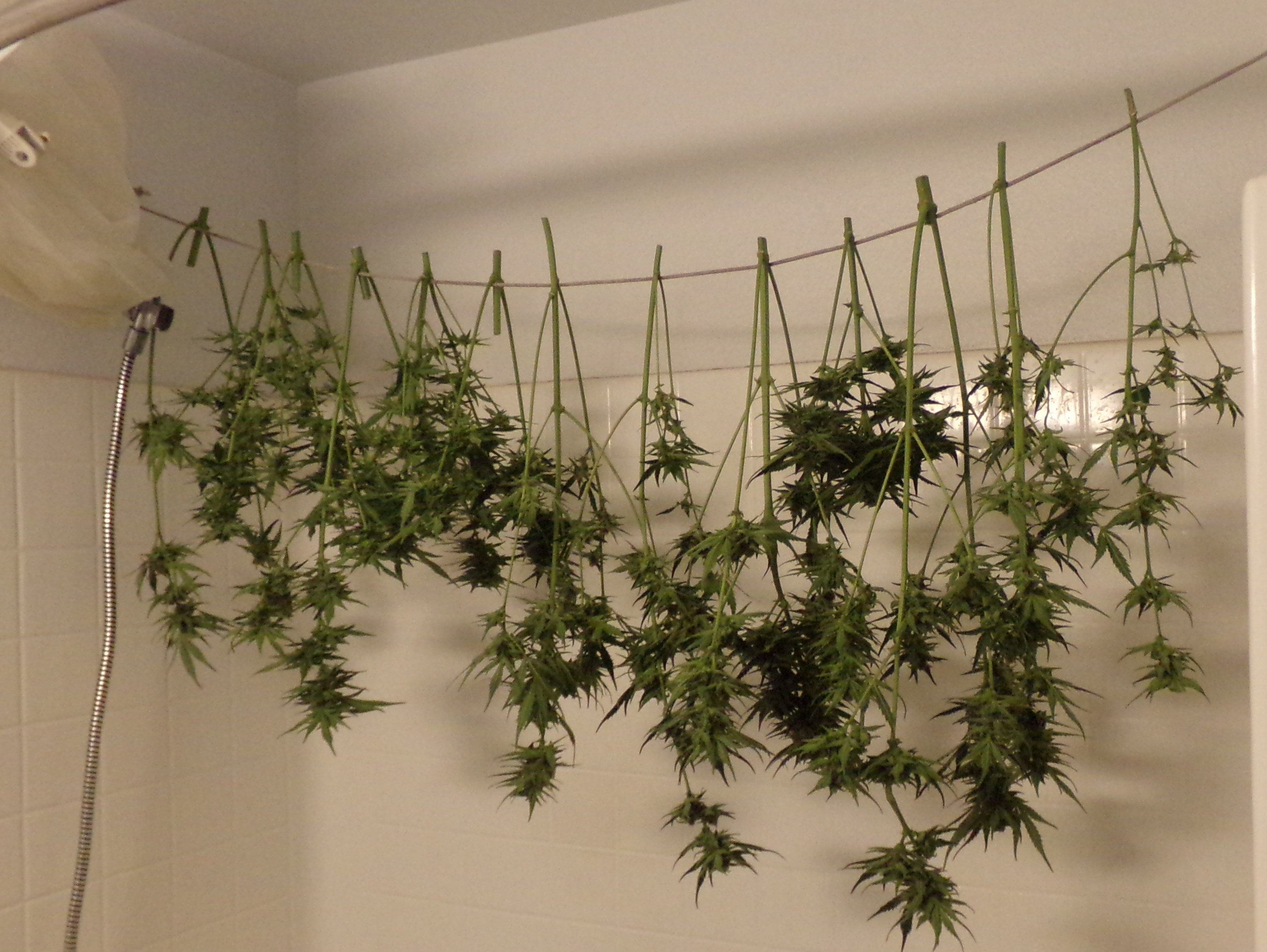 Did the washing per instructions in this link from GWE. I didn't do the H2O2 wash because mold is not a consideration. No issues. Easy enough but I hope I don't have to do it again. Something just doesn't feel right about washing weed. What you don't see are the fans I have moving the plants around. It's been a couple hours in the breeze, and they've had several hand-shake sessions to speed things along. They are dry to the touch but will stay up for a few more hours.