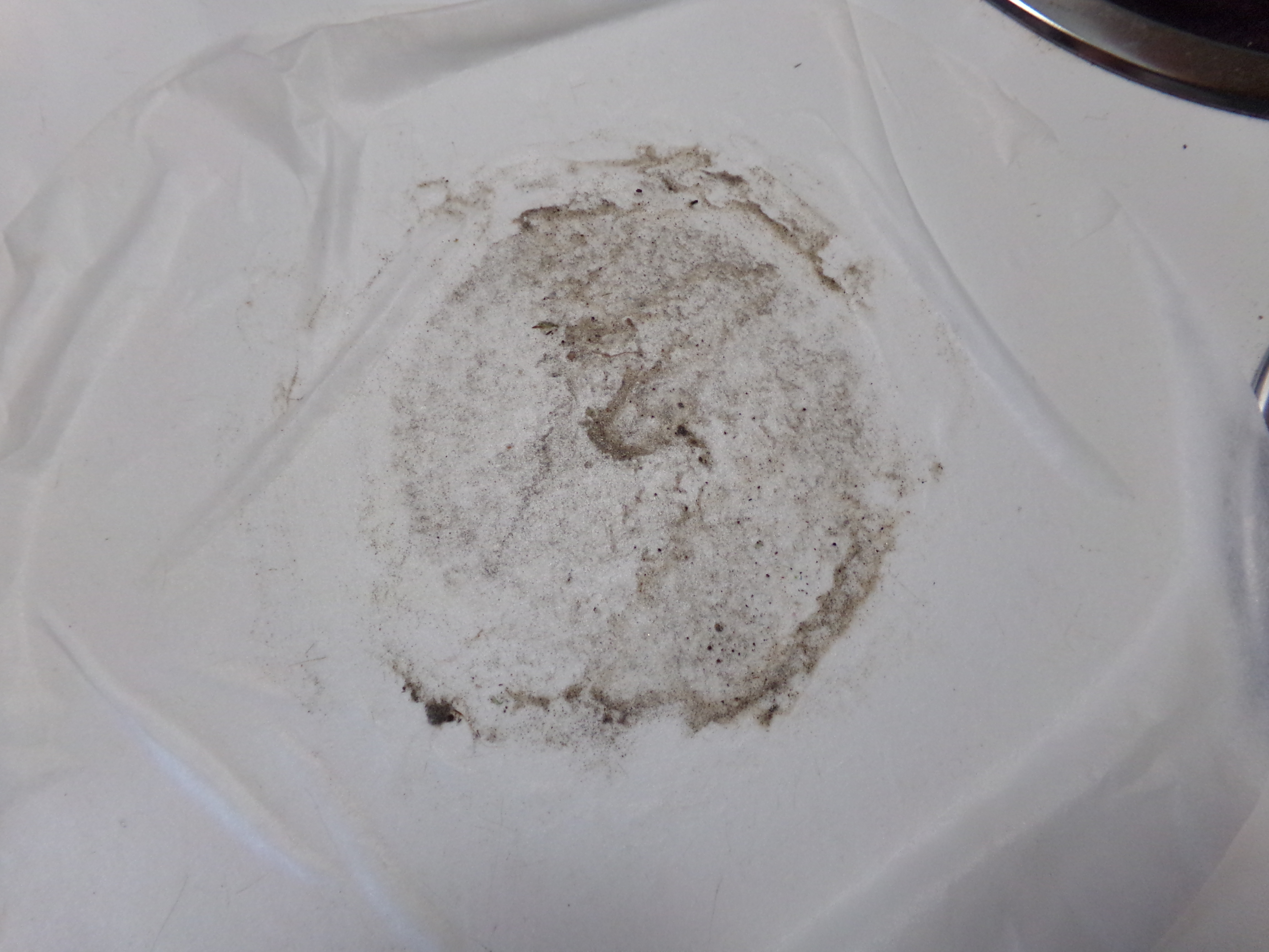 This is what got filtered out. Mind you, I poured off four gallons, first. This is not what got shaken off in the cleaning solution, not what was left in the funnel, and not what was left in the buckets. You know; On the sides and such.