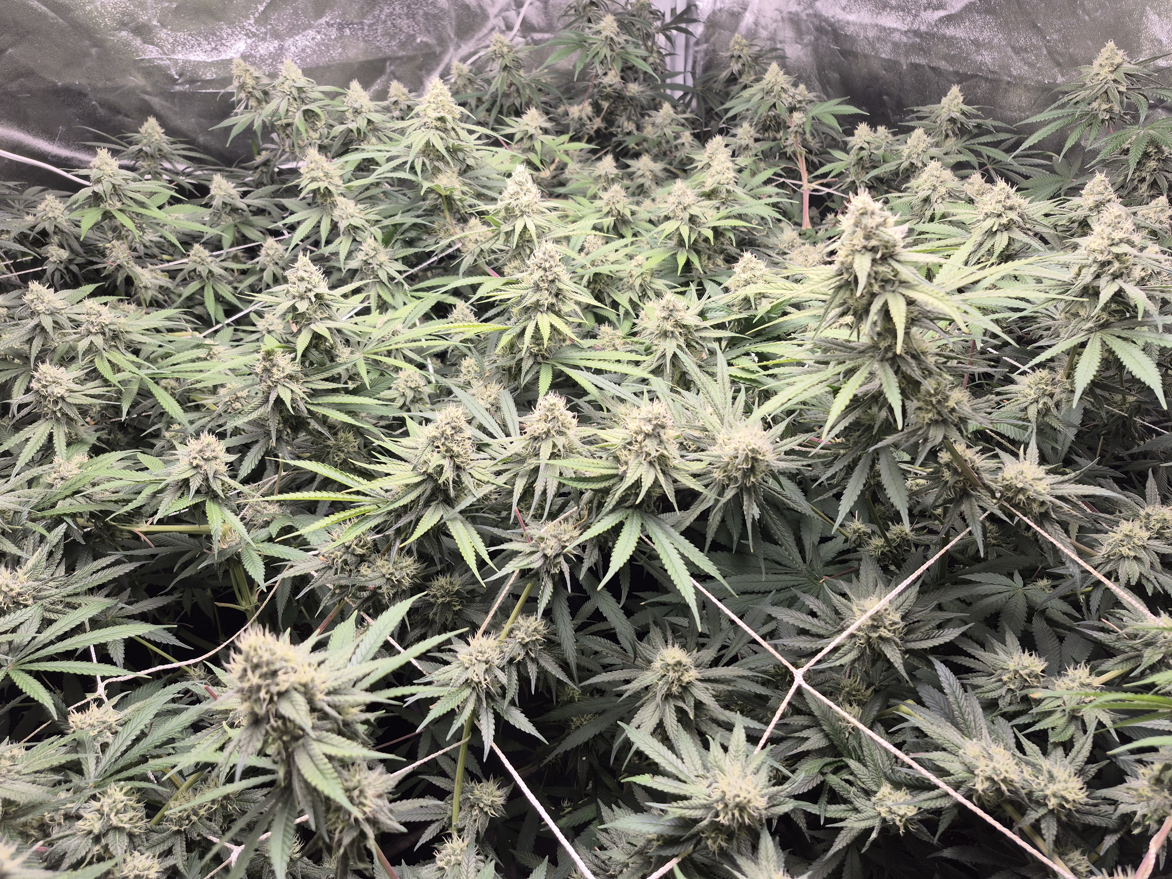 Things are happening in the grow room. The slurilope has finished stretching so time for more torture. They were pruned, netted down, and SPLAT.