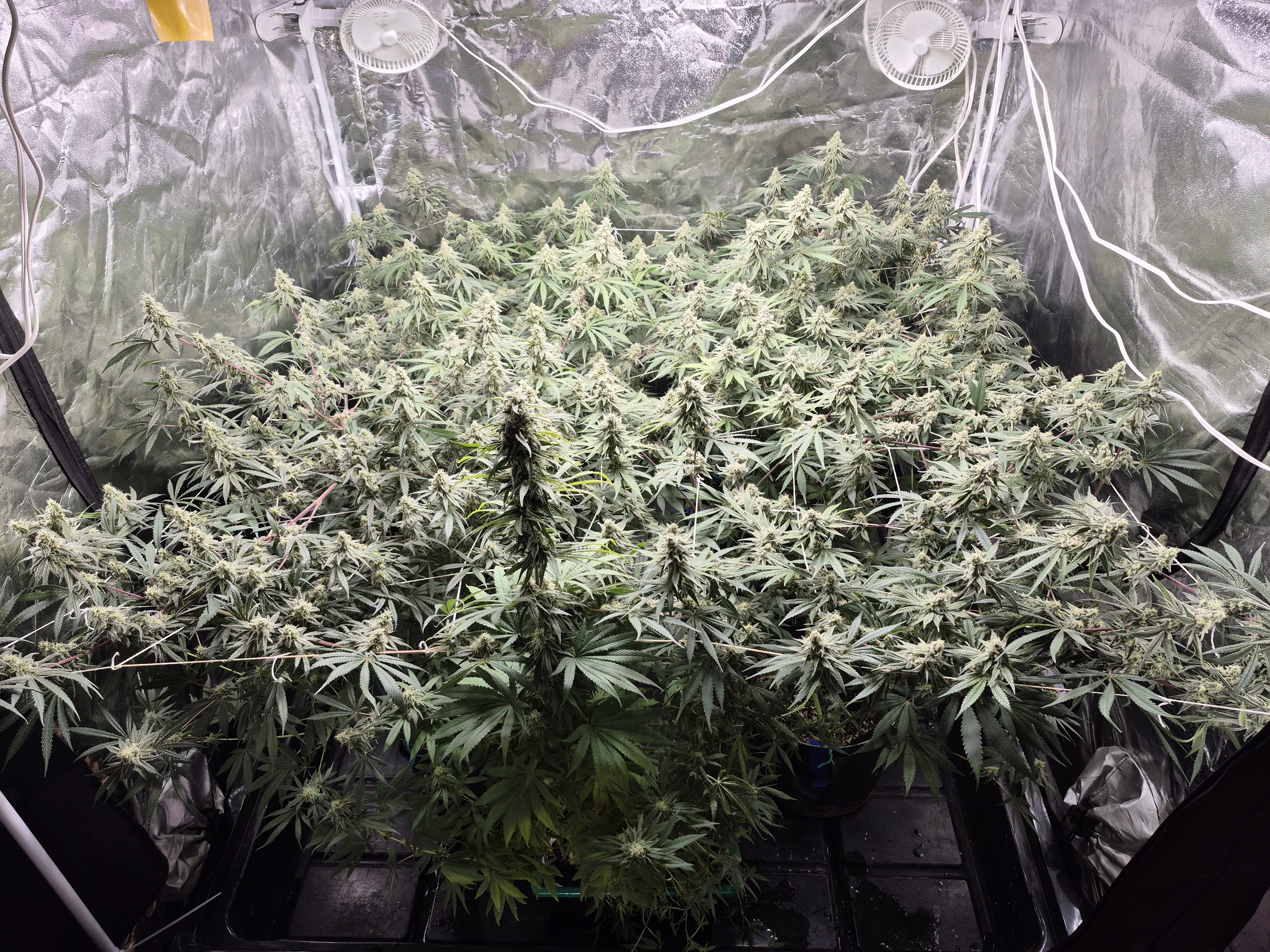 The solos were moved out of the tents so there is a little more room. The buds are starting to fatten up and the dank is strong. I love the smell of DANK in the morning. Not much to do except feed them and keep them happy.