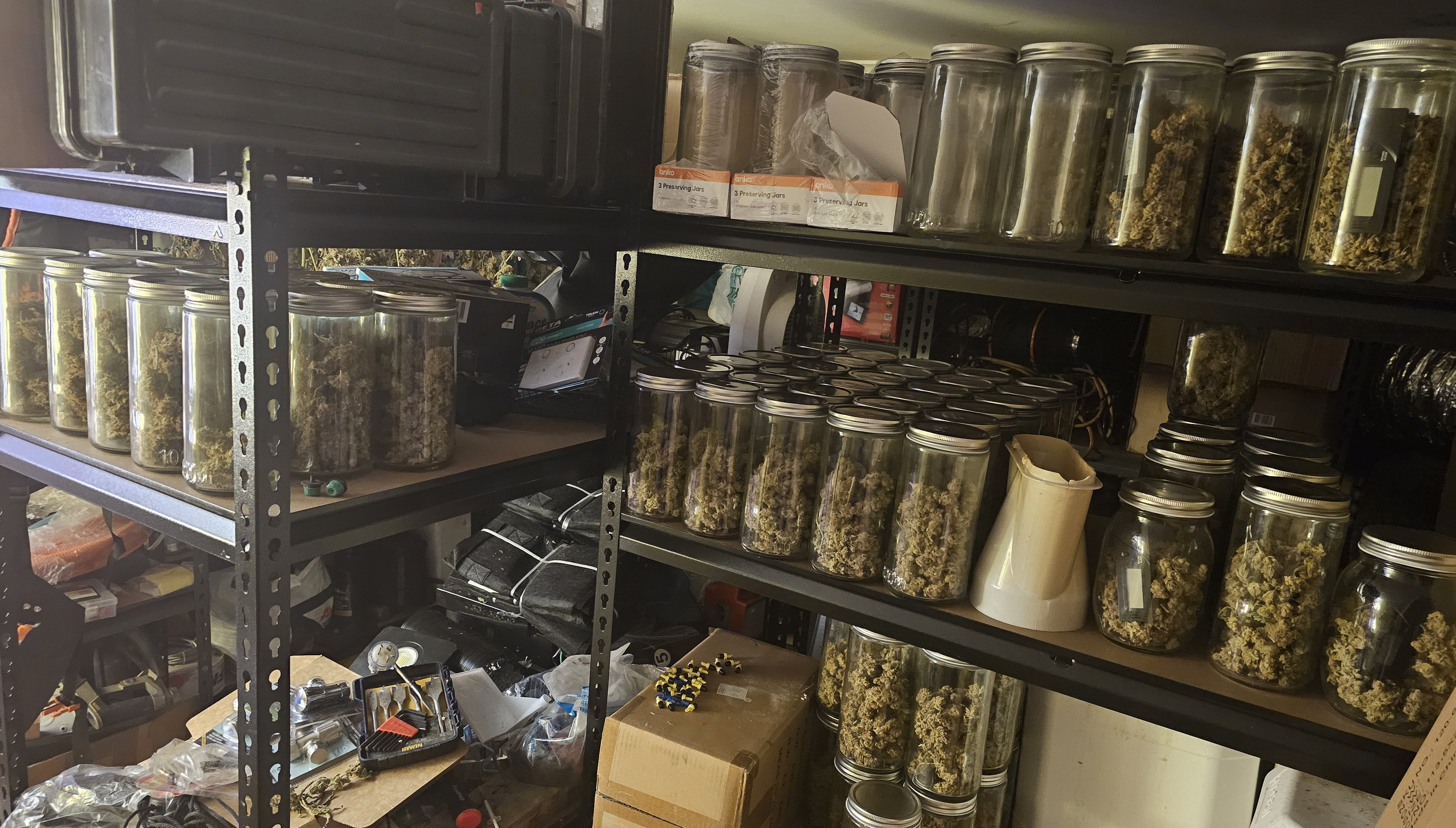 I also have about 6 boxes filled with bud and a couple of trim and behond these I have a dry area, currently two plants hung there for edibles