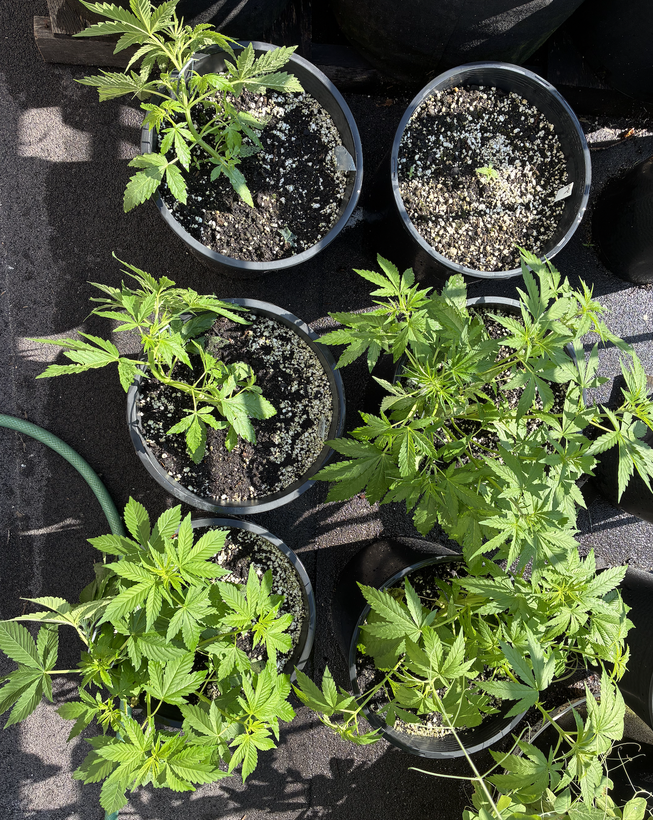 I'm doing LST on them all because my privacy screen isn't as impressive this year due to the wonky spring. The landscape staples are working out great for the LST. I like being able to move them easily. I got the 6" ones. The longer ones might be necessary as the plants continue to grow, but we'll see. The different varieties have very different growing habits. The OG Kush is easily bent and trained, but the Special Kush 1 is very dense and rigid, even in brand new growth. Sherbet Queen autos are fairly easy to manipulate. I accidentally snapped one bending it, but I taped it. It's been 24 hours, and it hasn't started wilting, so maybe I saved it? Time will tell.