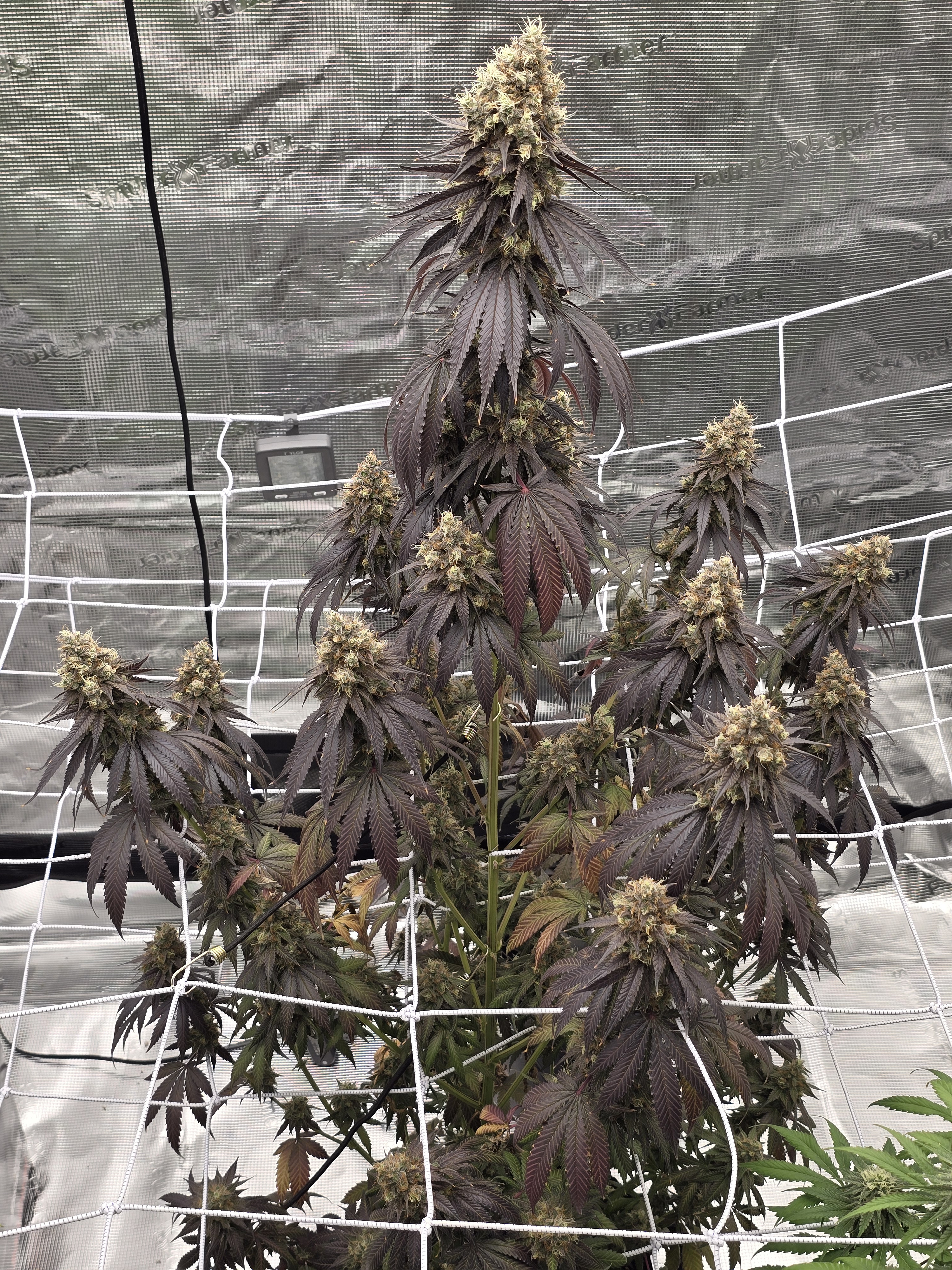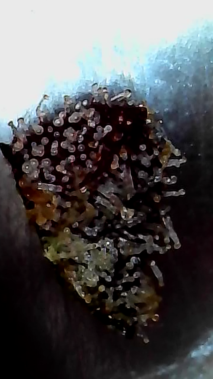 Plant has been on water 4 days. My 1st grow. Not sure which strain. Started out with 7 plants. 2 strawberry gelato. 2 Bubba Cush. 2 Grandi Guava and 1 white widow.. Had to whack all but 1. (males). From bag seed. That is what I was waiting for. The white pistols on the top cola to change color and curl in.