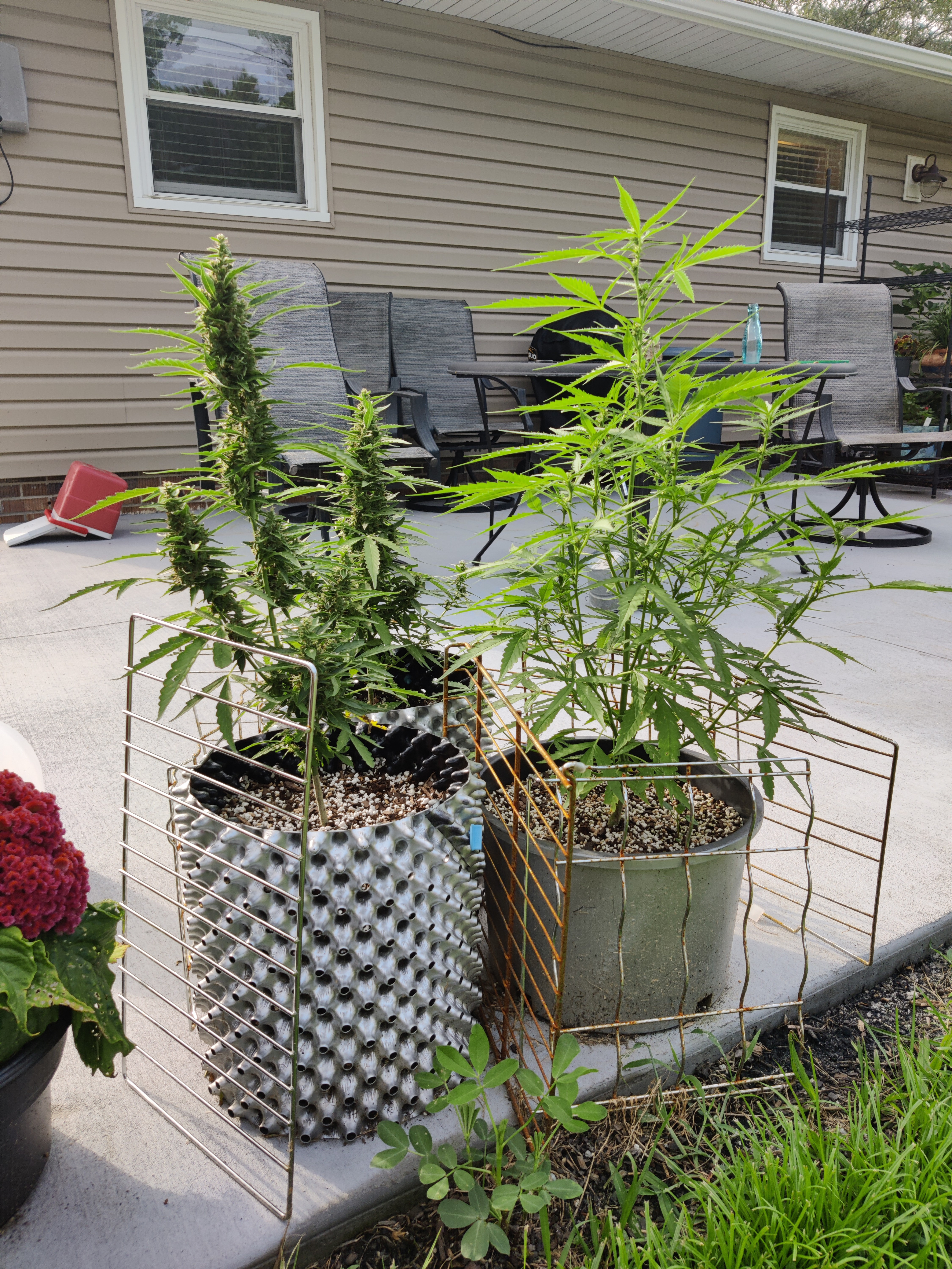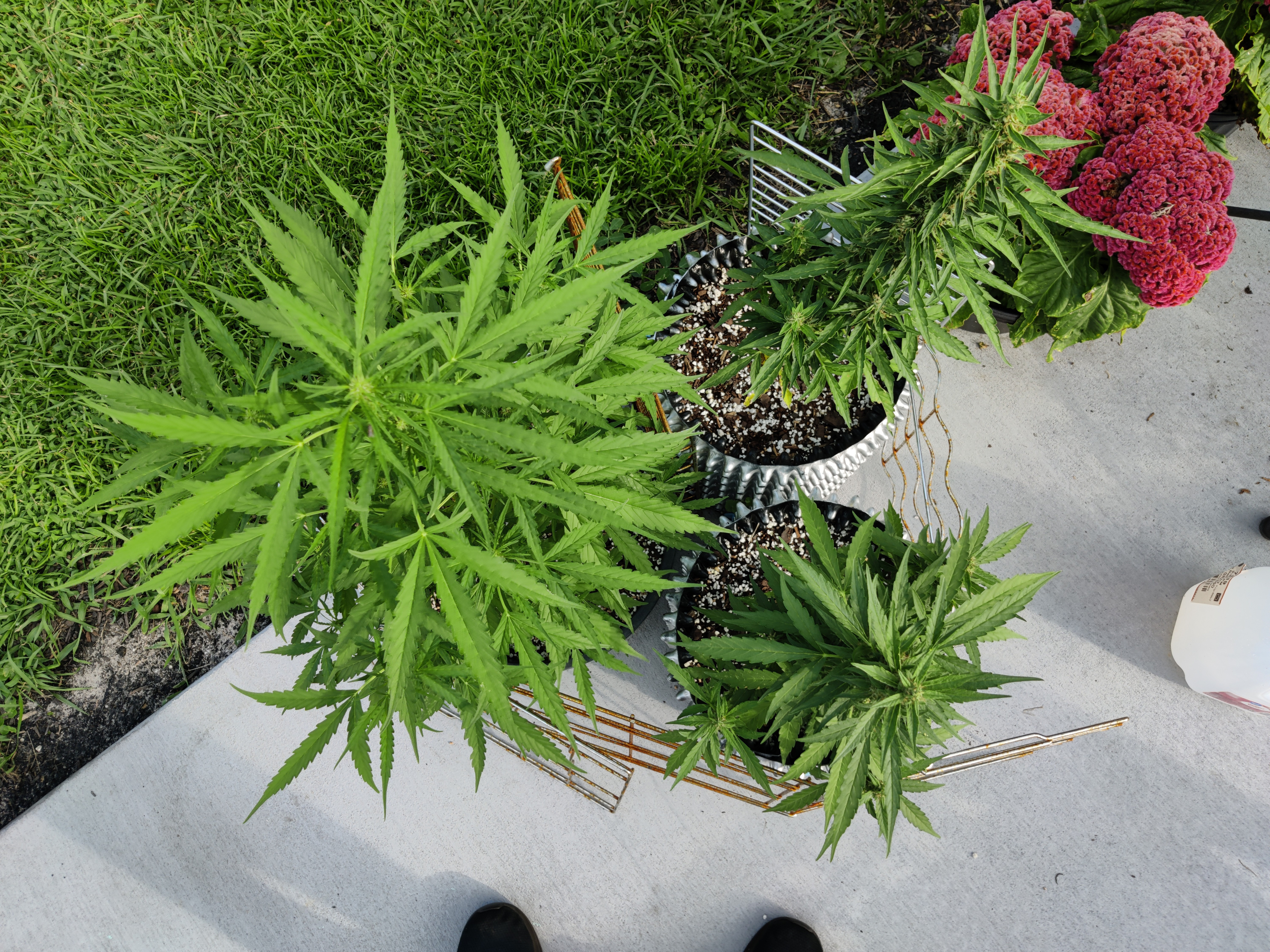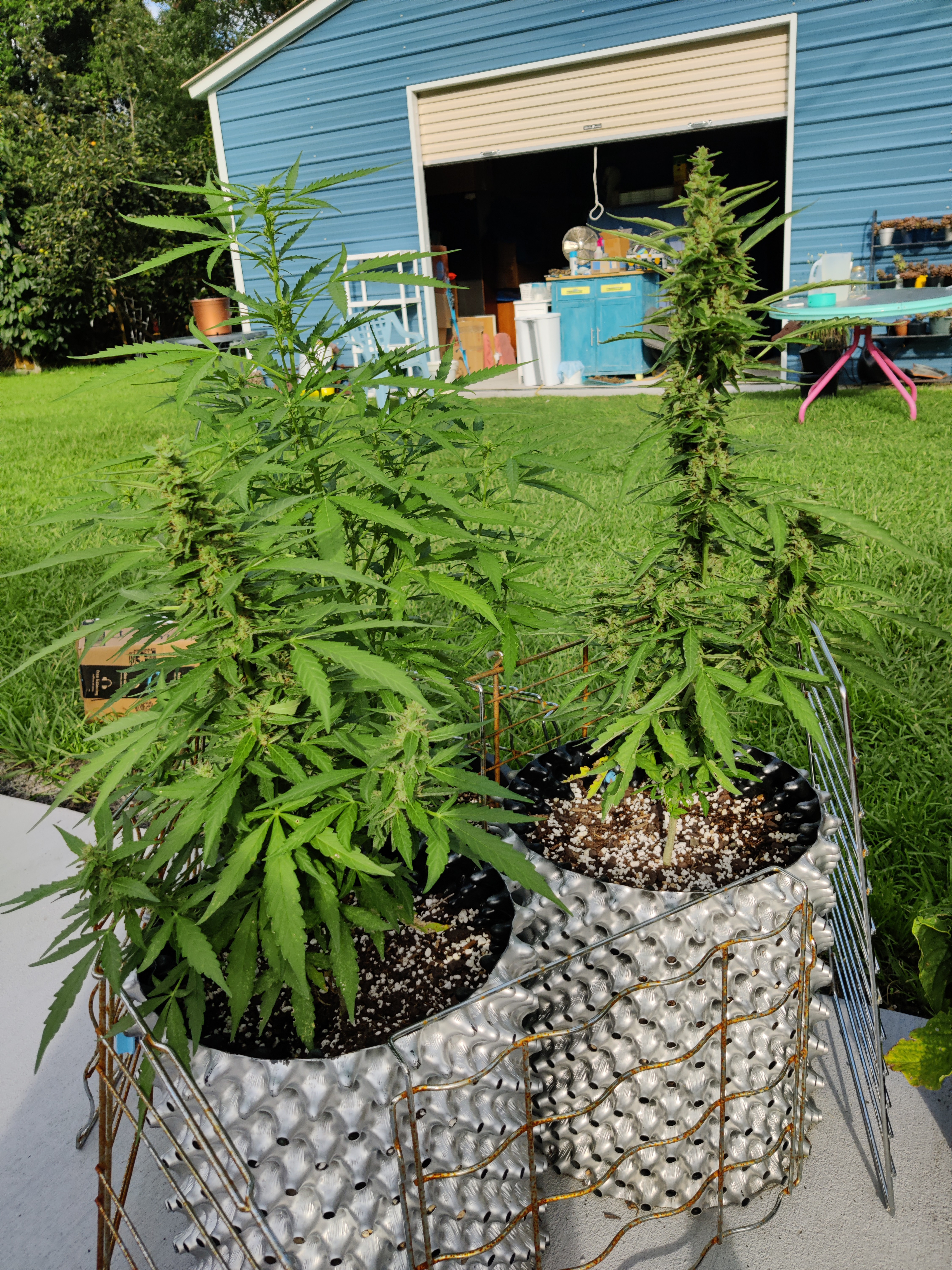 Three sisters in the pics. Jack Herer autos. I thought they drown as I left them out in a storm as seedlings. Accidentally of course. That's a pretty major setback for an auto, or so I hear. Strange the one is so busy. And the leaves alternate even though it's from seed. Fingers crossed no Bud rot, it's pretty humid here.