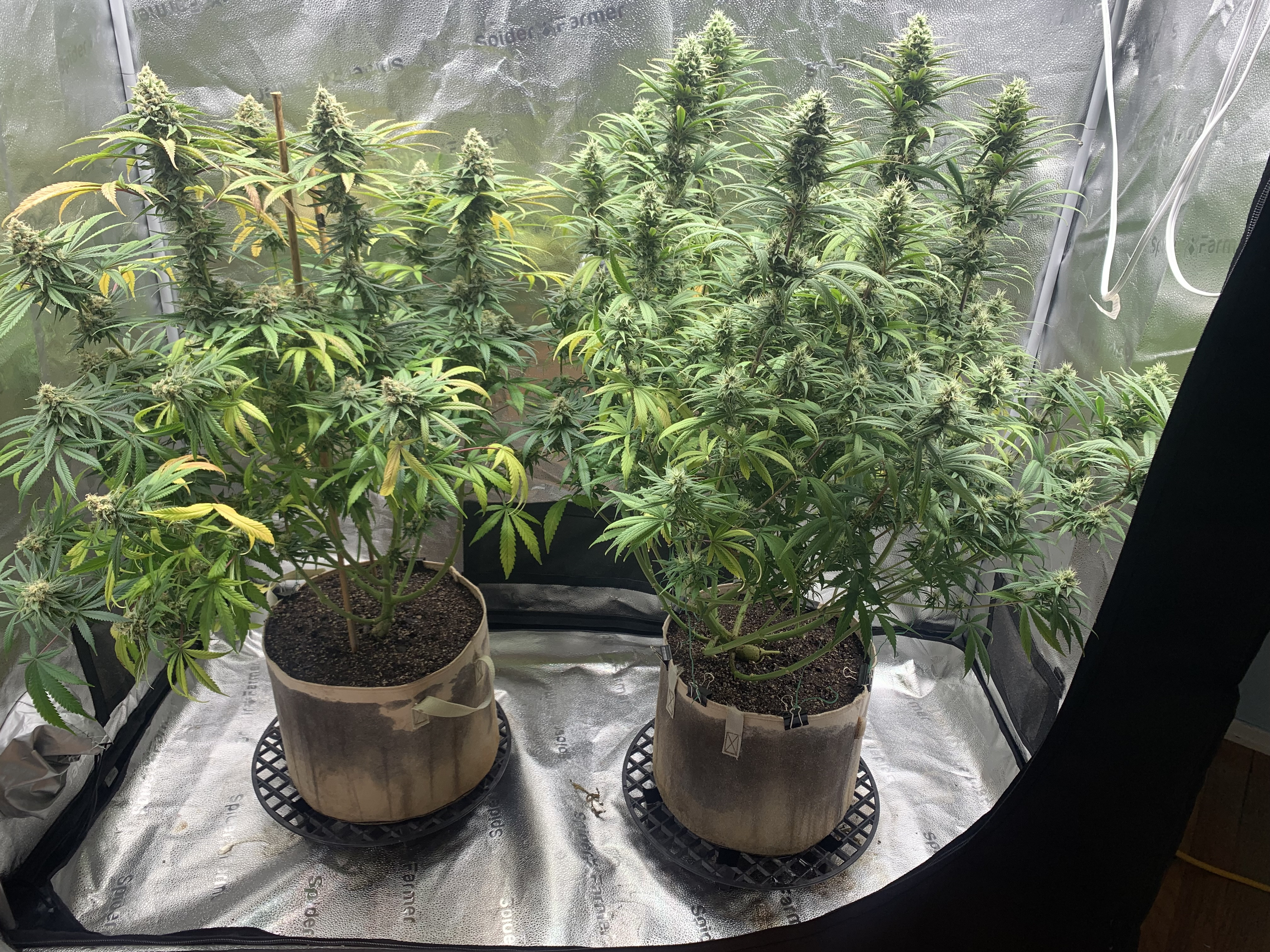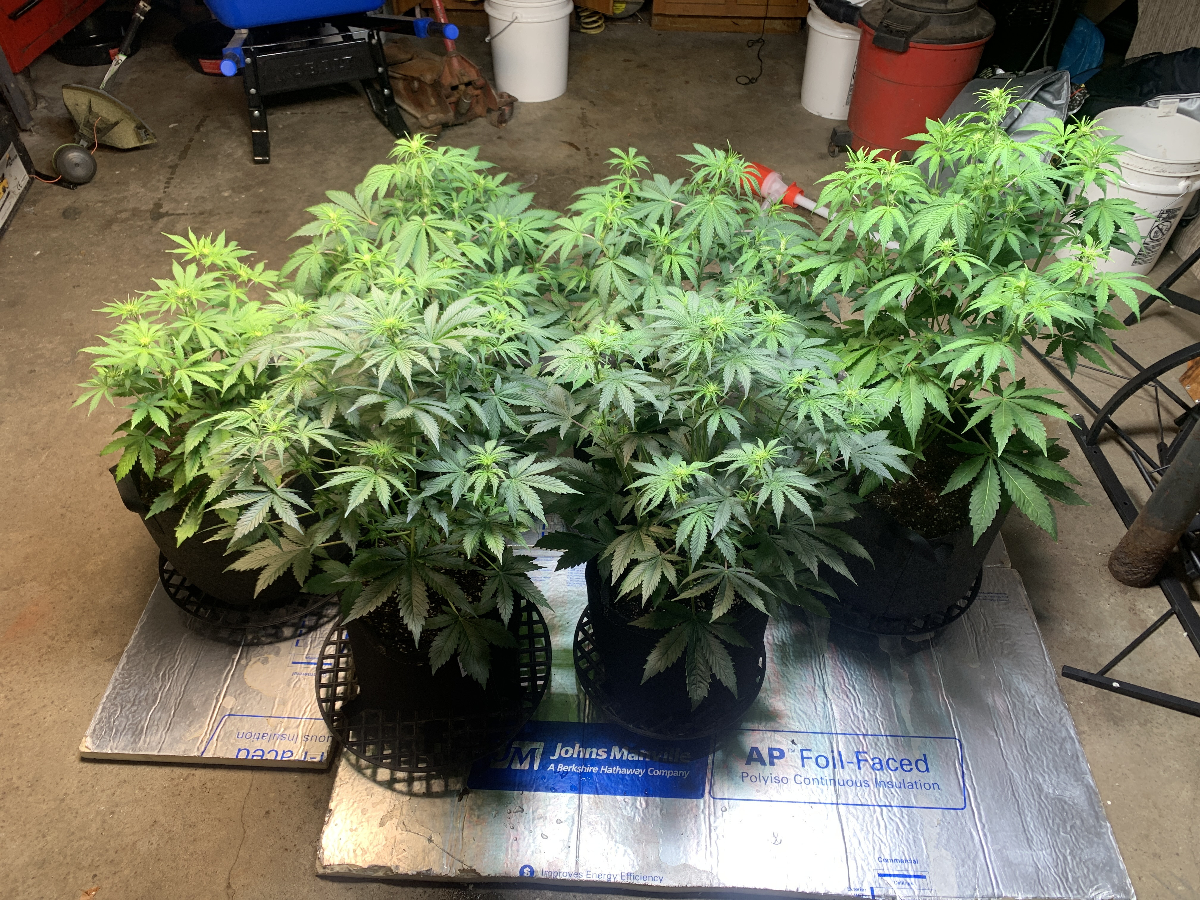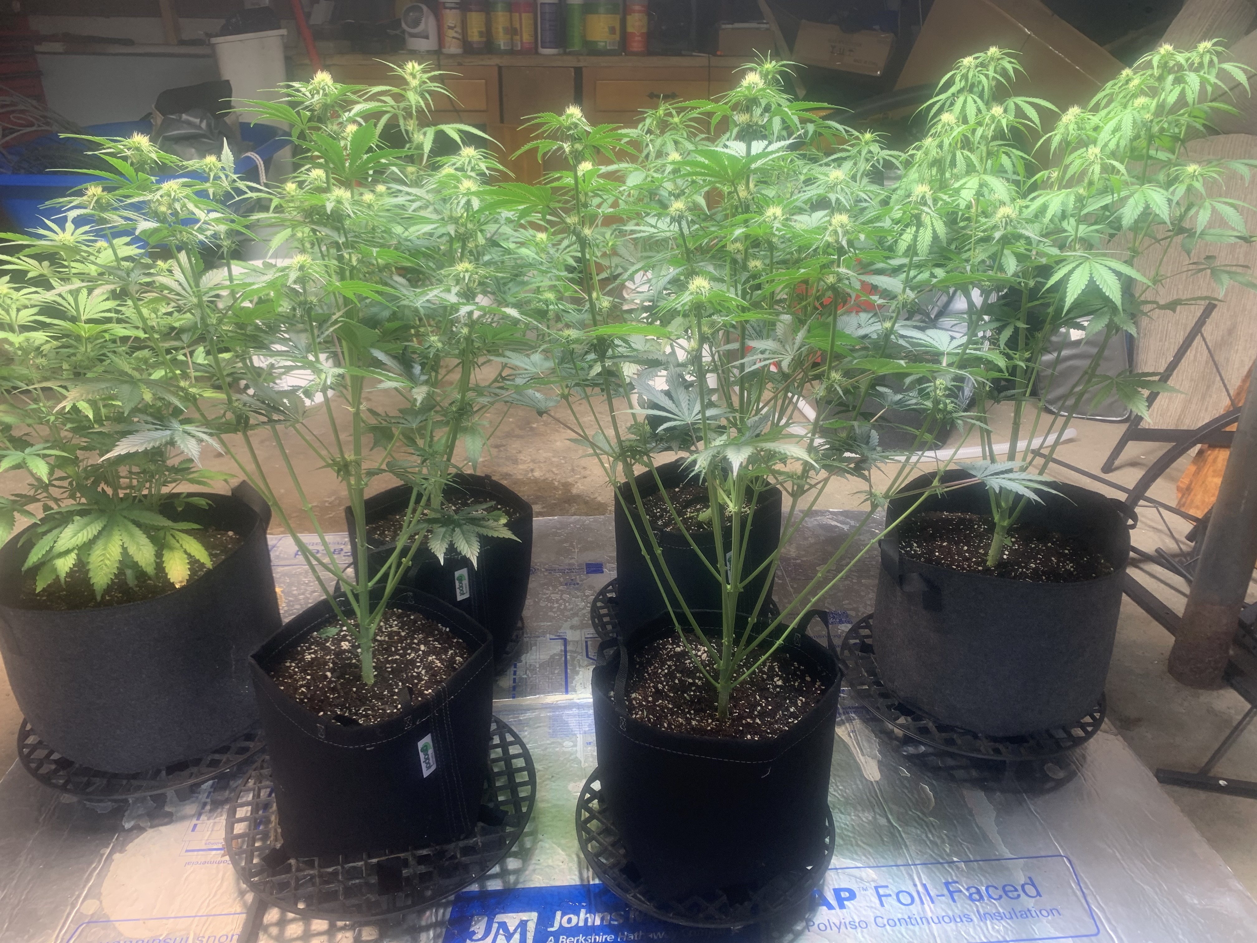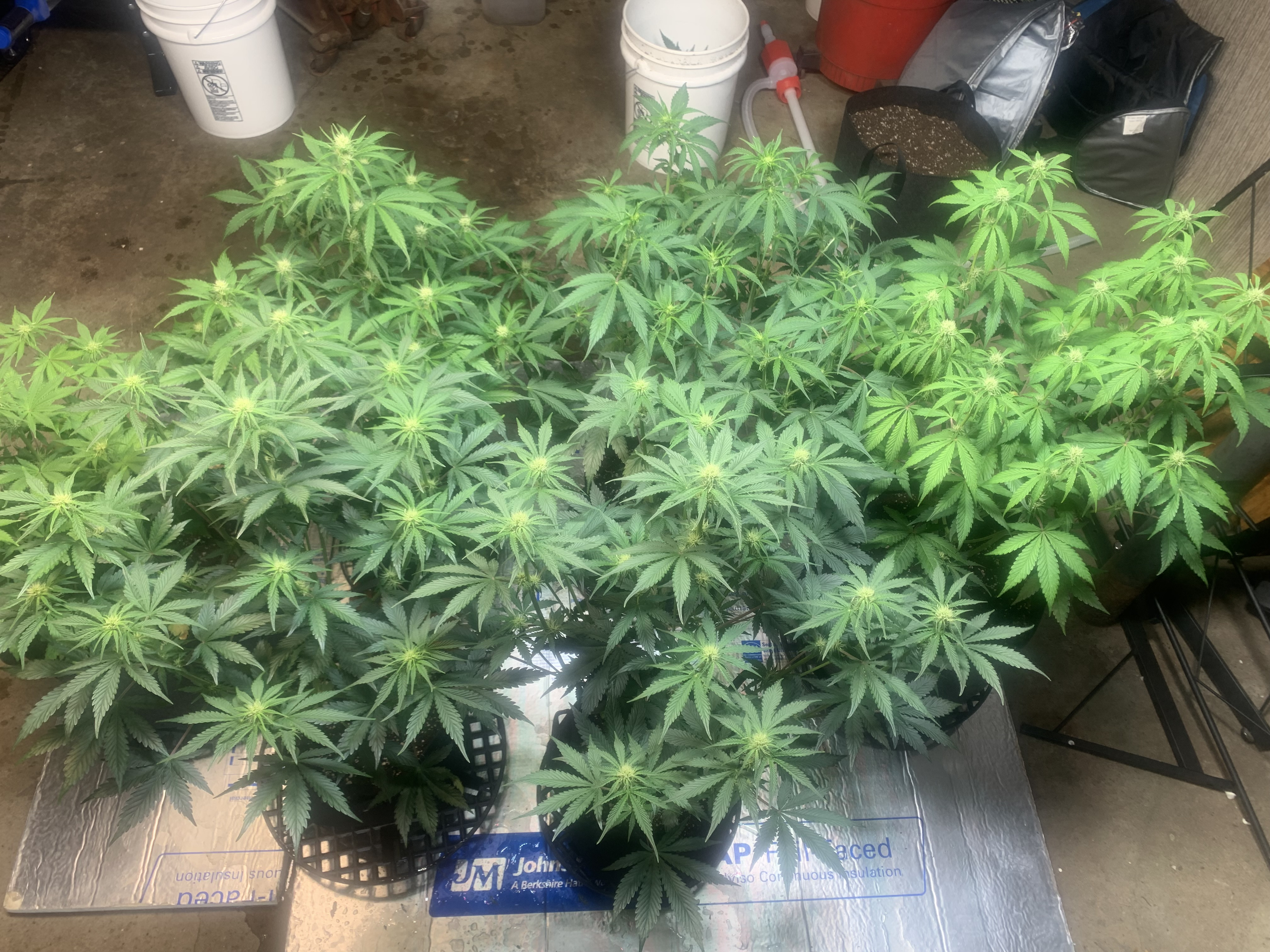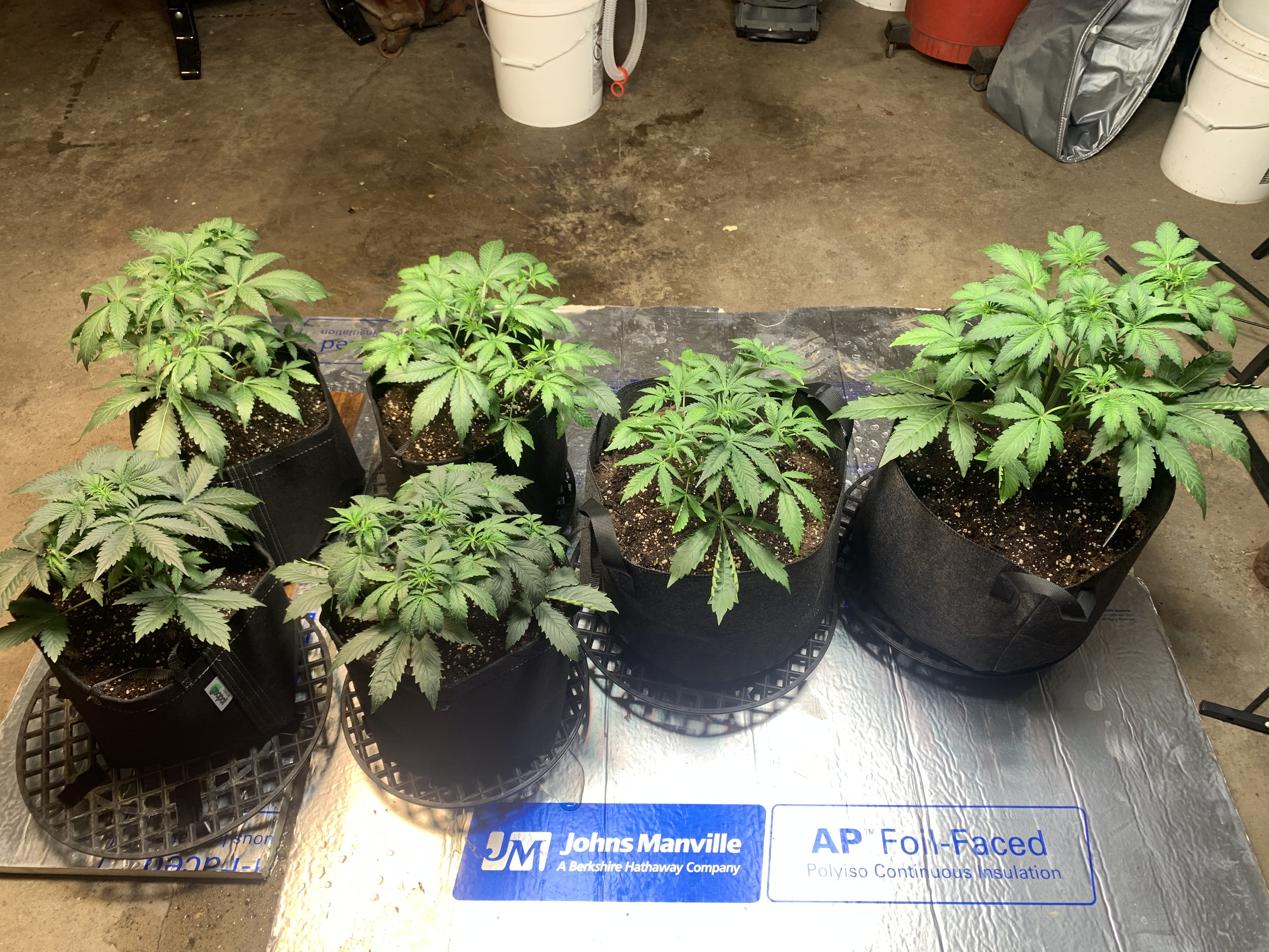 Day 22. Doing alright. After all this time growing I still tend to over water, I need patience. I took them off the tables and set to the ground with a nice insulation pad between the and the concrete floor. Pushing about 300 on the ppfd. It’s been 4 days since the last water. Patience. Othe than that they are doing great. Getting big fast. Last water was the first feeding.