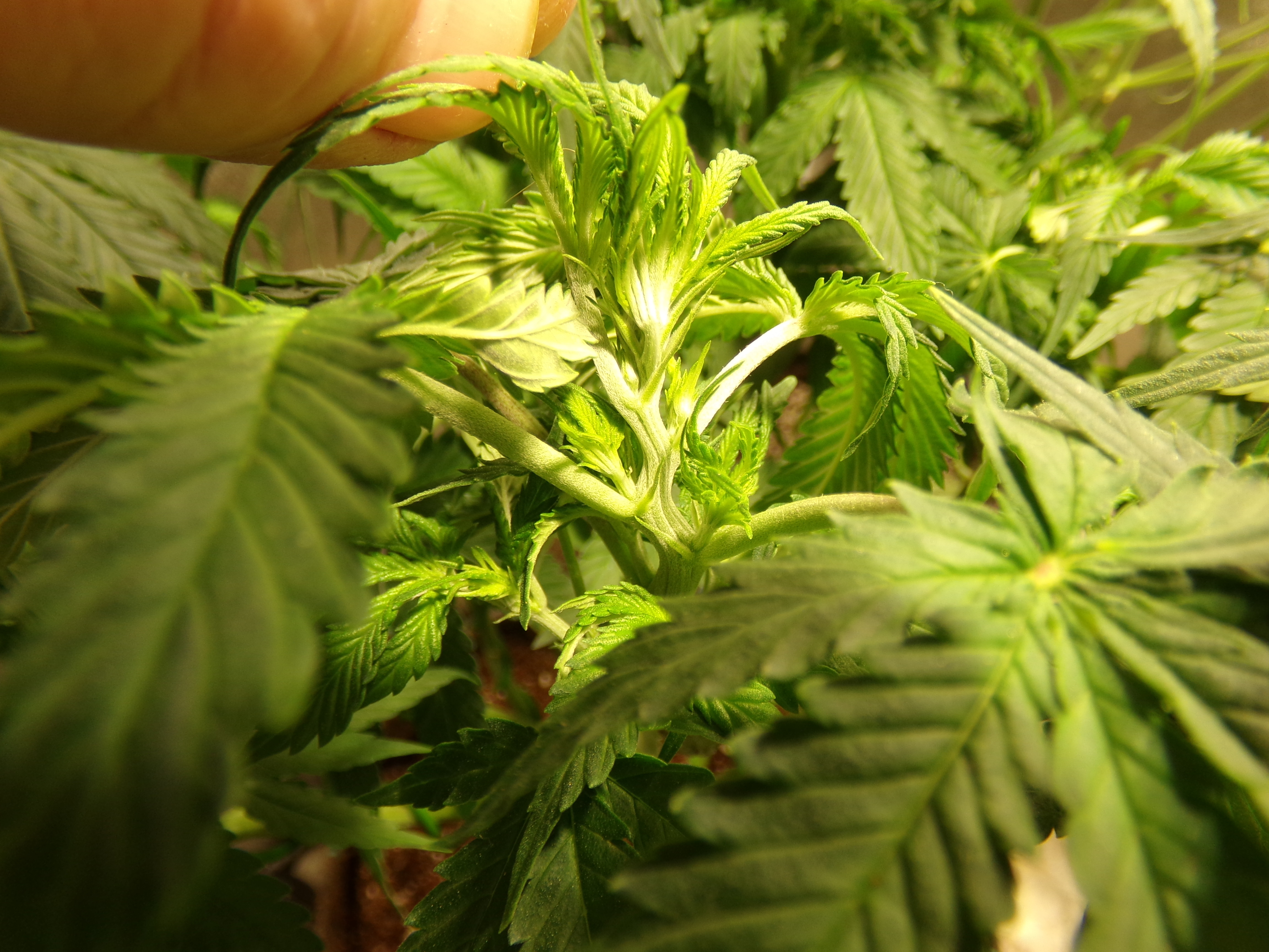 Why another heavy defoliation? Because I am finding 4 large plants in a 3x3 tent need to be trimmed or I get a solid mass of leaves that block light and air and create condensation from overlapping leaves.