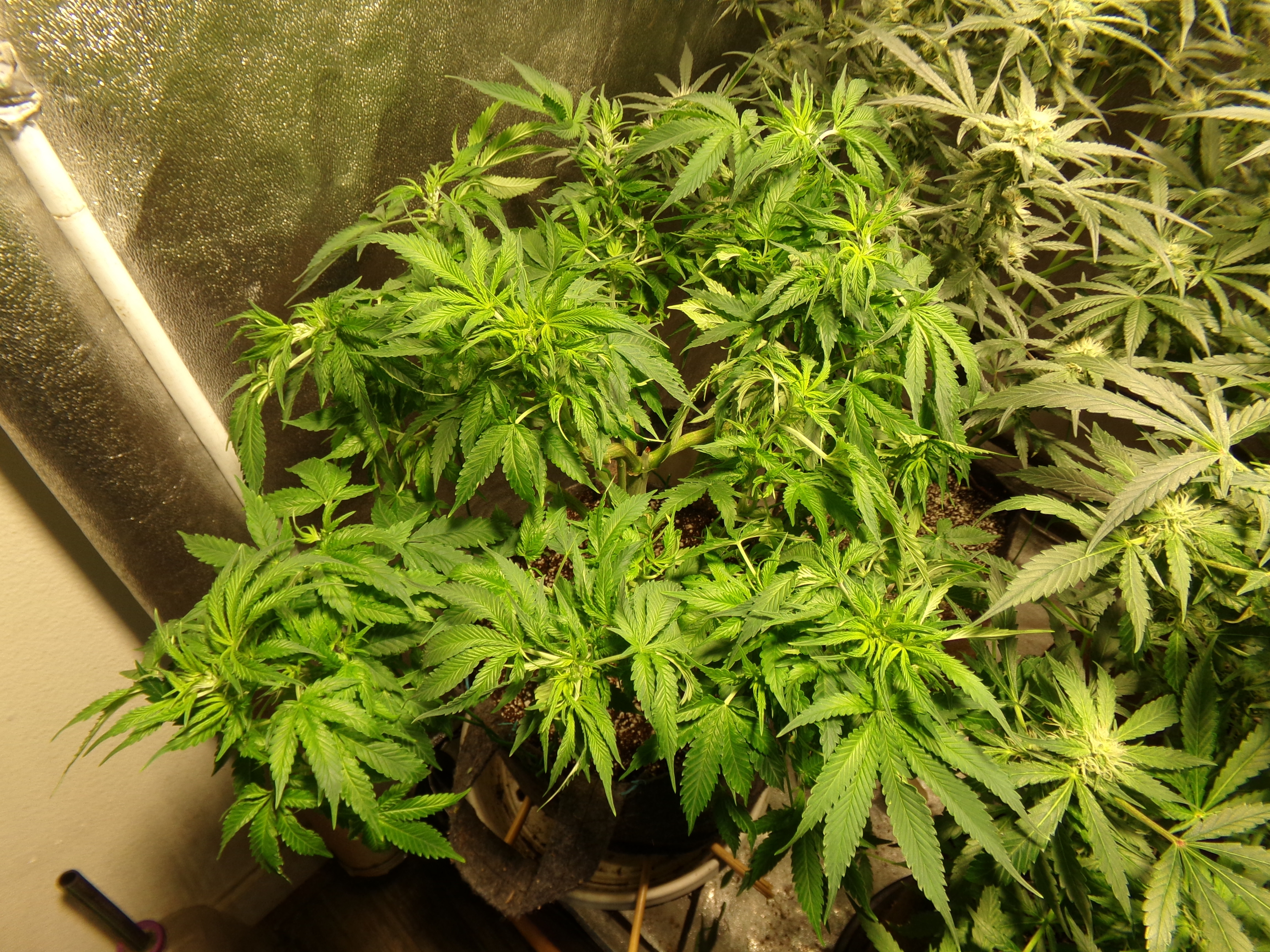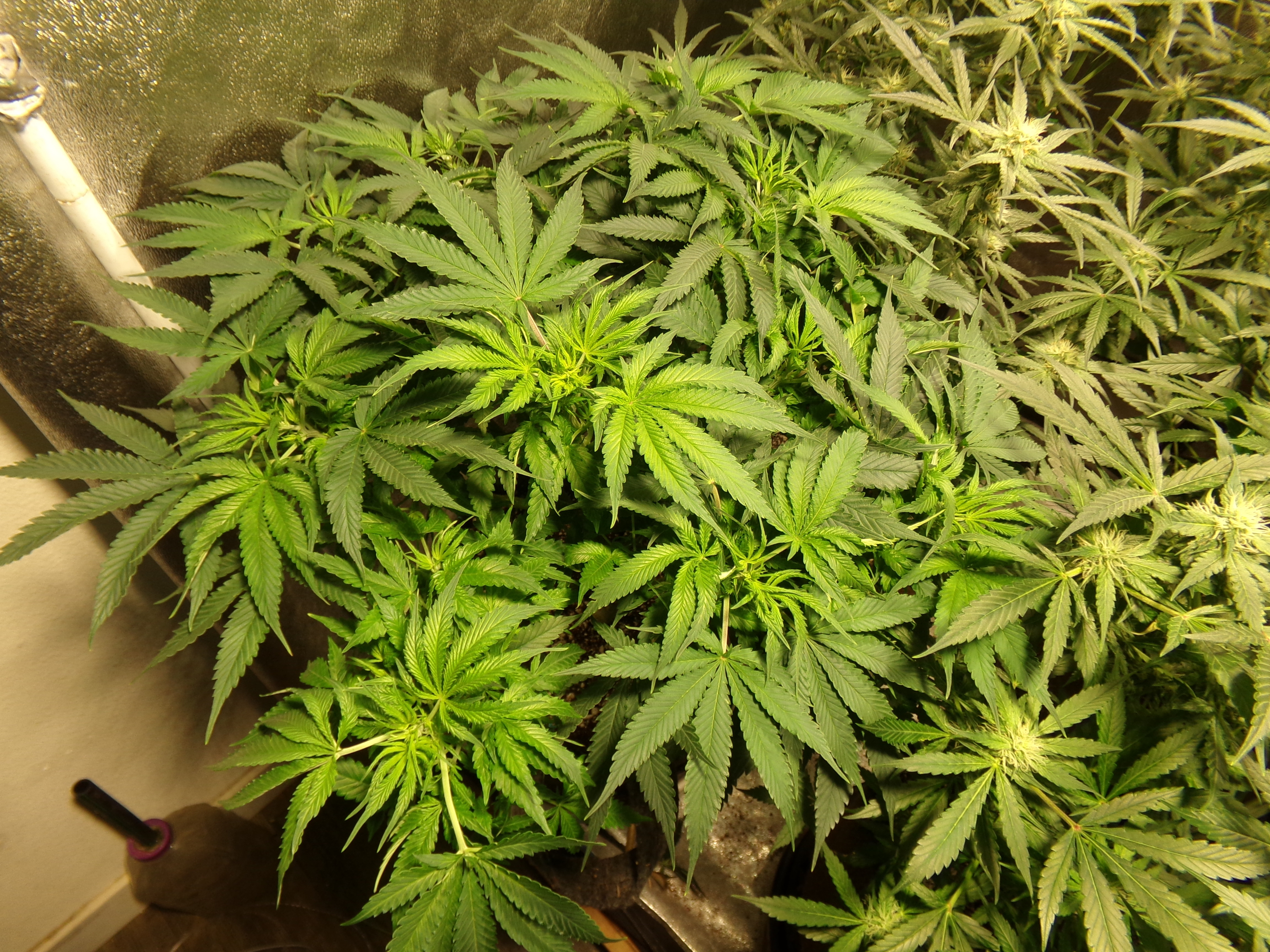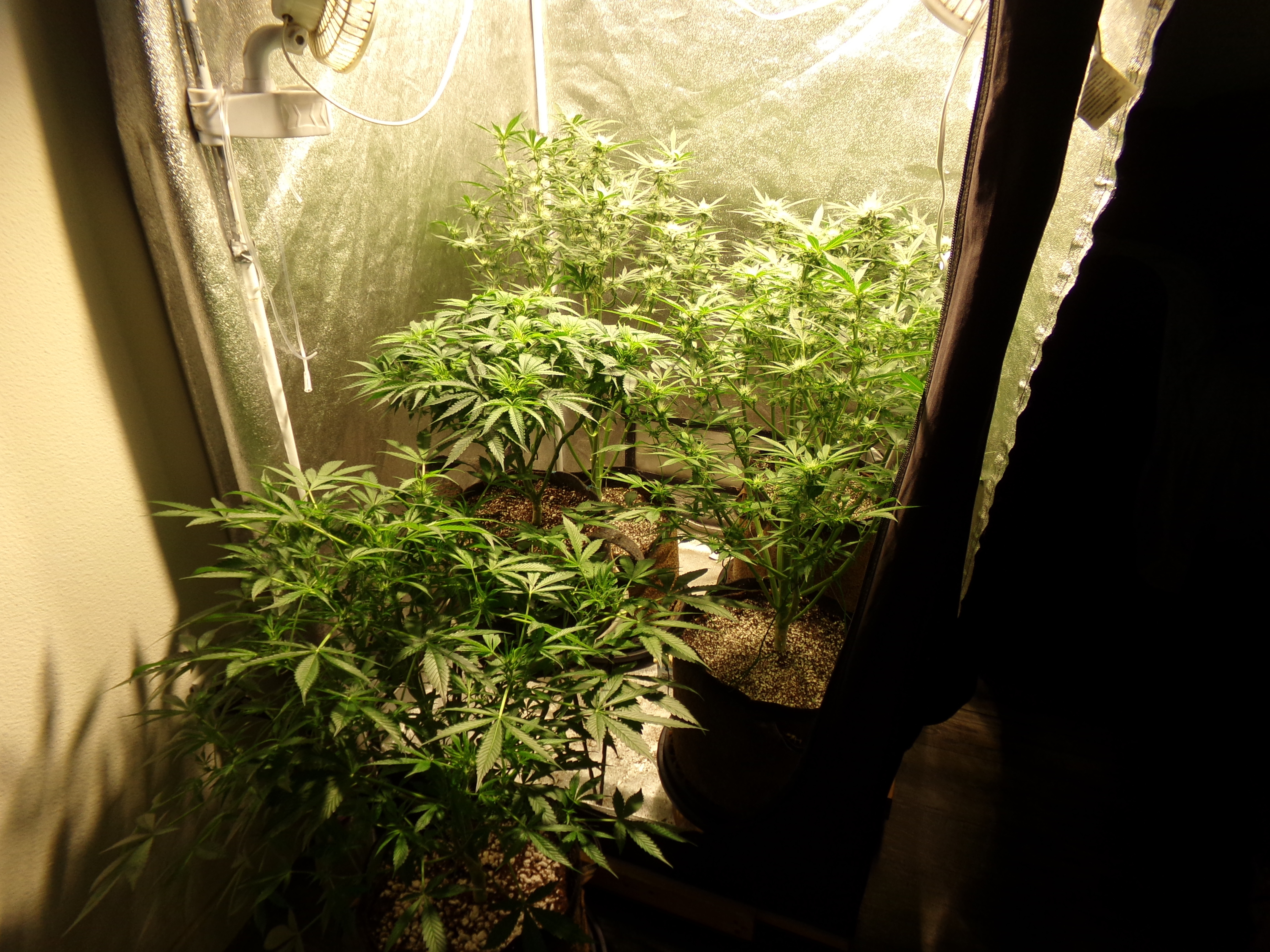 On the other hand, the two that were in the front are longer vegging. The one outside the tent (former front left) has started to do its thing and the front right looks like she's coming on worth her nutrients.