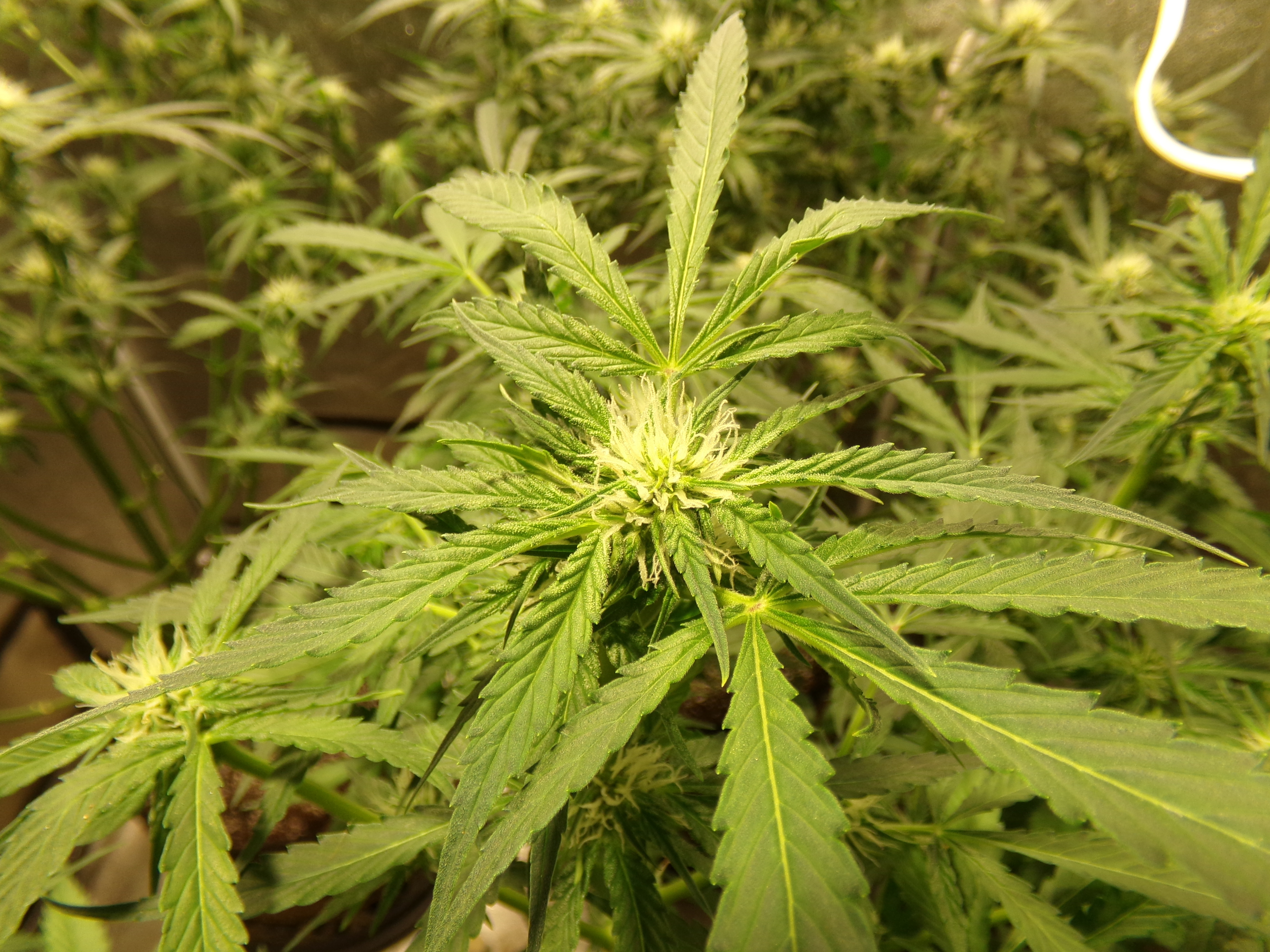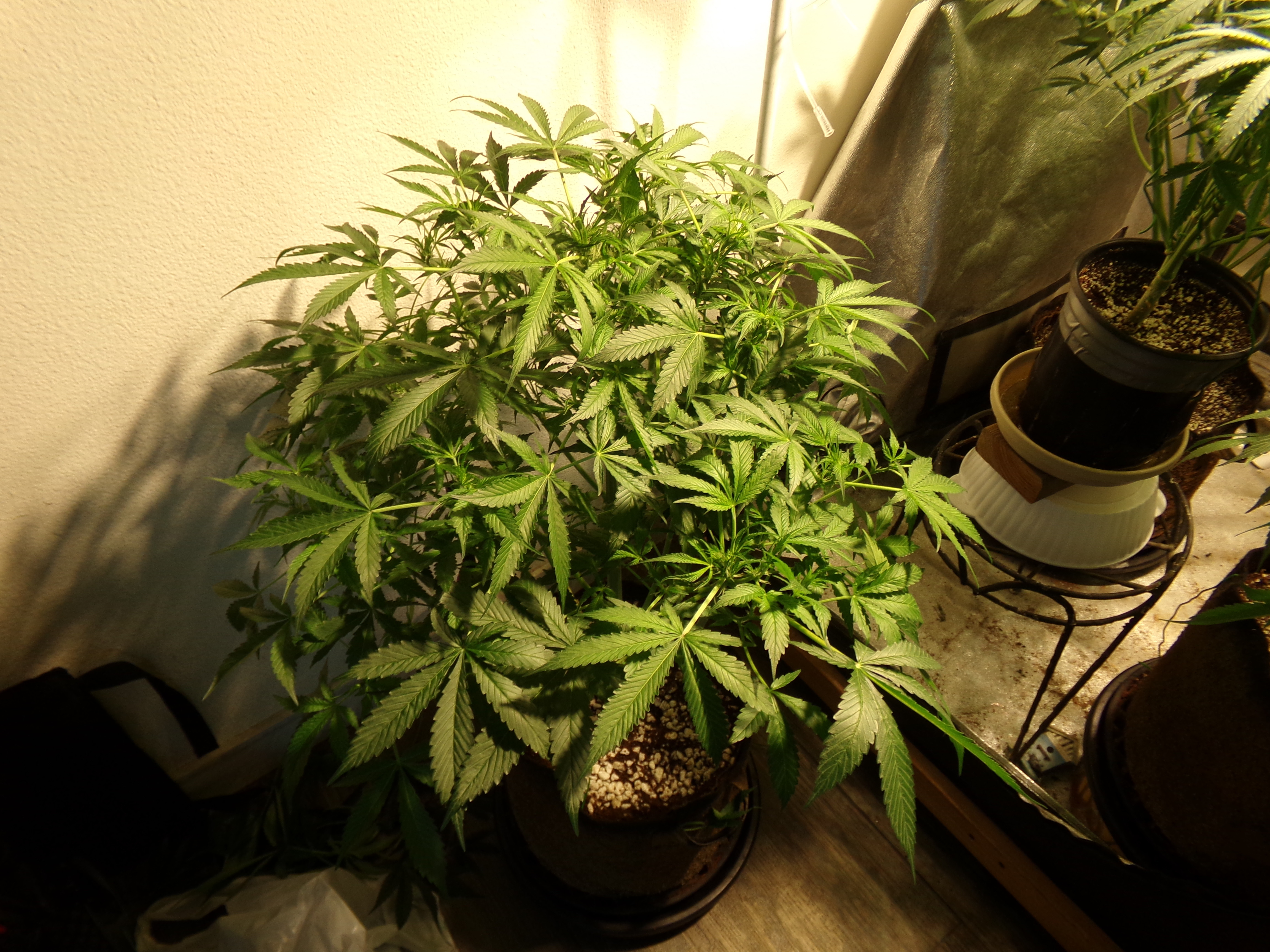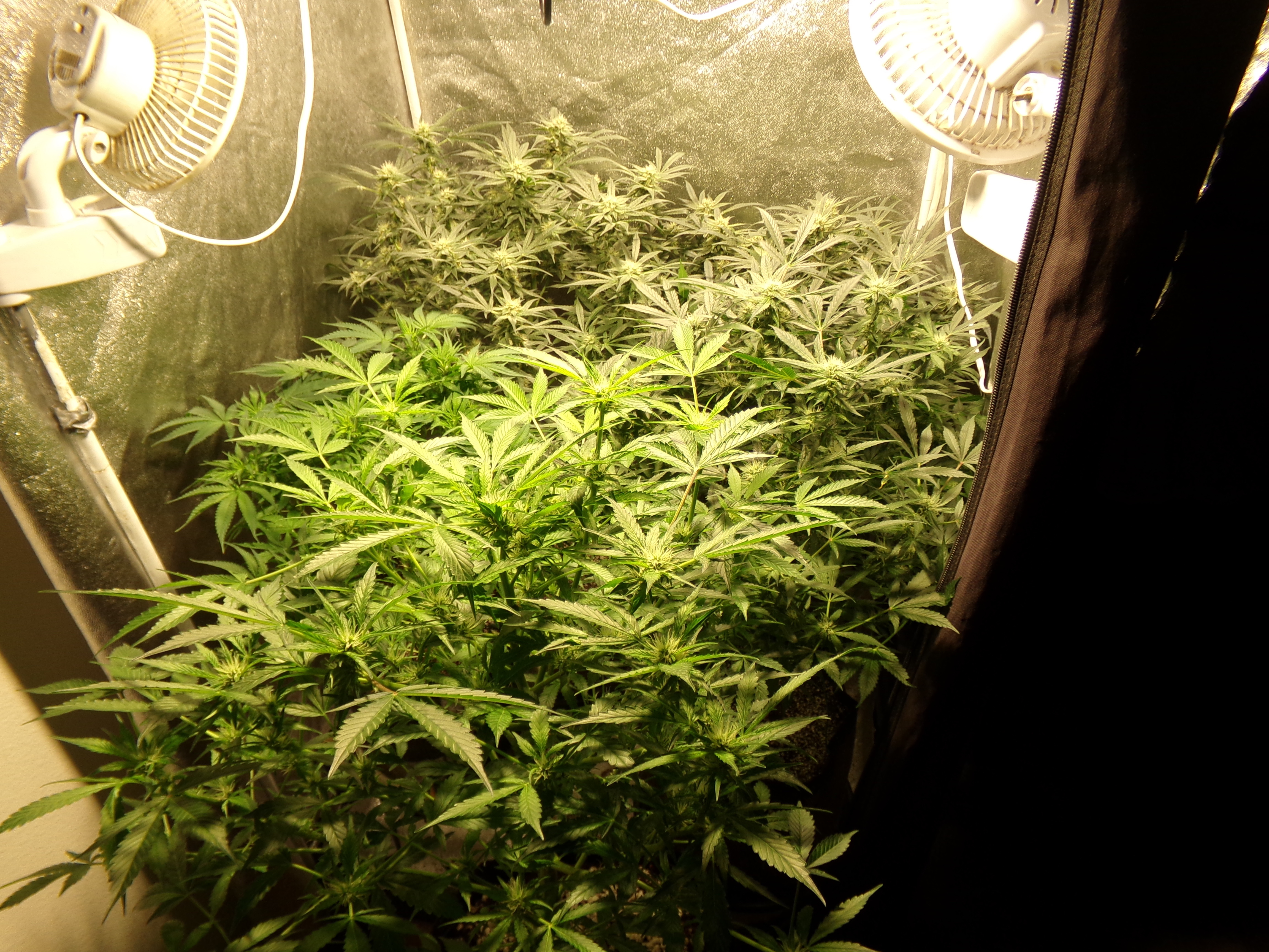 On the other hand, the two that were in the front are longer vegging. The one outside the tent (former front left) has started to do its thing and the front right looks like she's coming on worth her nutrients.