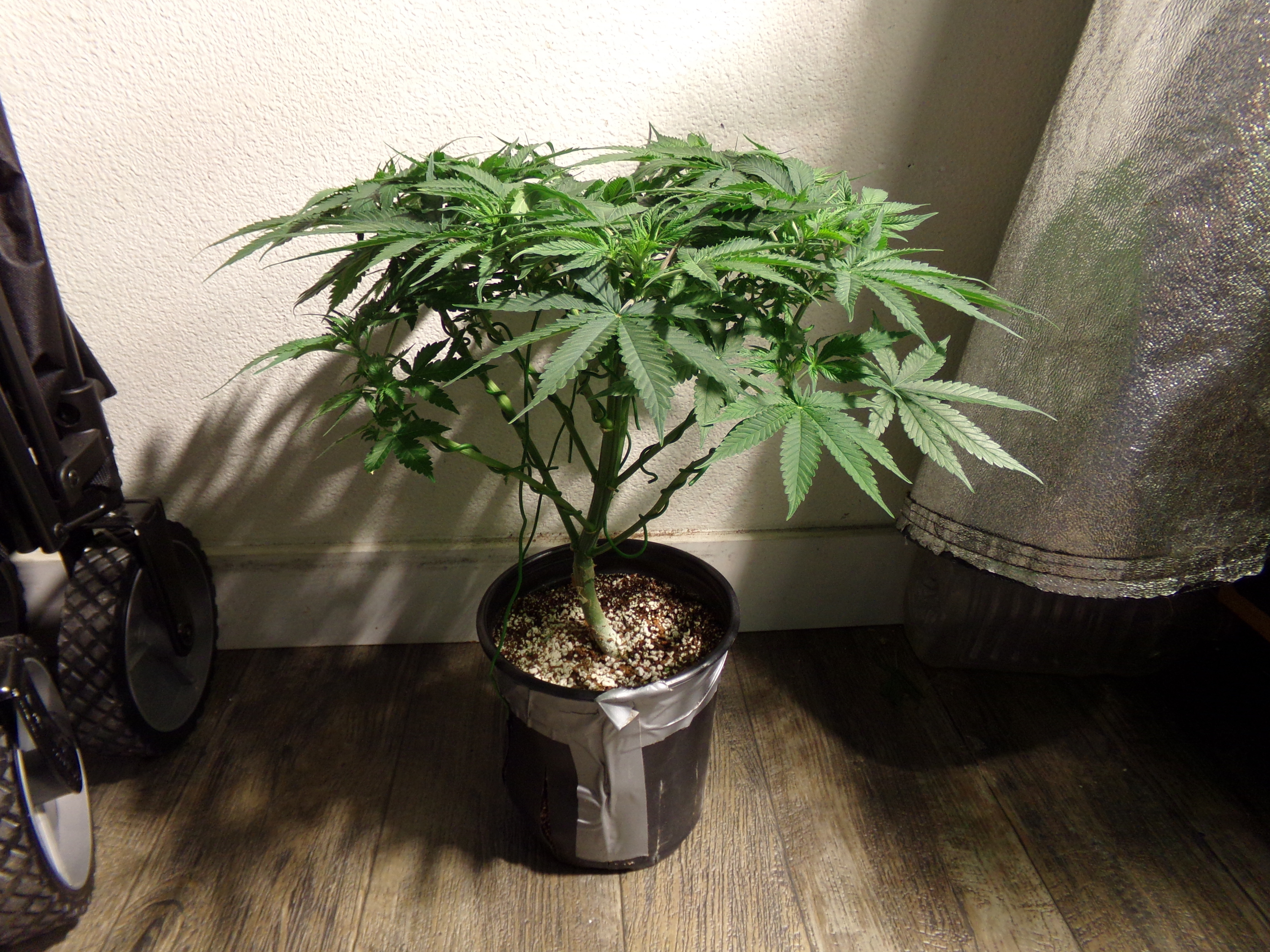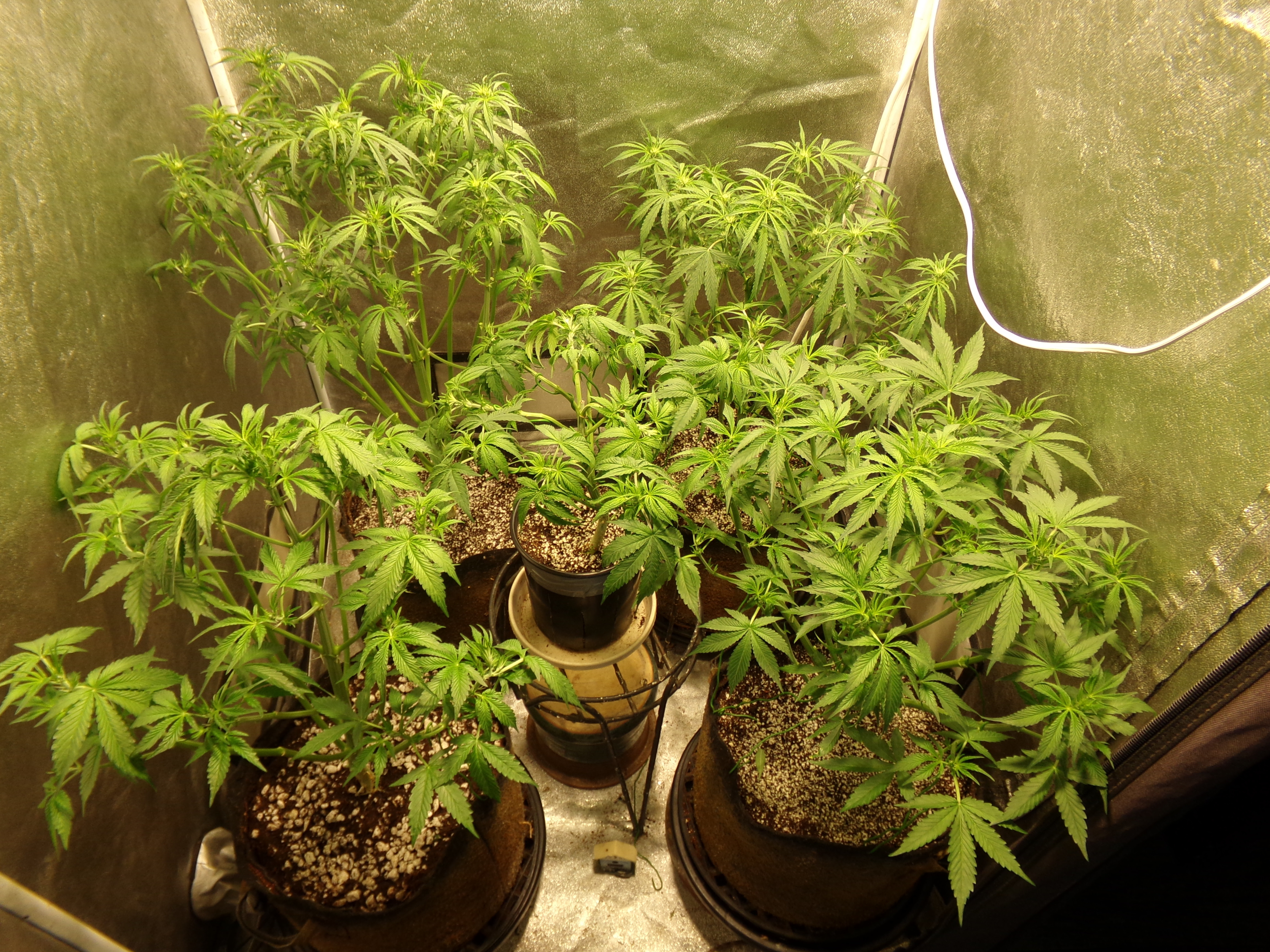 Sculpting, yeah. Got that going on only to keep it small enough for the space it's in. Again, front two plants are on 4" risers. The back left plant just got hit with the bendover stick to bring it down about 3".