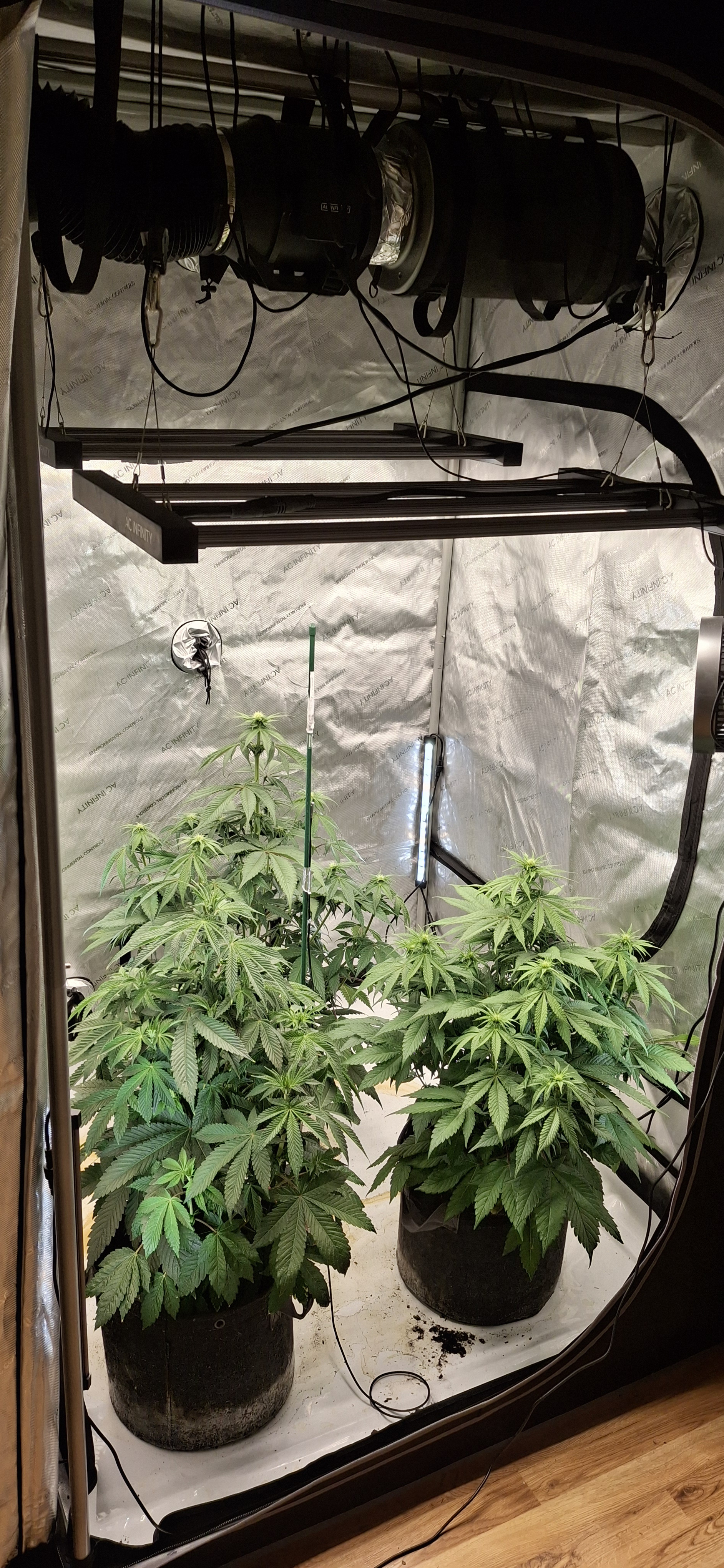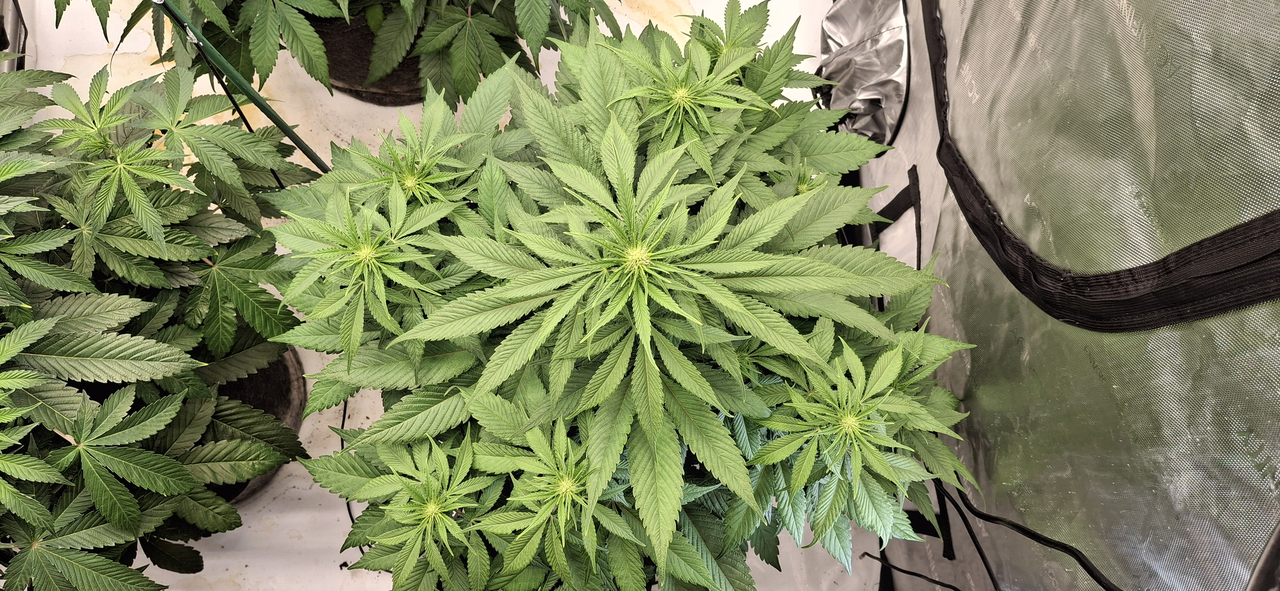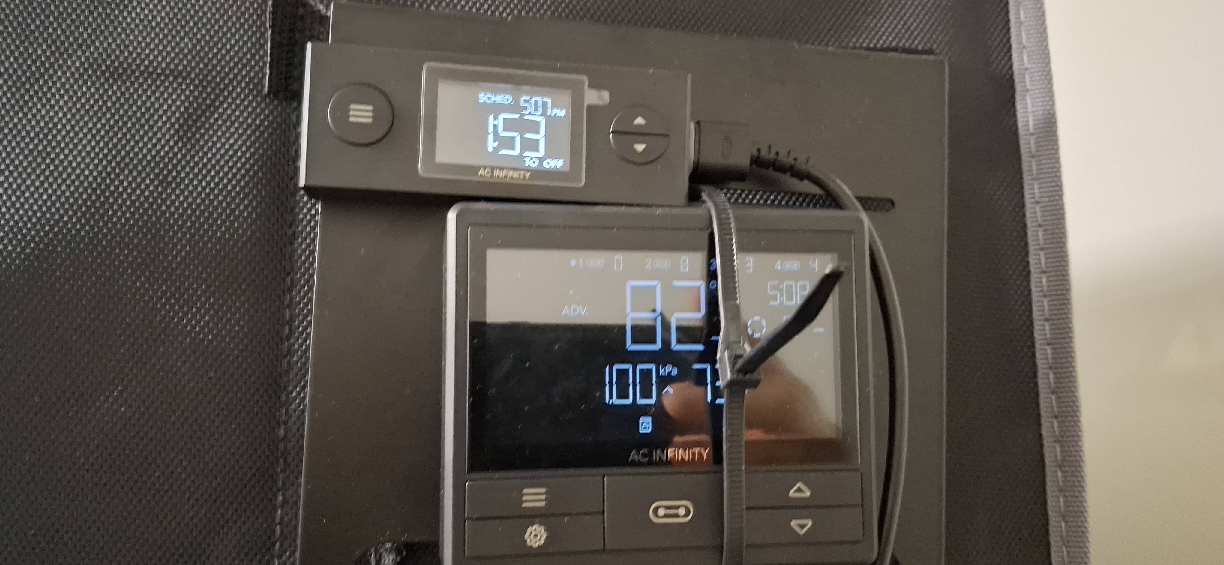 I figure instead of lollipopping, why not feed them instead of trimming them? An experiment..The kit is the S16 light kit from AC Infinity. With the splicer, if my 2 Evos are at 1 and raise to 10 for a duration of 15 minutes for sunrise the lights on the poles do the same. If I want to control them separately, I have the controller that came with them So no lollipopping and no topping. Let's see what happens. I got em for $80 and if it saves me back pain from trimming, they would be well worth it. I'm basically letting them have free reign.....