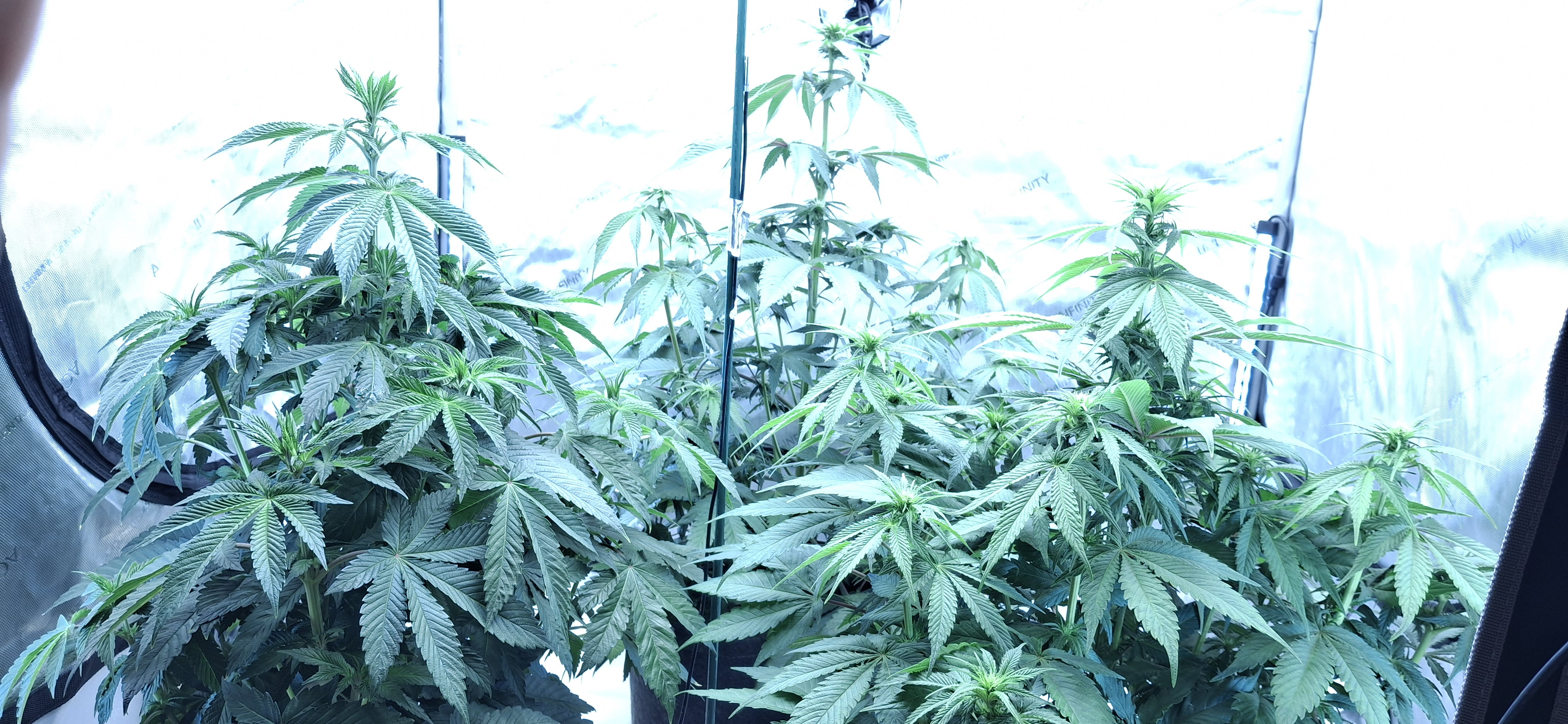 I'll be going 12/12 on Monday. They already at around 11-12"'. I'm not topping this round. An experiment. The Sour Diesel is sensitive. See the slight yellowing on the edges? No big deal. The other 2, perfect. Since I'm using the same soil and water, everything is the same between all 3, it's strain specific. No need to panic or add Cal-Mag. Let her do her thing. The 2 OG Godfathers are beautiful. Huge. Healthy. The ladies look happy. 😍 Had to update. I'm so proud of my girls.....