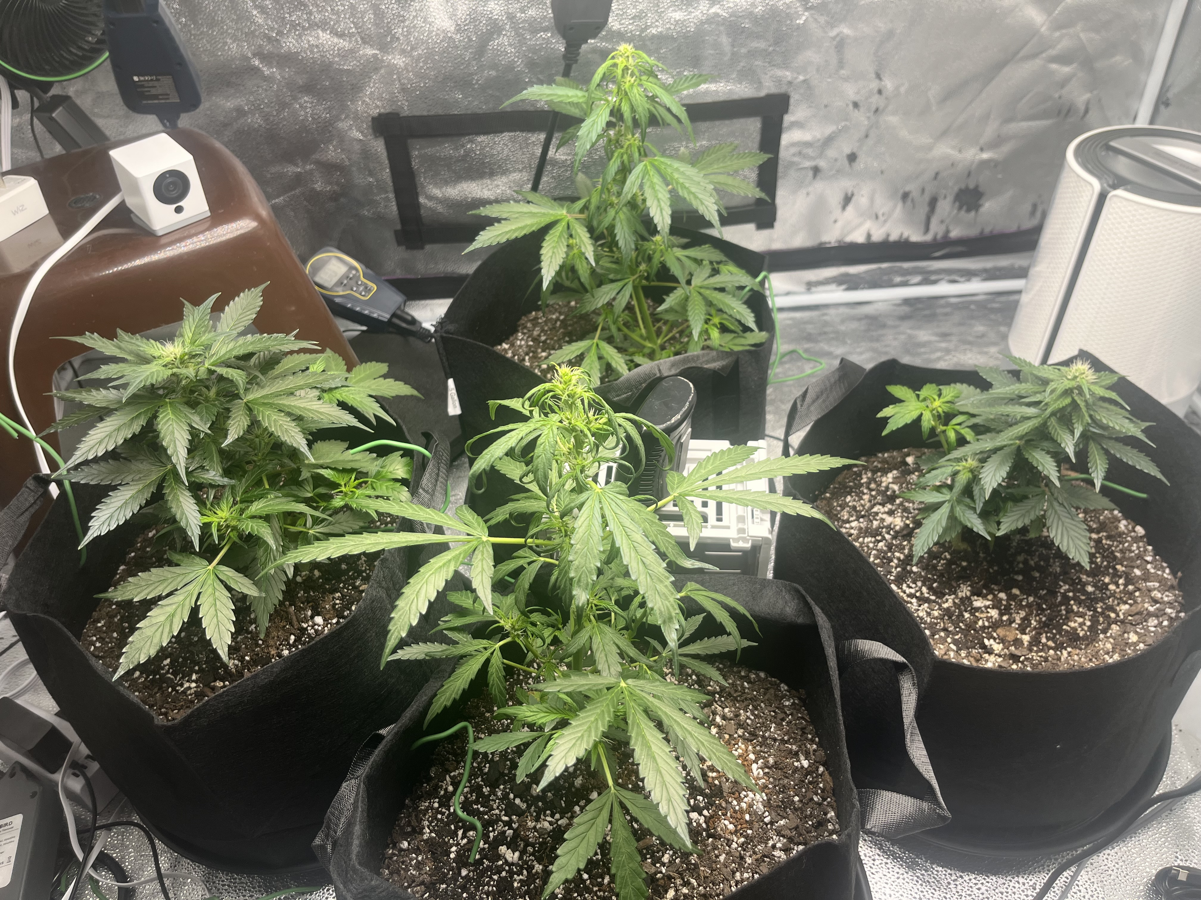 So I’ve got four plants currently(grand daddy purple auto flowers, about 40 days in), I waited too long to transplant, and they starter flowering early, so I had to transplant them to larger fabric pots after likely kind of stunting their growth by leaving them in solo cups too long(amongst other things).