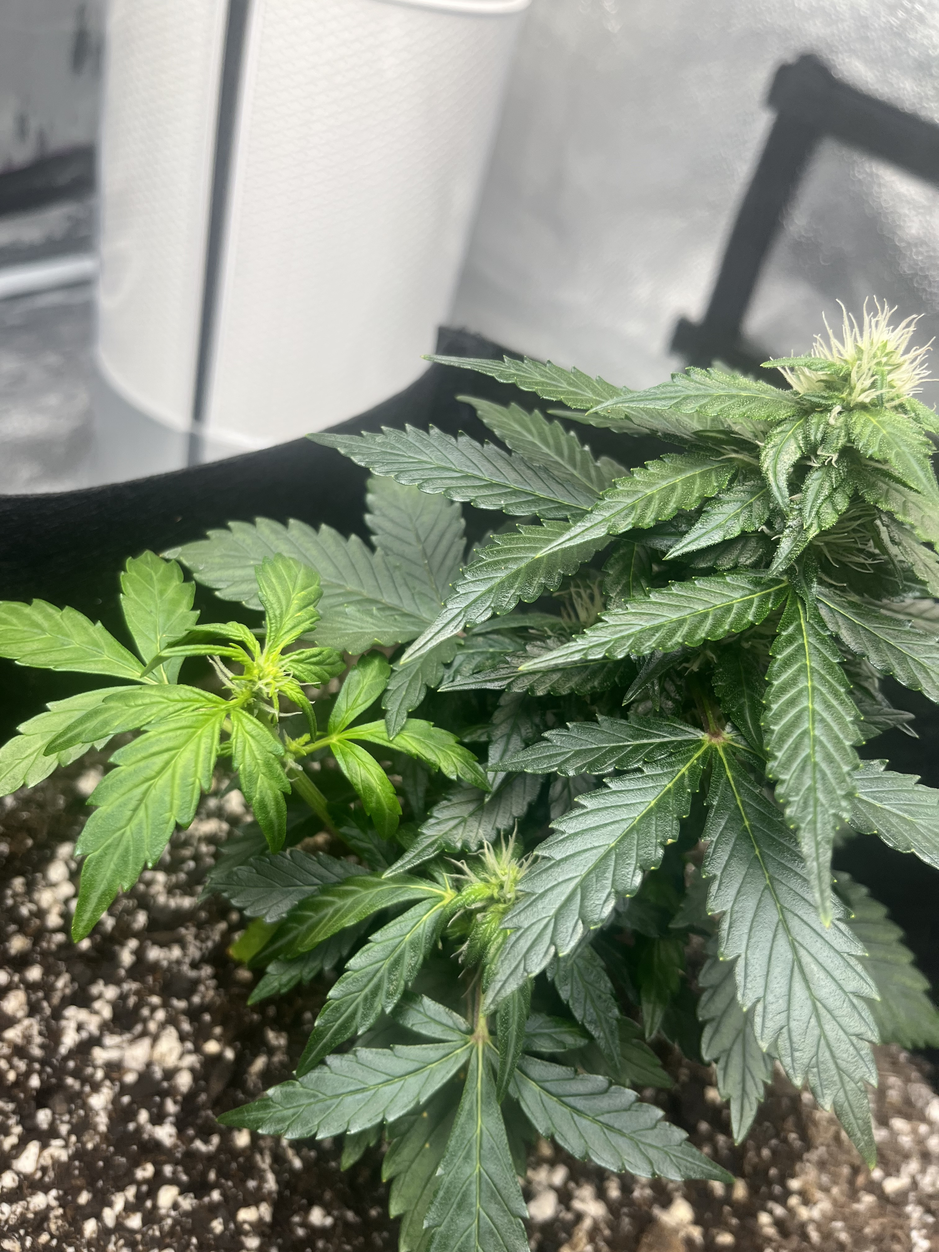 Of the four, two of them I started in coco coir(in the pictures of all four plants they’re the top and bottom), did a bad job, and just decided to transplant them into soil because I’d had better luck with their sisters I grew in soil. They’ve grown quite a bit, but are kind of spindly, growing airy buds, and have tips curling in a way that suggests to me that there is nitrogen toxicity(I’ll have pictures included, if it looks like I’ve misdiagnosed them, please let me know!). After transplanting them, I fed them once with the floratrio at half strength, then at a third strength once I noticed the tips curling a bit, and this previous watering I gave them a bit more volume of water with only the 200 ppm of calmag, and maybe 50 ppm of the bloom( I figured it couldn’t hurt since I want less nitrogen but still want them to get at least some the bud nutrients they need) and tried to flush out the nitrogen that might have settled in the soil from the past nutrient watering. It doesn’t seem to have fixed the problem(although that watering was only 3 or 4 days ago so I don’t know if it should be showing significant improvement or not) I’m wondering if it’s possible that just the soil in itself has too much nitrogen in it for the plants at the flowering stage, and what it should do if that is the case.