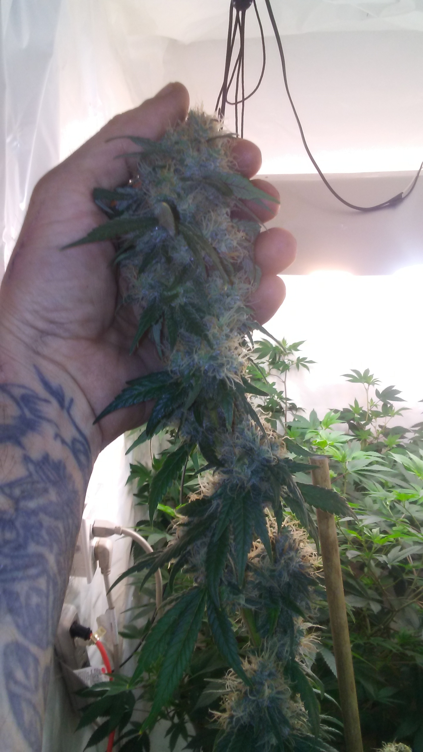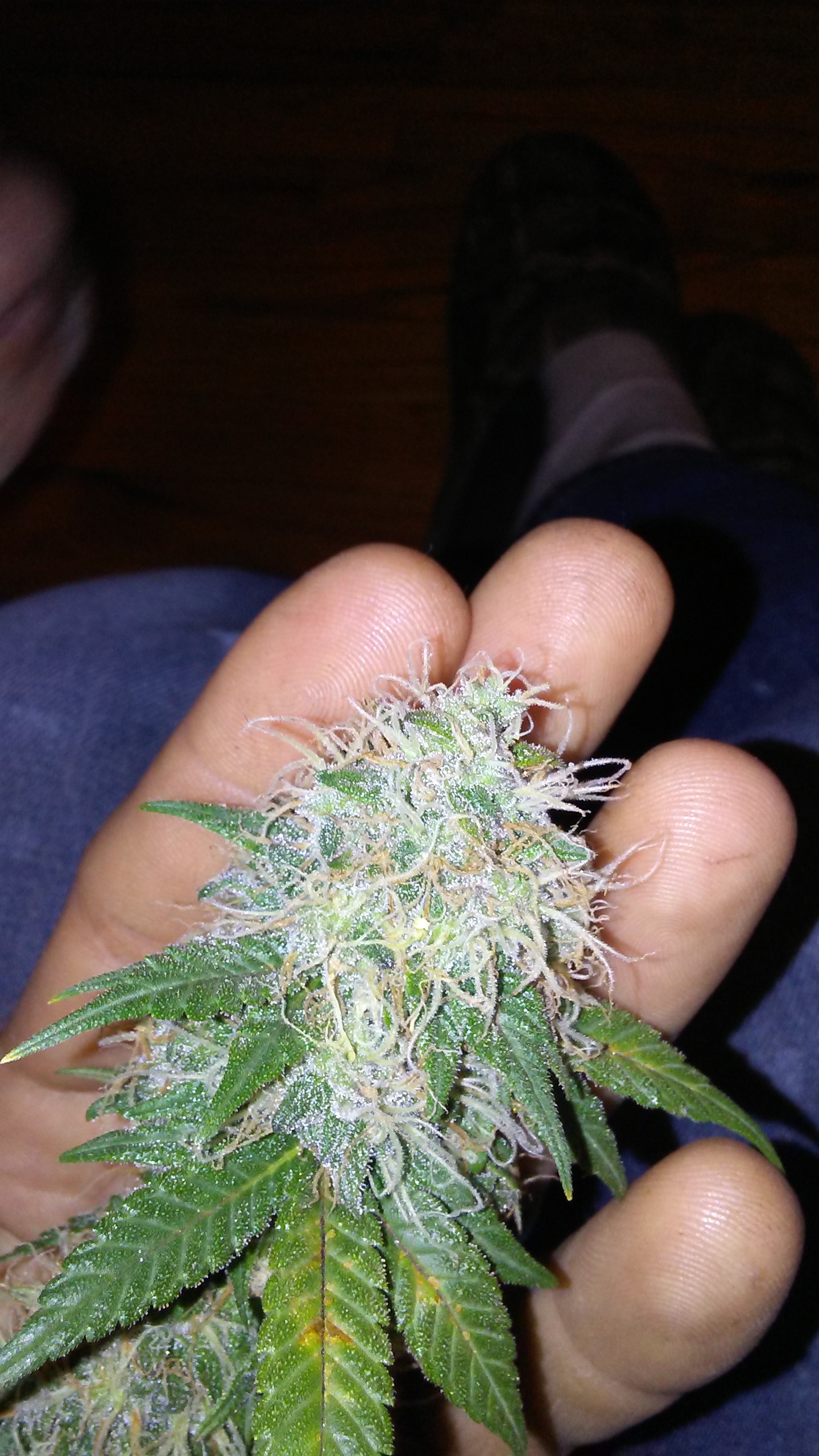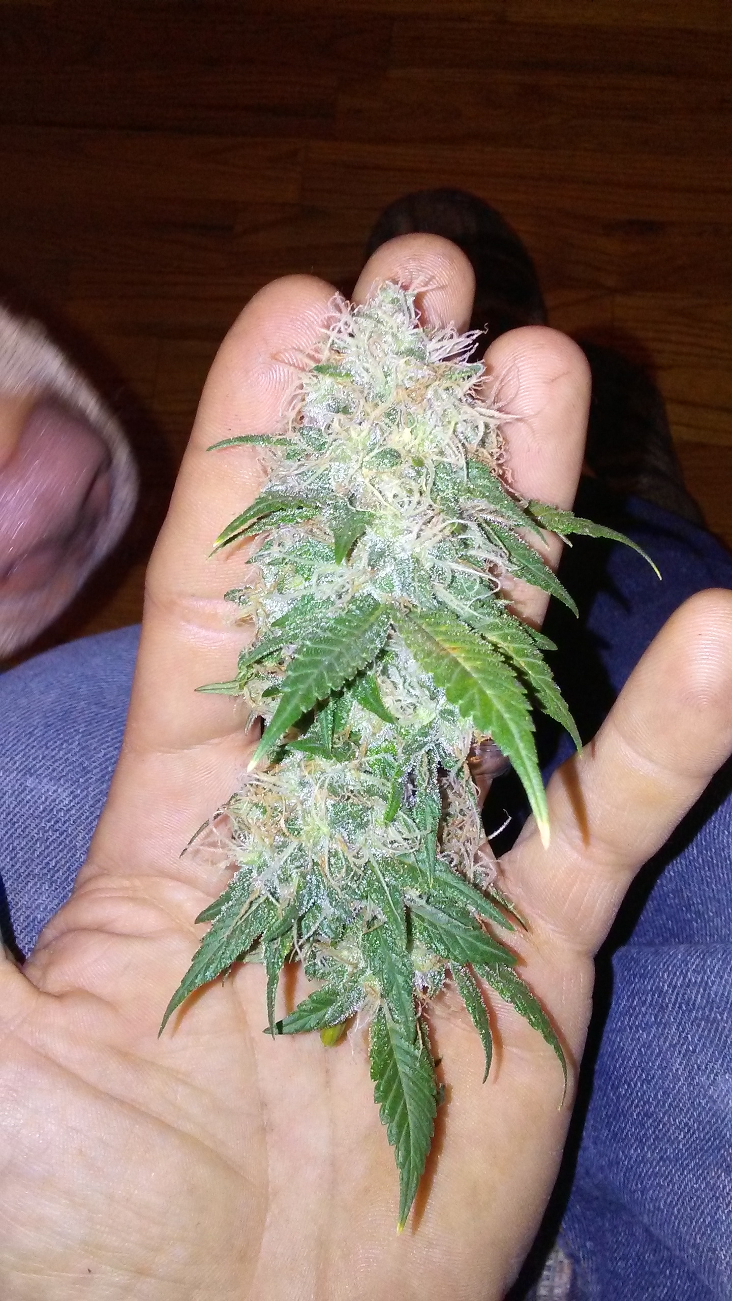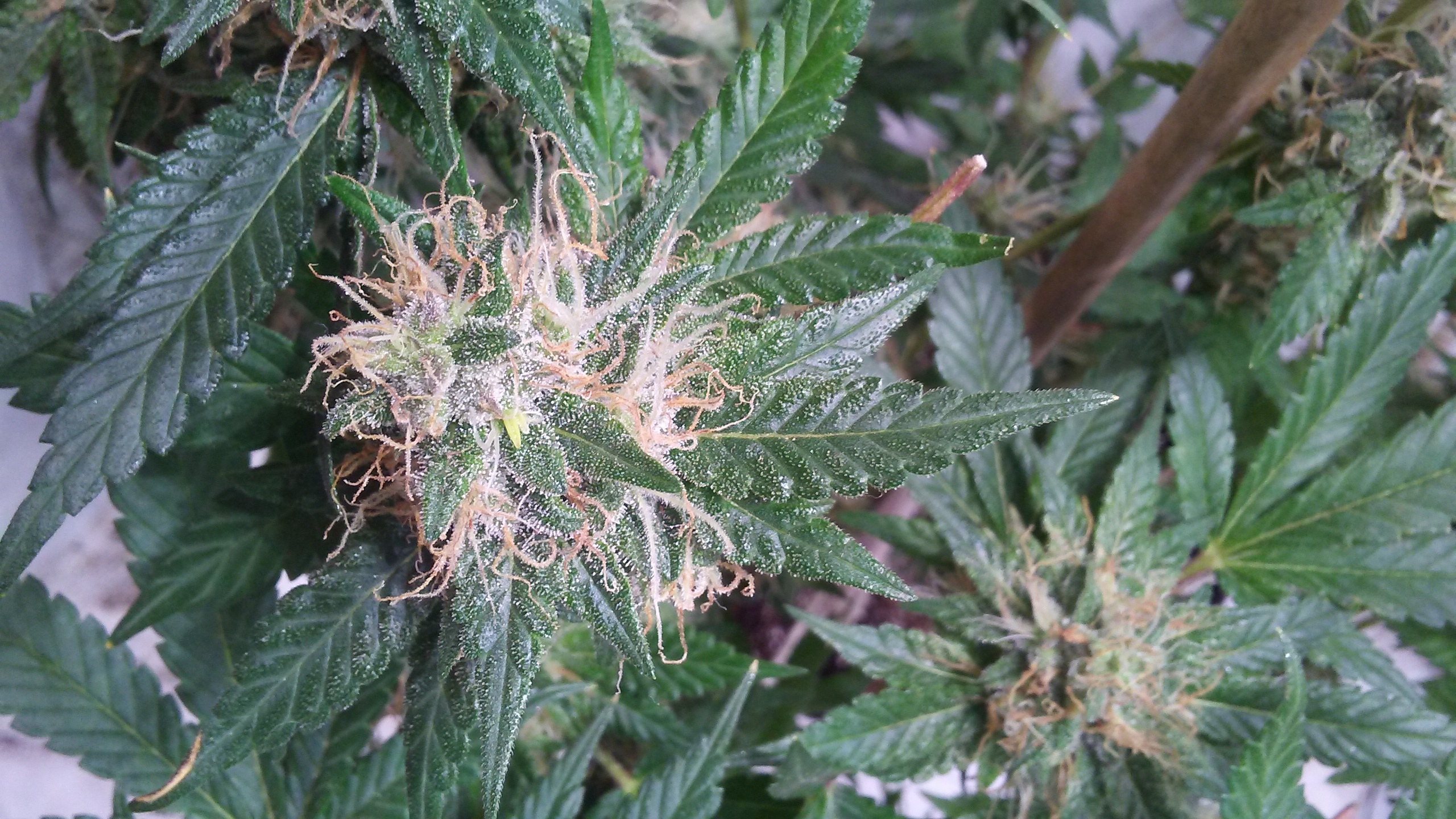 ID:	74718 Day 50 update. Looking over the beautiful ladies tonight and found a nanner i believe! Hope i got it in time. So far present on just one flower. Going to keep a super close eye frome here on out. Should i pull whole plant and harvest it just in case i missed one? Cut affected top of already. Good nees is it weighs 10.56 grams.