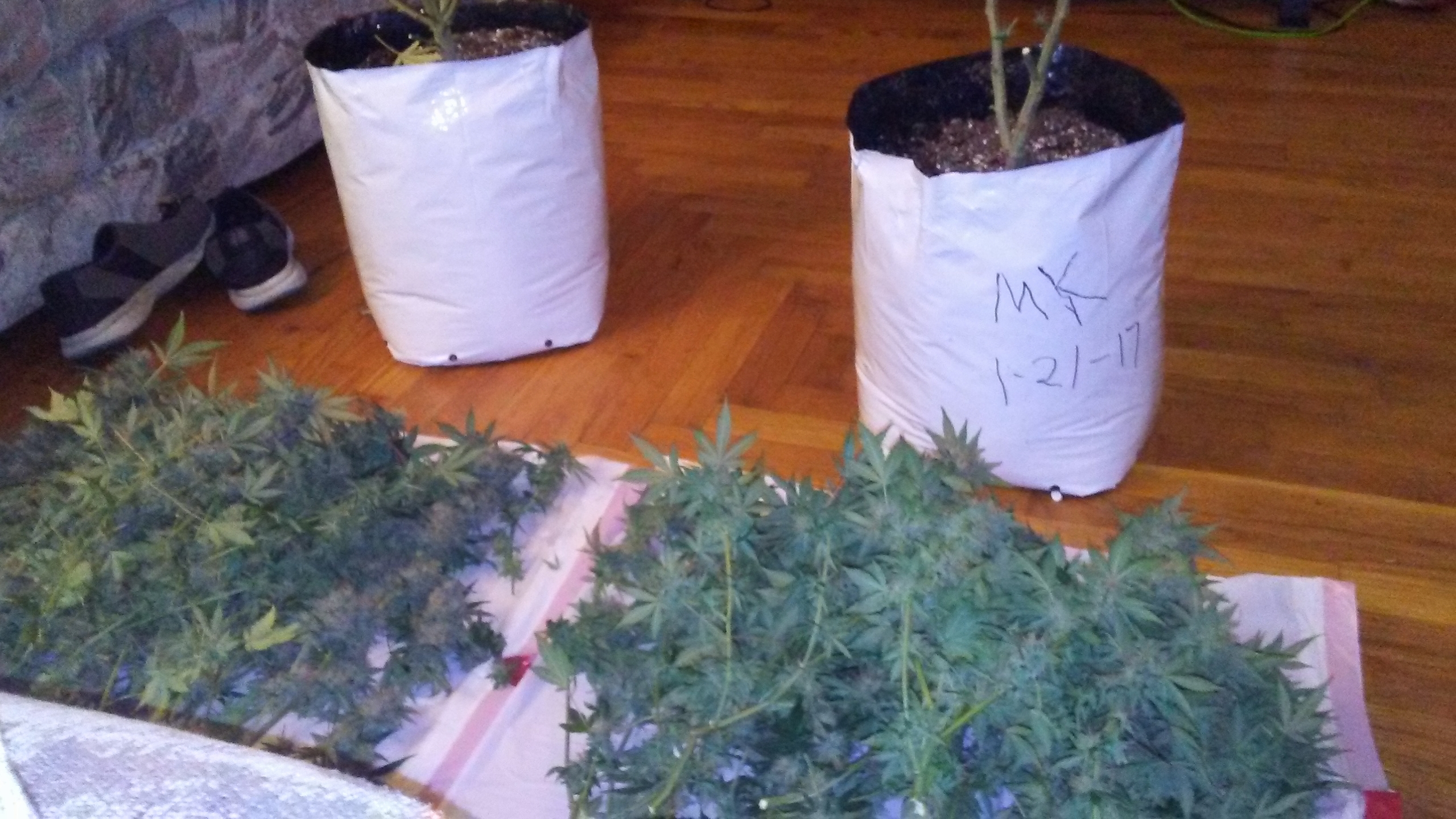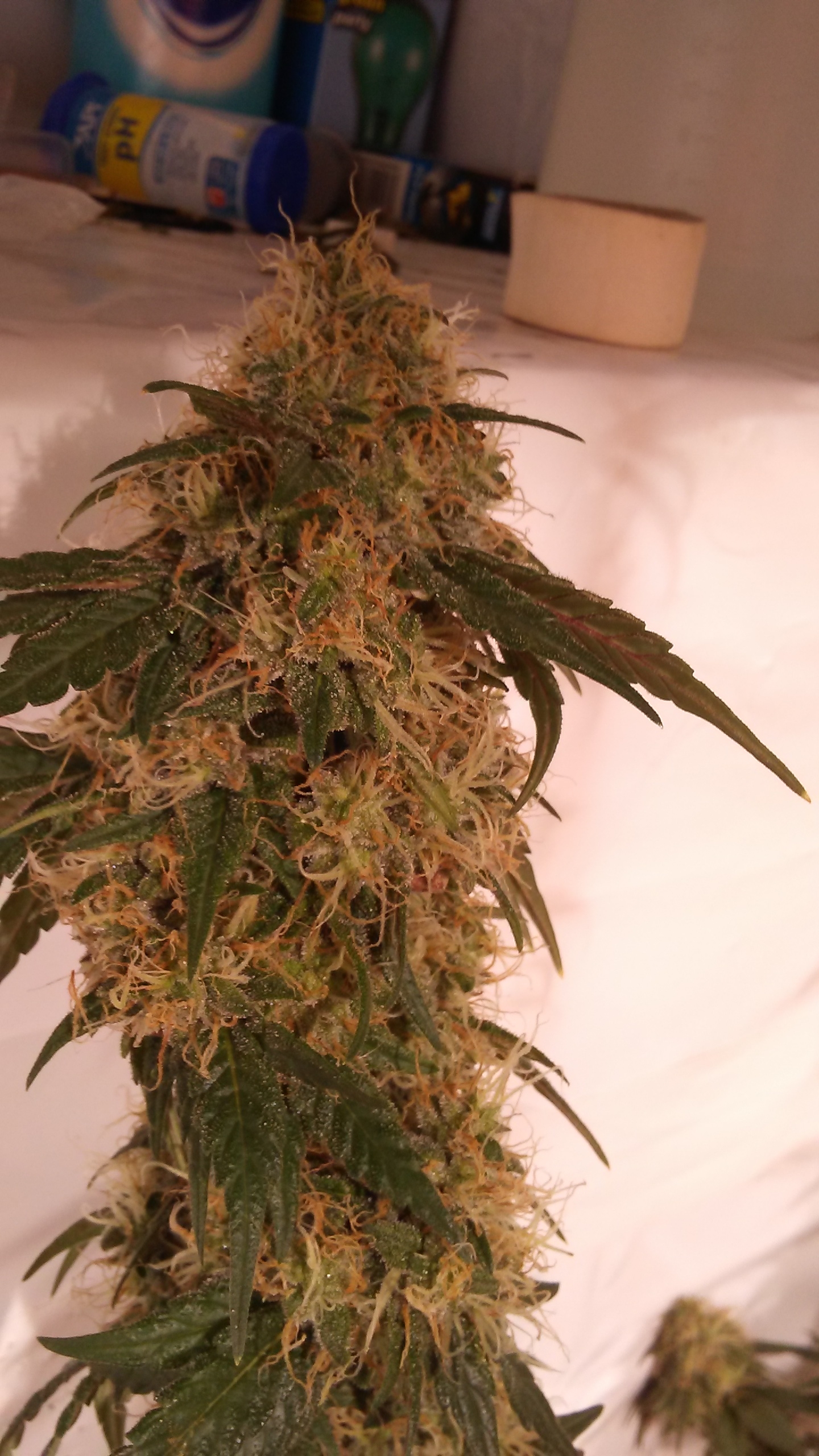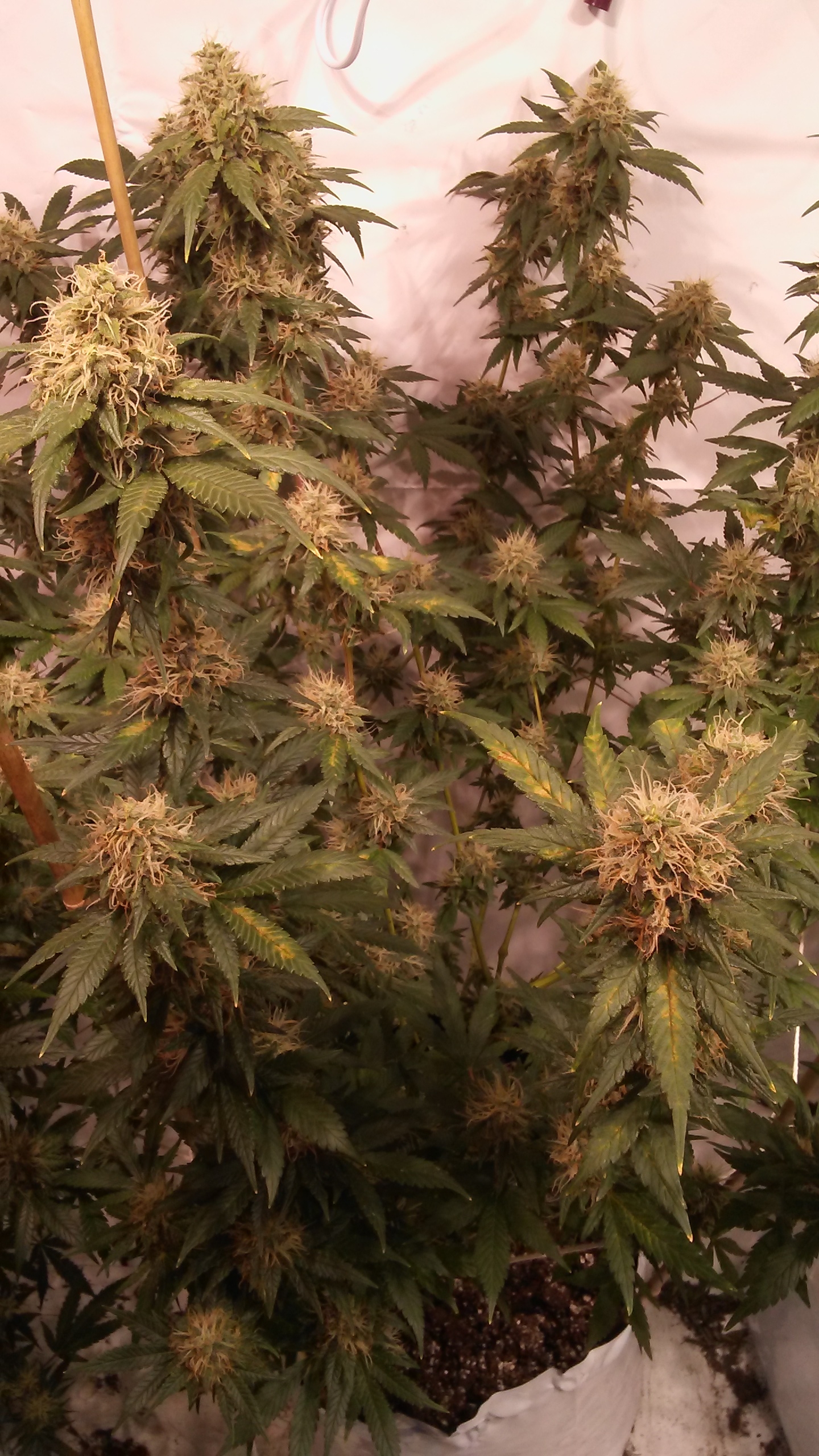 Daily pics Day 48. Flushing tonight dropping ppm to neutral then 2 or 3 days give them 1/2 strength nutes. Ppm on 1st was 1300 second was 2400 and sure the next 4 will as high or higher. Click image for larger version