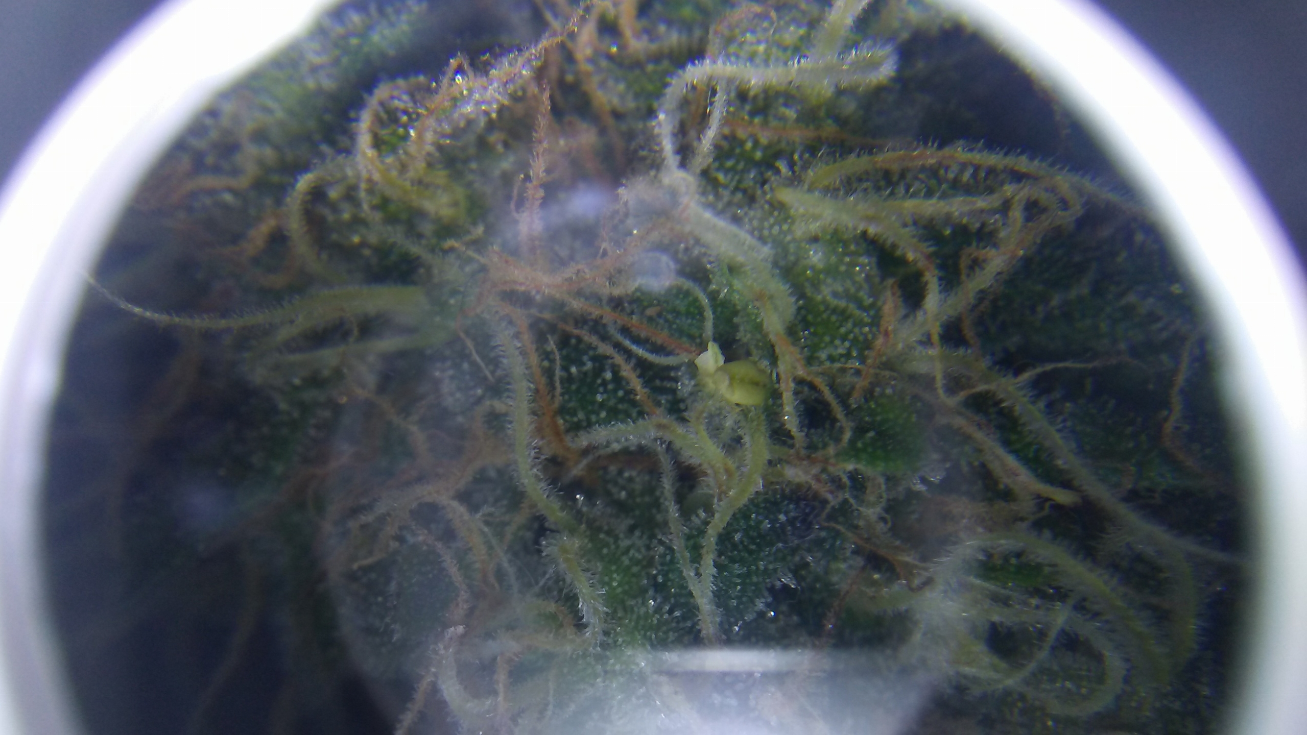 They got fed correct ratio of nutes, bud xl, drip clean, and molasses. Then next feeding same ratios, but added in pk booster, kinda gave em full strength instead of half, next day or so started seeing symptoms in leaves of what seemed to be mag def. So next feeding added in a cal-mag, hasnt made a difference. Maybe mag is locked out due to excess pk? Not sure so since its day 47 going to flush with ph water 20 gal per plant, check leach for ph and ppm then when flushed check em in a couple days. Keep checkin the trics and pray for the best.