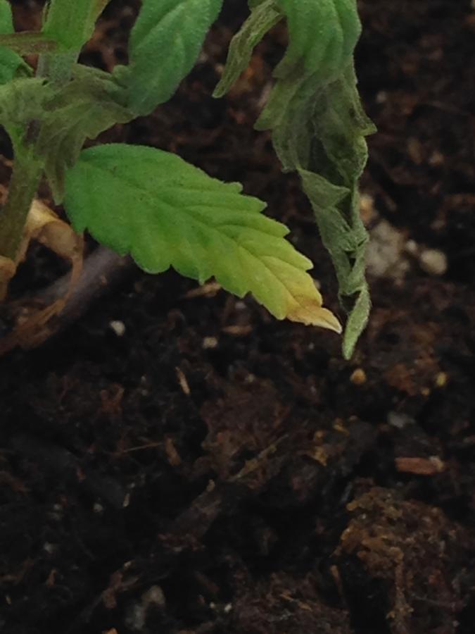 Hi everybody! I just started growing and I'm having some trouble with my little sprouts. First, I'm using Miracle Gro Seed Starting mix. That's bad I know lol. It was all I could find at my local Walmart. It has been three weeks since the first plant sprouted. The cotyledons started turning yellow and eventually died a few days ago. Then, the first set of true leaves started showing signs of what looked like nutrient burn. I flushed both the plants with distilled water because I figured the soil might be too hot. They both perked up for a couple days after that, but yesterday the leaves started drooping and looking burnt or crispy at the ends. I tried moving the lights a little further back to see if that helped, but it didn't make a difference. I haven't been using any other nutrients. This weekend I'm getting a couple flower pots and transplanting these guys, so should I use a different soil? I'm new so I can't really diagnose these little gals very well lol I could use some pro tips! 😊