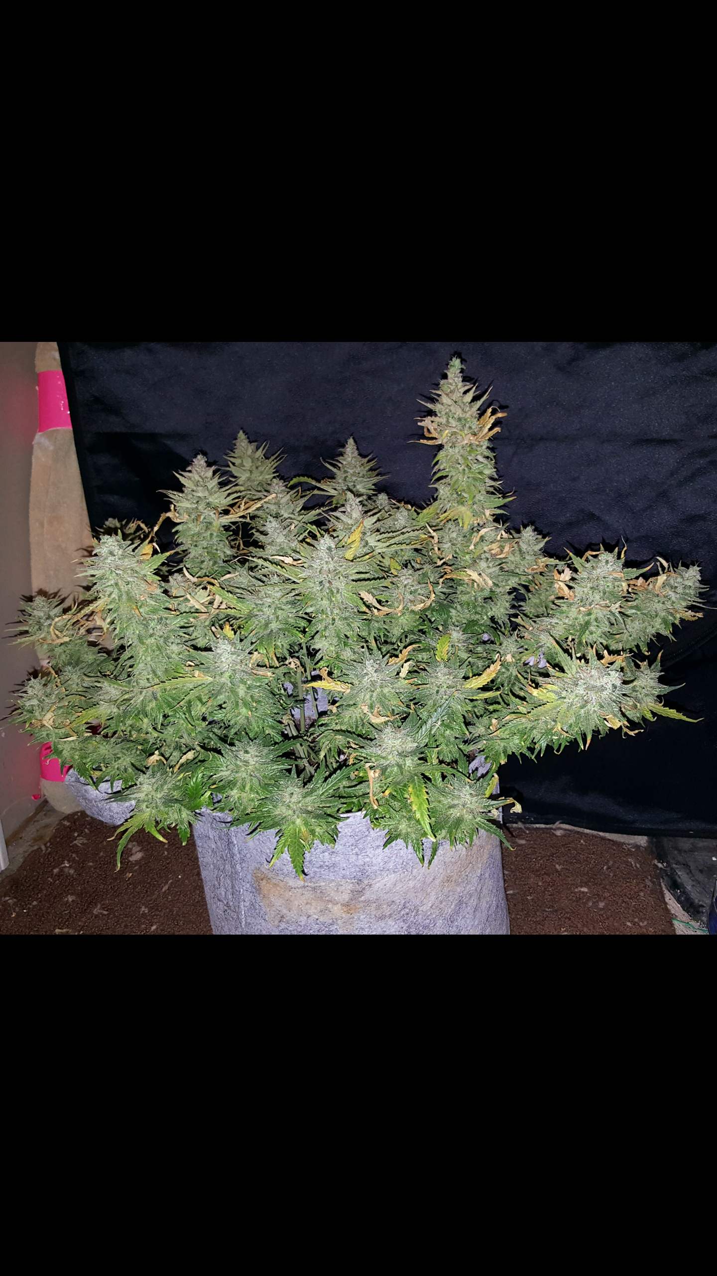 Looks kinda like one of the S.A.D. autos I just grew, only a little over a foot tall but lots of branches reaching out far and wide and almost as tall as the main cola with minimal LST. The other S.A.D.'s were a bit taller_ more like the third photo of the plant on the stool in a fabric pot.