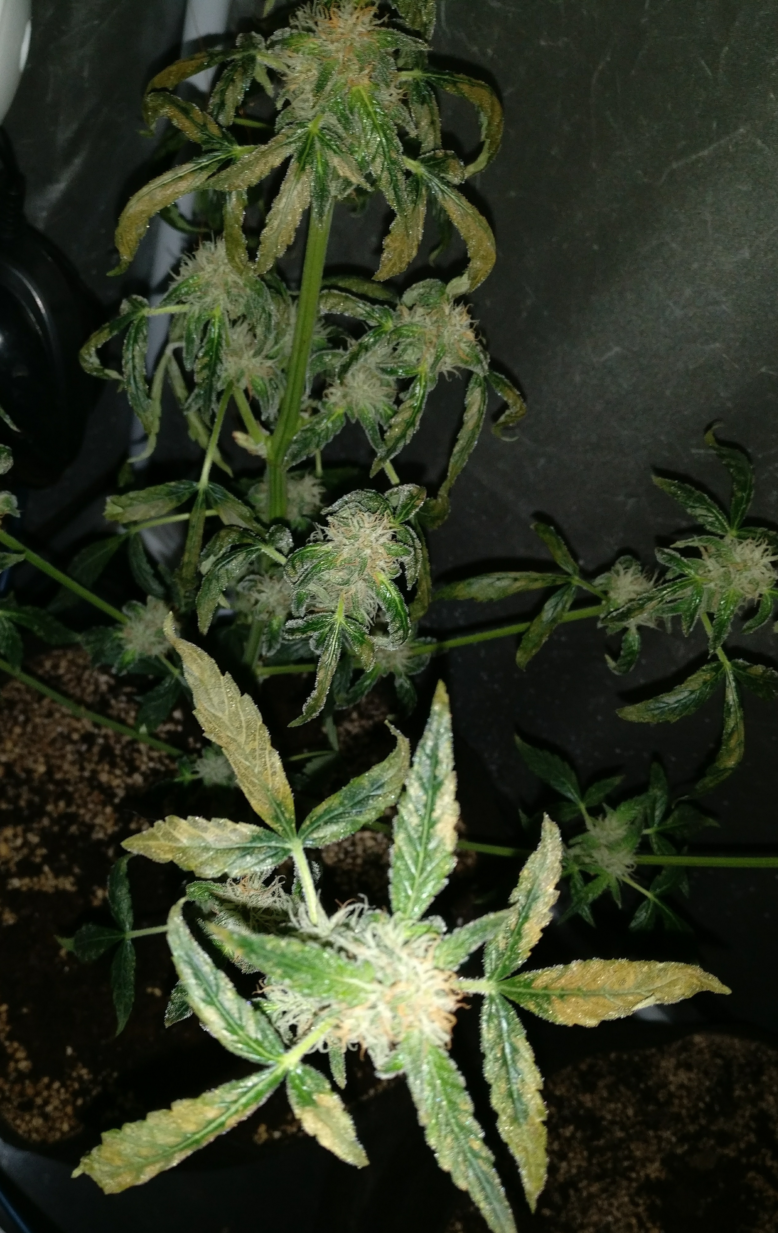 My name is Daniel and this is my first post, unfortunaly i'm having some issues in flowering Auto Moby Dick from Dinafem. I m growing 2 in soil but one is curling leaves down and some rot. This plant was not topped and i gave Bac nutrients as always.