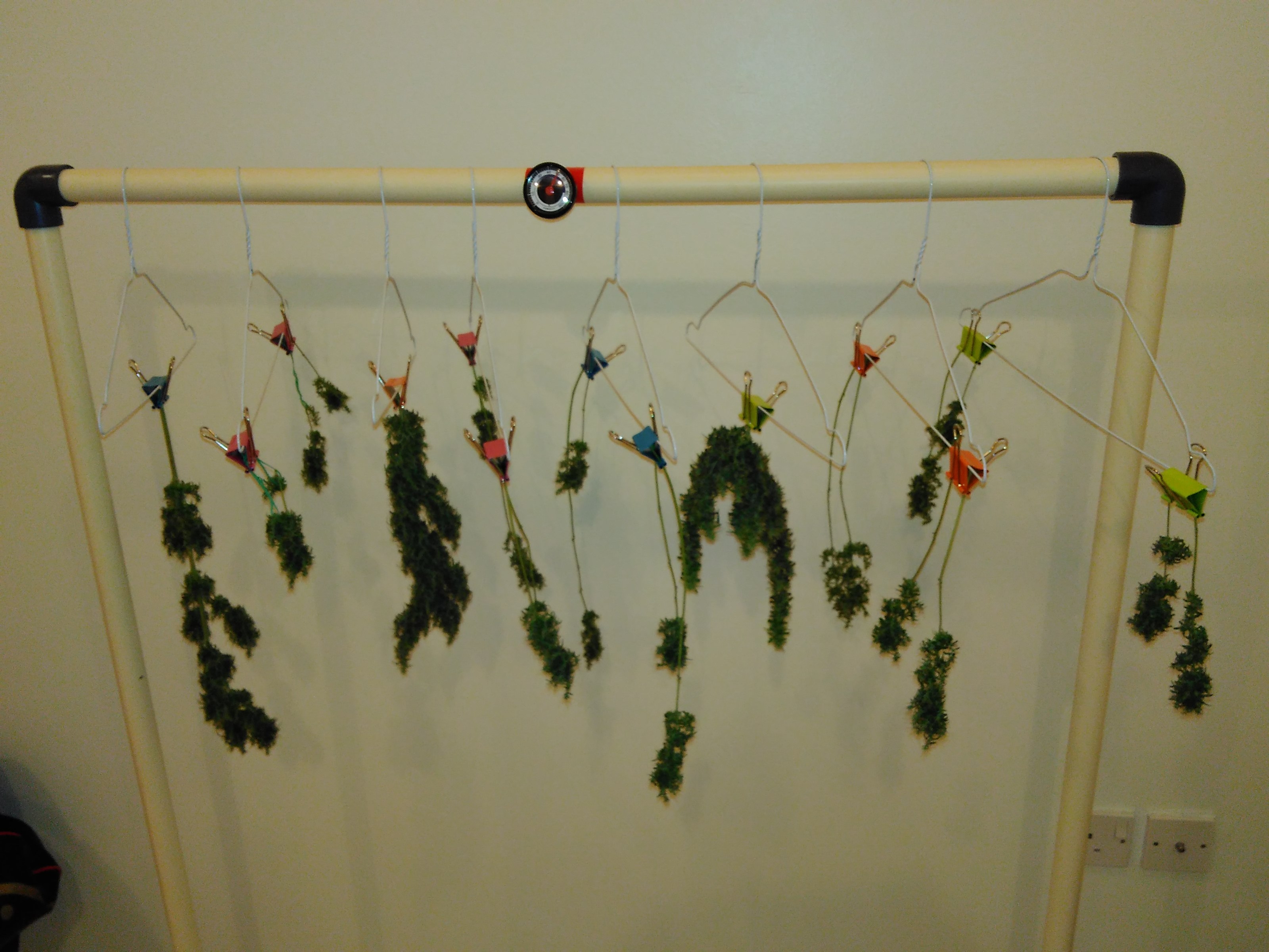 Been checking my hanging buds daily, and today (day 4) the smaller stems are almost snapping. Still got some bend in them though. A really tiny popcorn bud came of without string, but the bigger bud had some string when I tried to pull it off.