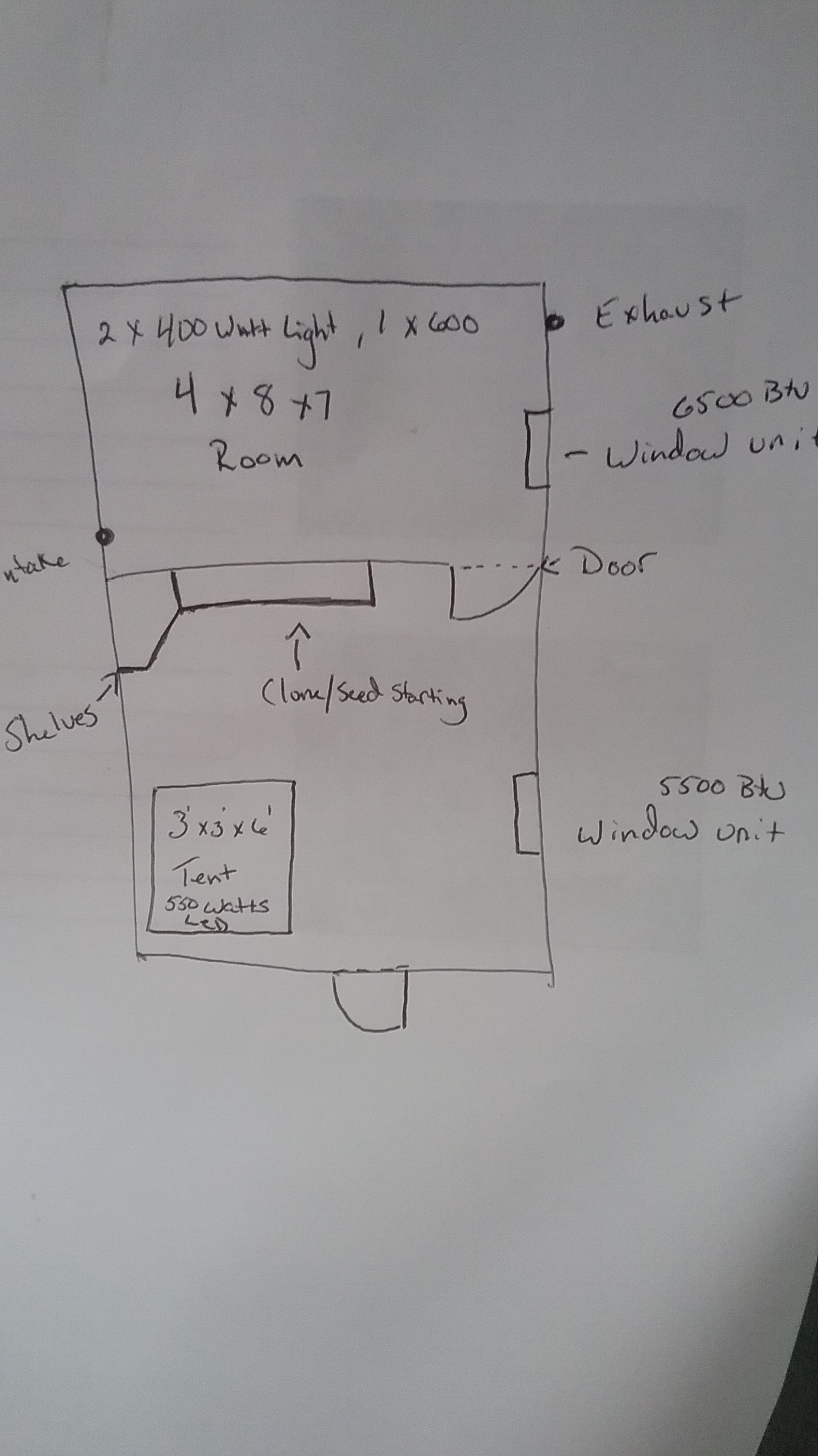 Ok so I'm making my shed a sealed grow because is just to hard trying to control the temps when I'm sucking in hot or cold air from outside... an makes no sense to heat or cool the room to have it sucked out.. this is currently how everything is setup .. I'm gonna have my 1 8inch fan with carbon filter scrubbing the air in the big room an gonna have the other fan venting the heat from the lights.. now my main concern is the tent an the bottom of the shelves I turned into a little clone/seedling cabinet.. is about 3ft x 1.5 ft x 3ft.. should I put smaller fans to blow air in or out of the cabinets in order to cool them? Cause just with 250 watts of cfls in the little cabinet is to much.. an with the tent closed up it's its getting to hot an not even summer yet.. how would you guys set it up? Here's a pic.. if u need anymore info lemme kno
