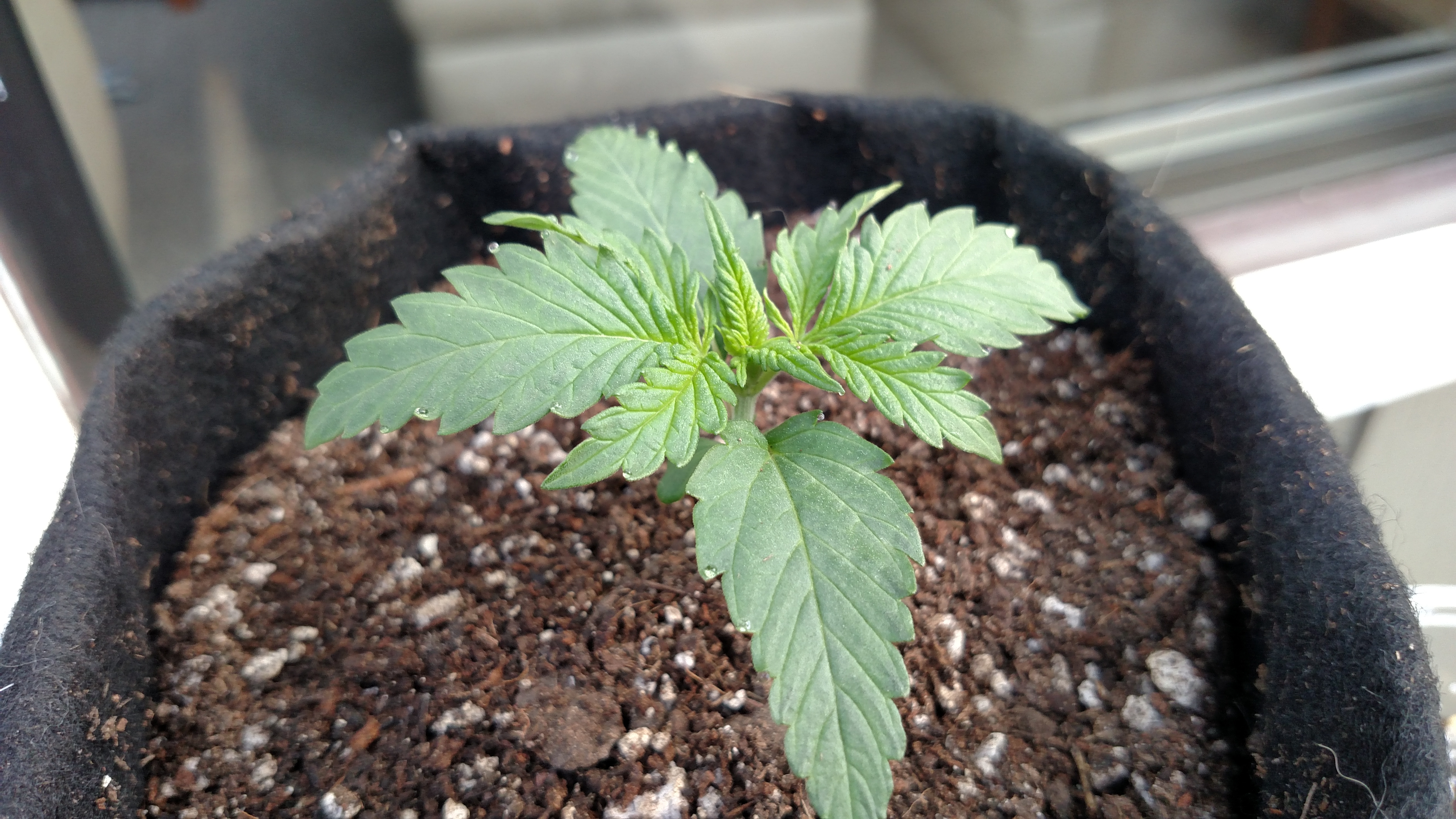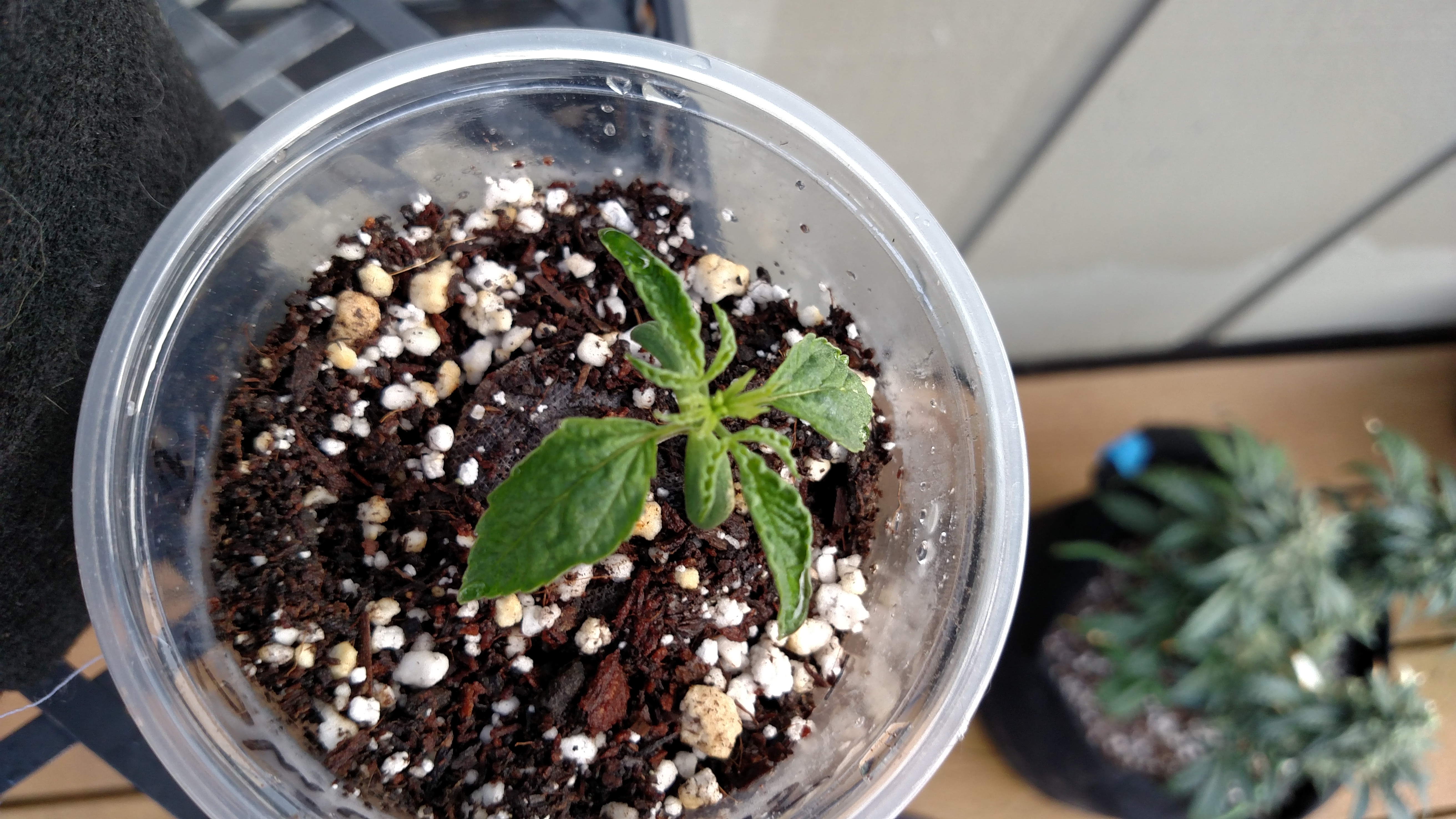 You might be able to see how Dr. Shiva's leaves a smaller, droop down, are krinkly, and the sides are rolled up like a taco shell. The two plants have gotten the same treatment, growing in FFOF/coco/perlite, ph'd water, rooted in jiffy pellets. Asian Dream is MUCH happier, bigger, and already outgrew her plastic cup. Dr. Shiva is just barely showing roots at the sides of the cup.