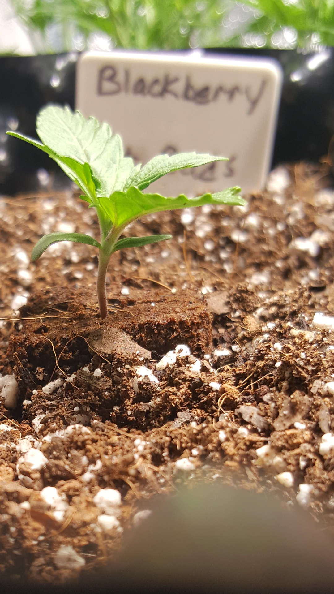 Day 8-ish... need to keep better notes, it helps posting on here. Move inside for 24/7 under a couple of cfl lights. Just waiting for by flowering cycle to finish up. Hopefully in a week... Just water so far, gonna separate tomorrow, and feed.1 Photo