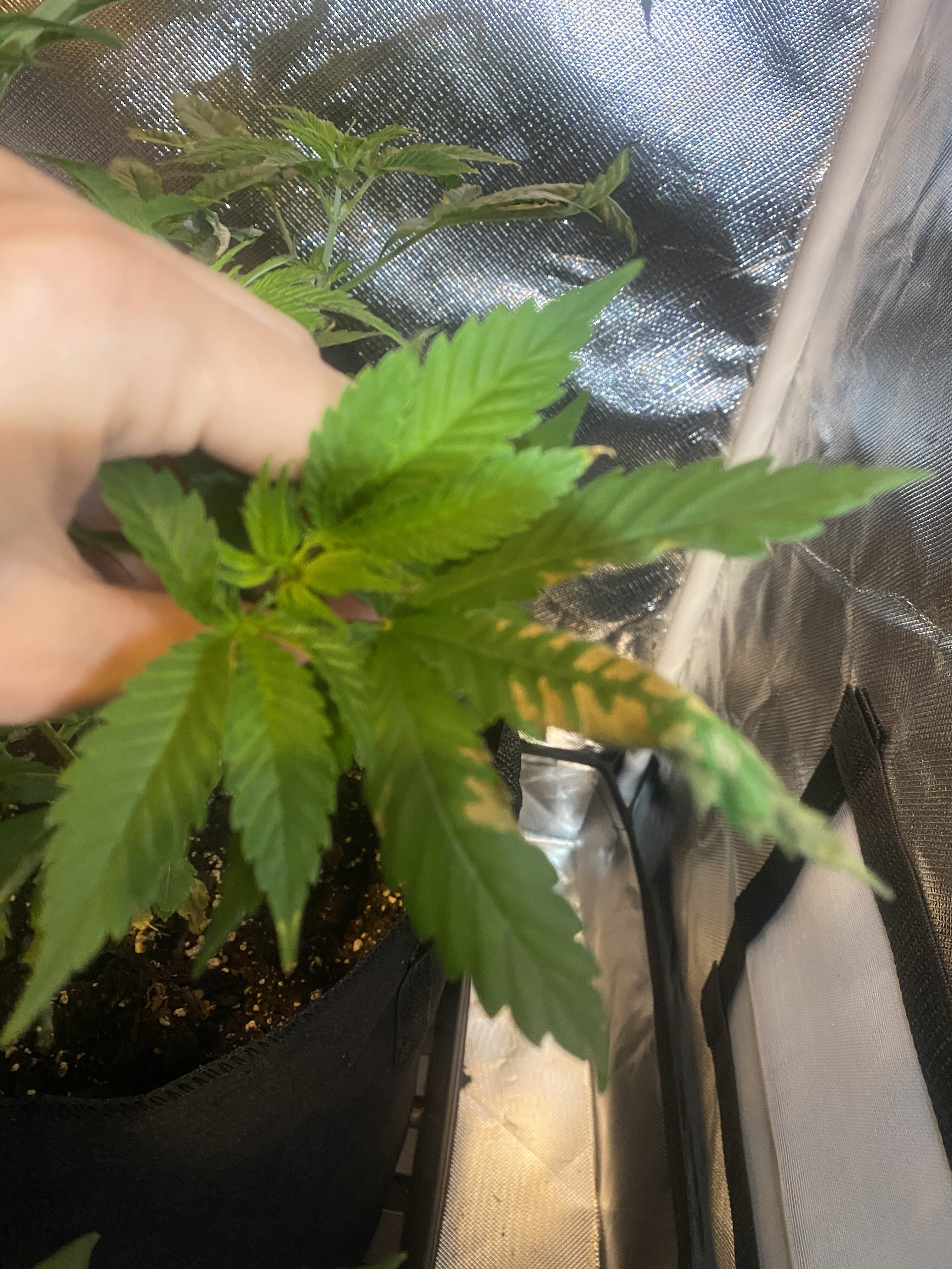 PS. I also have Lemon haze auto, but these are growing with no stain and leaves are normal. They just grow soooo slooow. Same method.