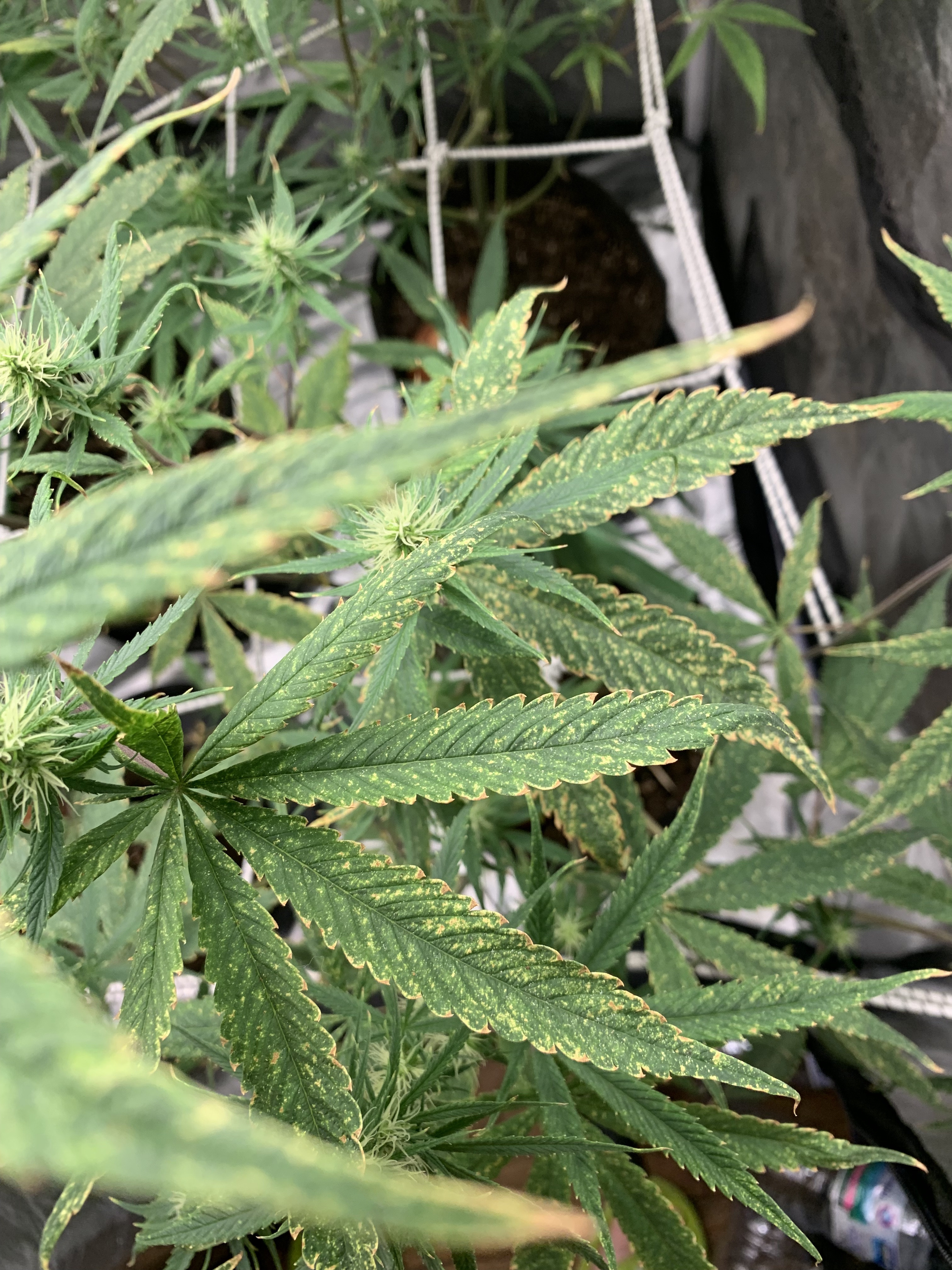 The leaves are turning yellow/brown and wilting with one of my plants. I thought it was an N deficiency at first so I made a N/water solution and sprayed it on the plant, but it made it worse I think (maybe it just takes time, or I made the solution too strong). In the last picture you can see both my plants, other than the lower leaves the top plant looks normal, but my other plant is suffering a lot. Keep in mind that I sprayed some N on it because I'm kinda new and have never have successfully grown weed. But the problem was already present BEFORE I sprayed them, it was just a little less bad.