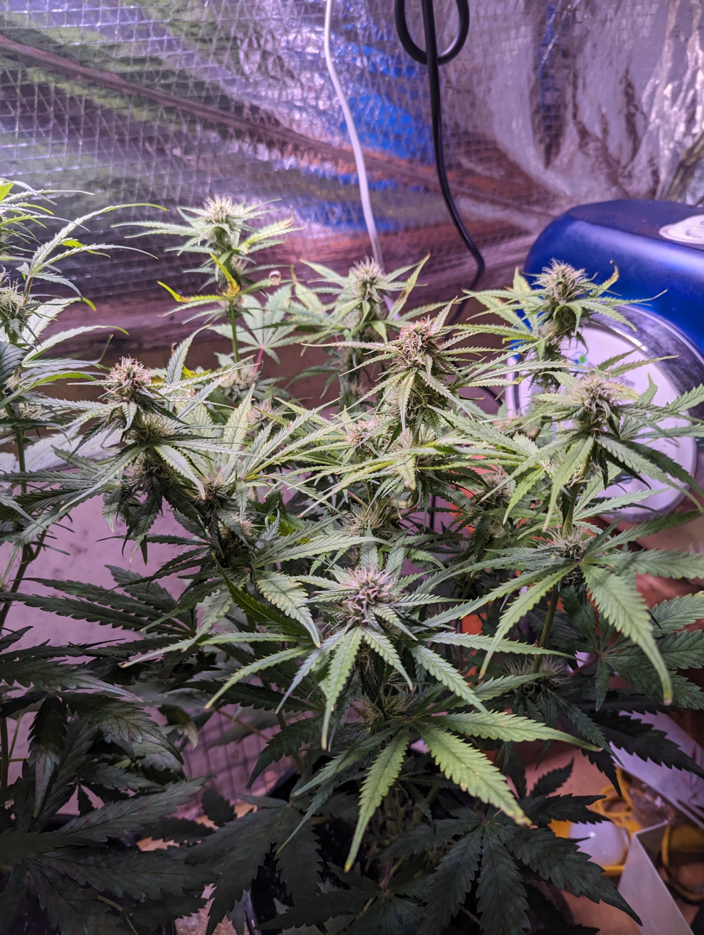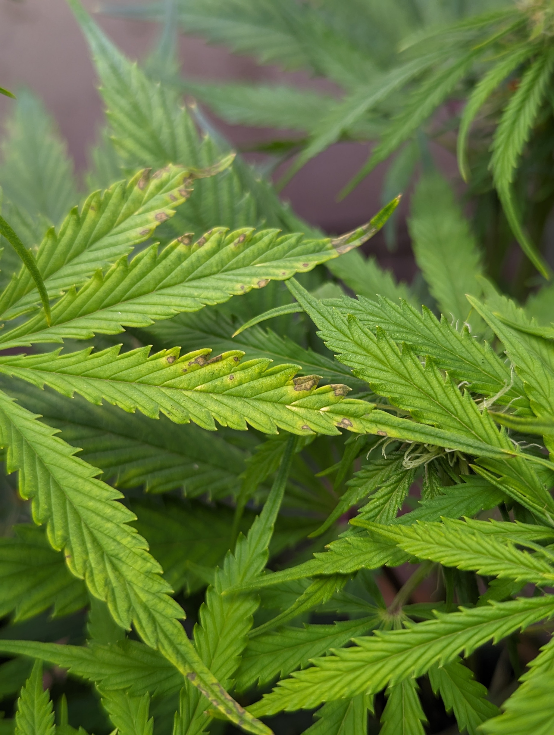 Hi all, my second time growing this auto strain - Magnum. Didn't face many issues during the first one bit the current grow is presenting these spots which are kinda weird as it doesn't seem to be a nutrient issue, following Nebula's schedule. The plant still looks overall pretty healthy and the spots are starting from the bottom leaves. I'm growing indoor hydro, temps running from 76-81, humidity 43-48% at 27 days. Topped and LST.