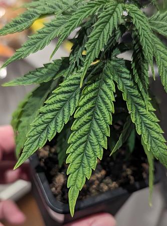 Also check your RH and temps, and get it into a decent pot.Flower Room: 11' x 7' x 7.5'H, 480w AC, 13gal/day dehumidifier, 1.5gal ultrasonic humidifier, 60gal (27gal usable) nute tank, 16" pedestal fan & 18" wall fan. Lighting and climate automated. Hand watering.