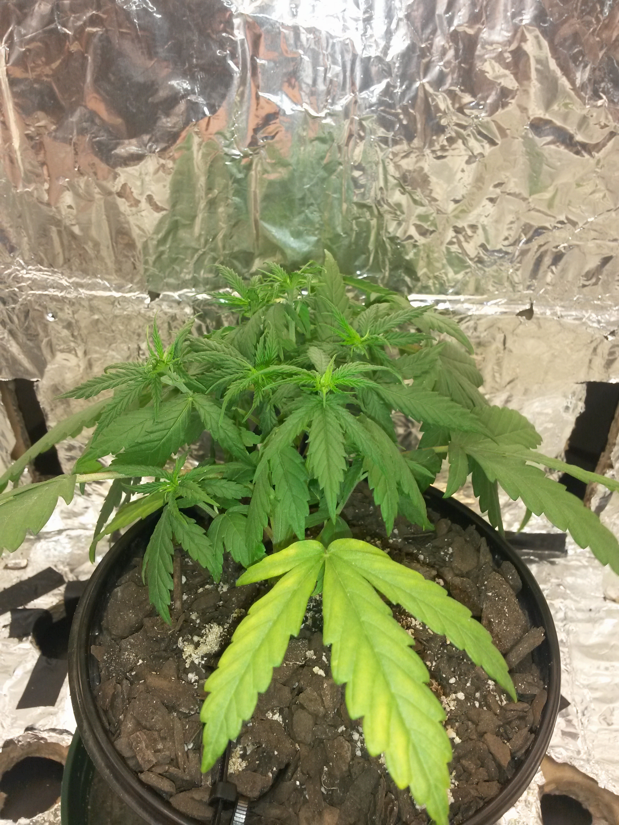 As you can see i have a prob with yellowing leaves,started training today and noticed that the leaves are changing color , is there any organic way to fix the problems my girl has please?