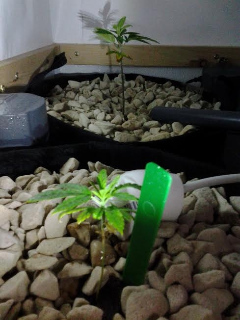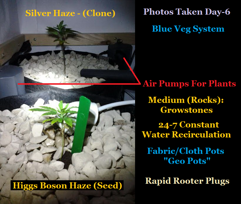 As of today the Silver Haze Clone is approx ~5-inches tall and has a small canopy really starting to fill in, the Higgs Boson Haze Seed is approx ~2-inches tall and very light green, they have been being given tap water at 8.50 pH and 950-ppm (yes even with my brain injury these are not typo's for the numbers. So I am going to start counting today as Day-1 since they have been moved into what I call "The Blue System" which just tells me I've set everything up for Veg growth, they are under a P-300 Platinum LED light, Ocra lined walls, on a recirculating hydro system being boosted at 15-GPM of air for every 1-Gallon of water.