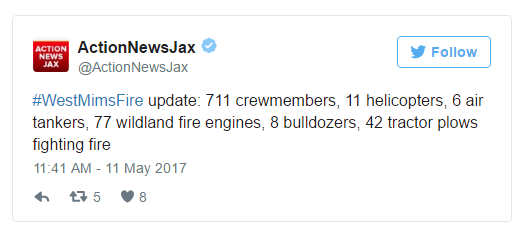 One fire on the FL/GA line has been burning for about 6 weeks & has destroyed over 153,000 acres now. Over 800 firefighters from all around the country & more showing up every day but it's still growing by 4000 acres every 24 hrs.! Never thought I'd pray for hurricane season after facing down Hurricane Matthew but it's crossed my mind a few times lately.