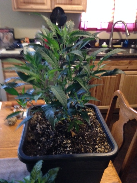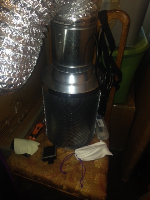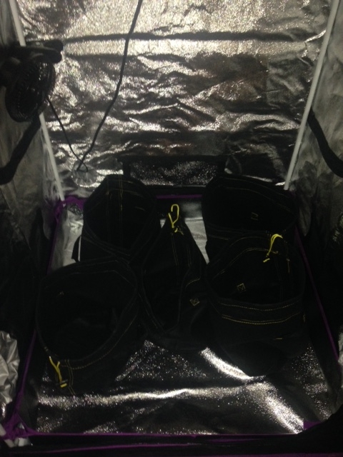 Yesterday was a big day. My grow tent and what seems to be the rest of my order arrived late morning. My daughter came through with the promised clones, and a quart jar of Lemon Kush buds. I am going to repot the jumping jimmy to a five (5) gallon grow bag, defoliate them all some and try to LST if I can this late veg. They all are heavily preflowered. They survived a six (6) hour ride in the trunk, and two (2) days in a sunny window, with eighteen (18) hours of sunlight with the room lights on twenty hour (24) hr. They were wilted a little, so tap water until run off, in the tent nineteen (19) inches from the light.