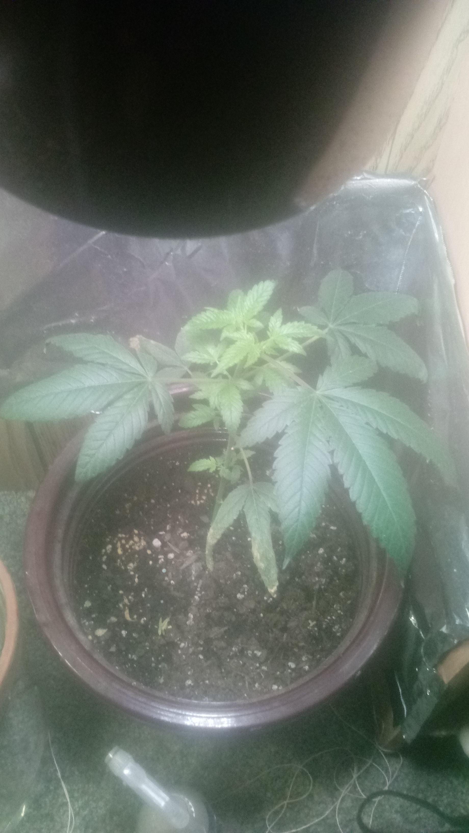 So from the beginning, i started with bag seed and i believe it was 4 plants originally. One plant i have no recollection of what happened to her. I do believe plant one and 2 others were from the same bag as they had similar growth. Well plant 2 and 3 grew tall slim at first and plant 4 stayed short until i transplanted, but more on that later. I initially planted all of them in cups after germination with soil from dollar store. Went and got pots and more dollar store soil and went and got the pellets. I have 3 containers with the dollar store crap soil and pellets and 1 that has a little of the soil and some soil with the white rock stuff perlite or vermiculite or w/e and that as well has the pellets.