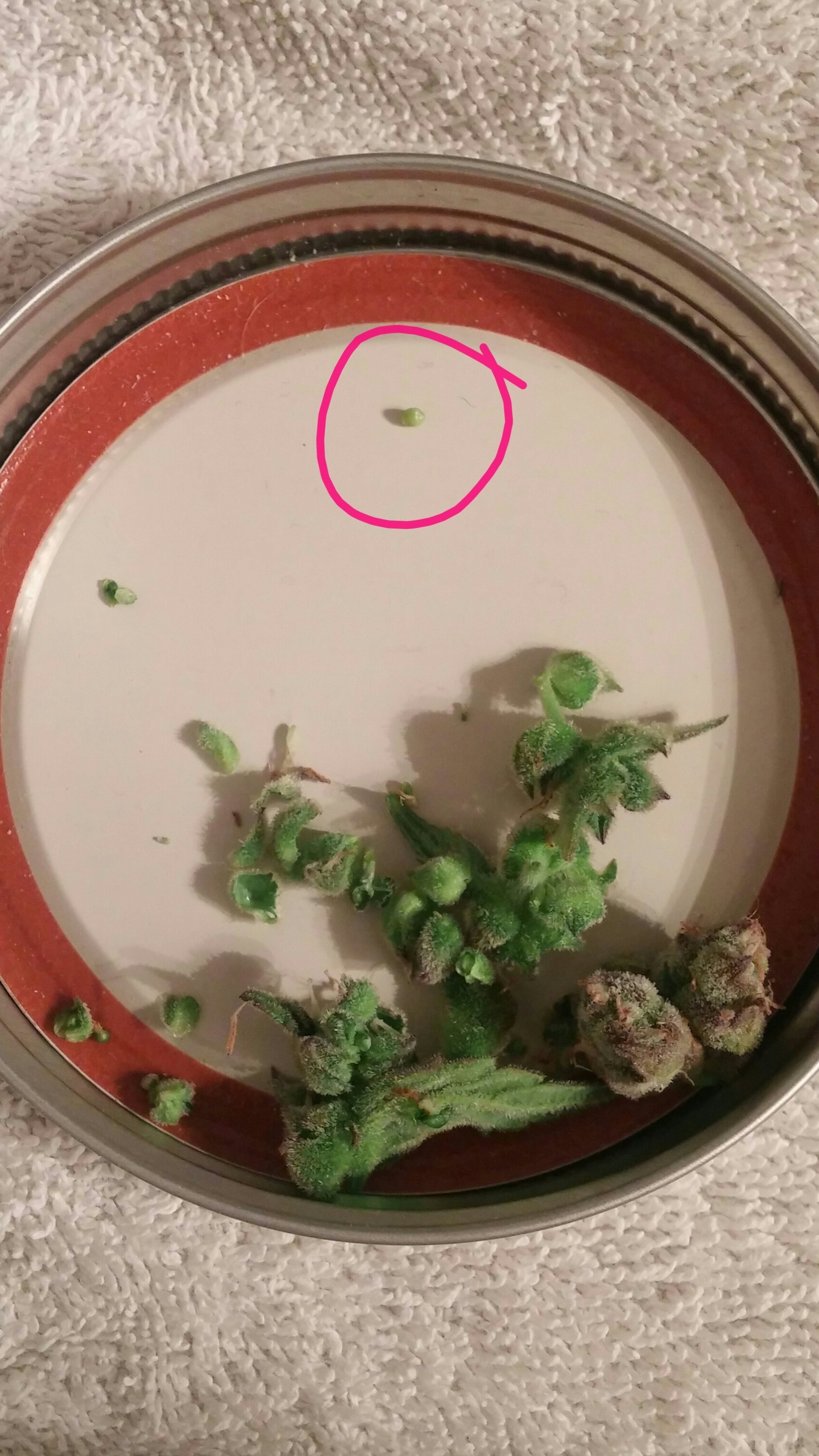 Thanks guys. I plucked some of them & opened them up & there is a tiny green seed at the very bottom of each one it seems. It has to be a seed because it's kinda hard even tho it's green. I'm going to get my microscope out & post some pics.